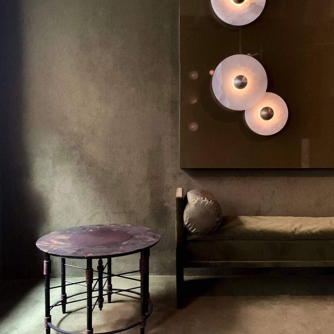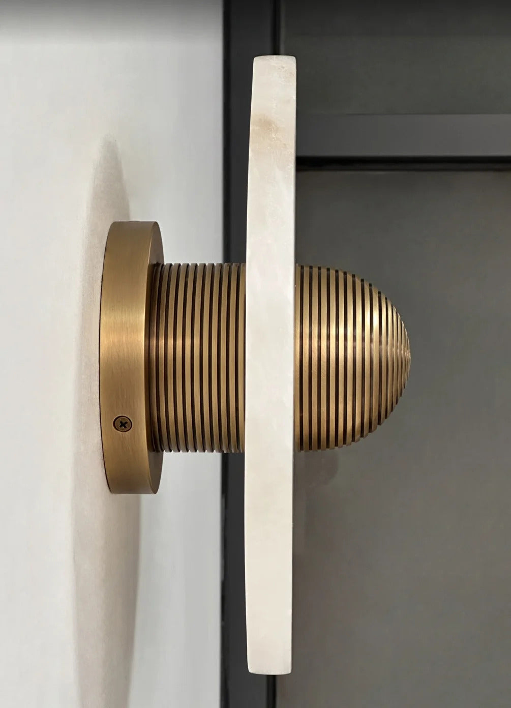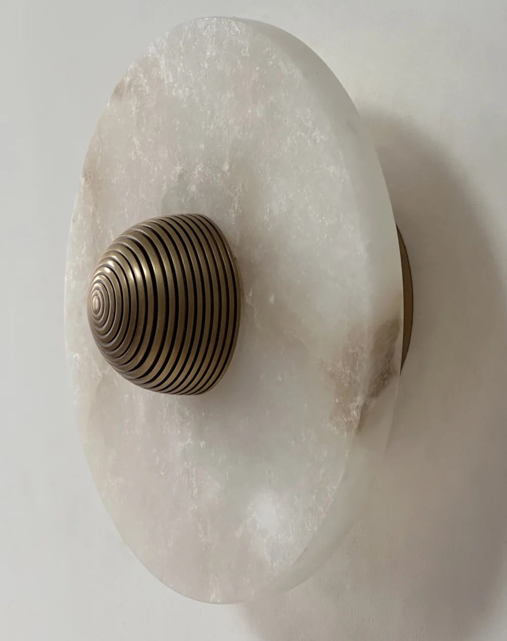 - The Median Surface Sconce Single is a captivating fusion of traditional and contemporary design. Its translucent alabaster planes, shaped in a striking median form, are intersected by a fluted brass element, reminiscent of intricate Middle Eastern jewelry. This juxtaposition of materials and aesthetics creates a visually arresting piece that seamlessly blends the past with the future.