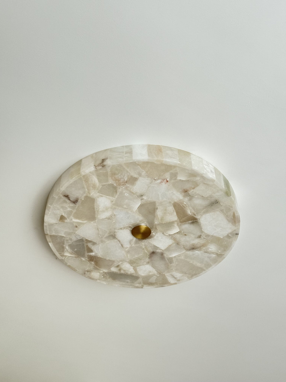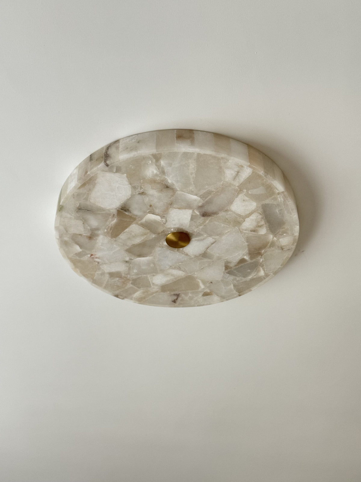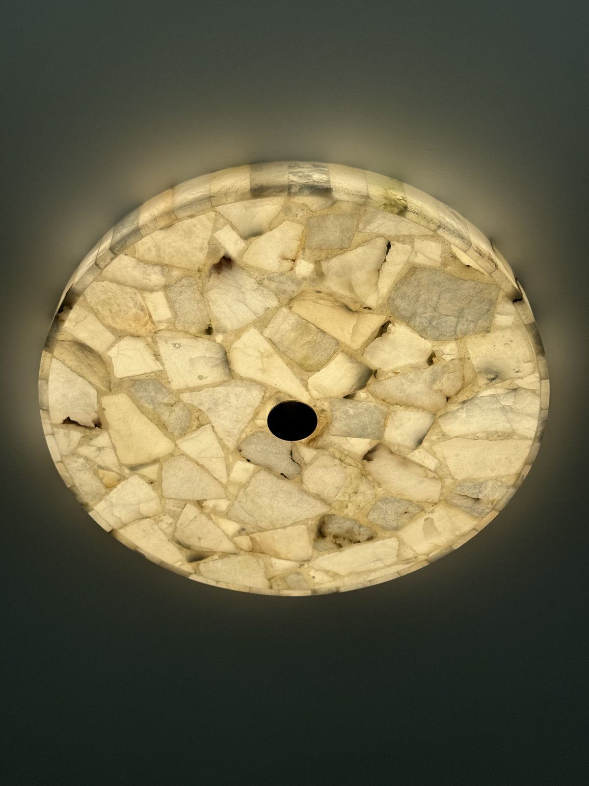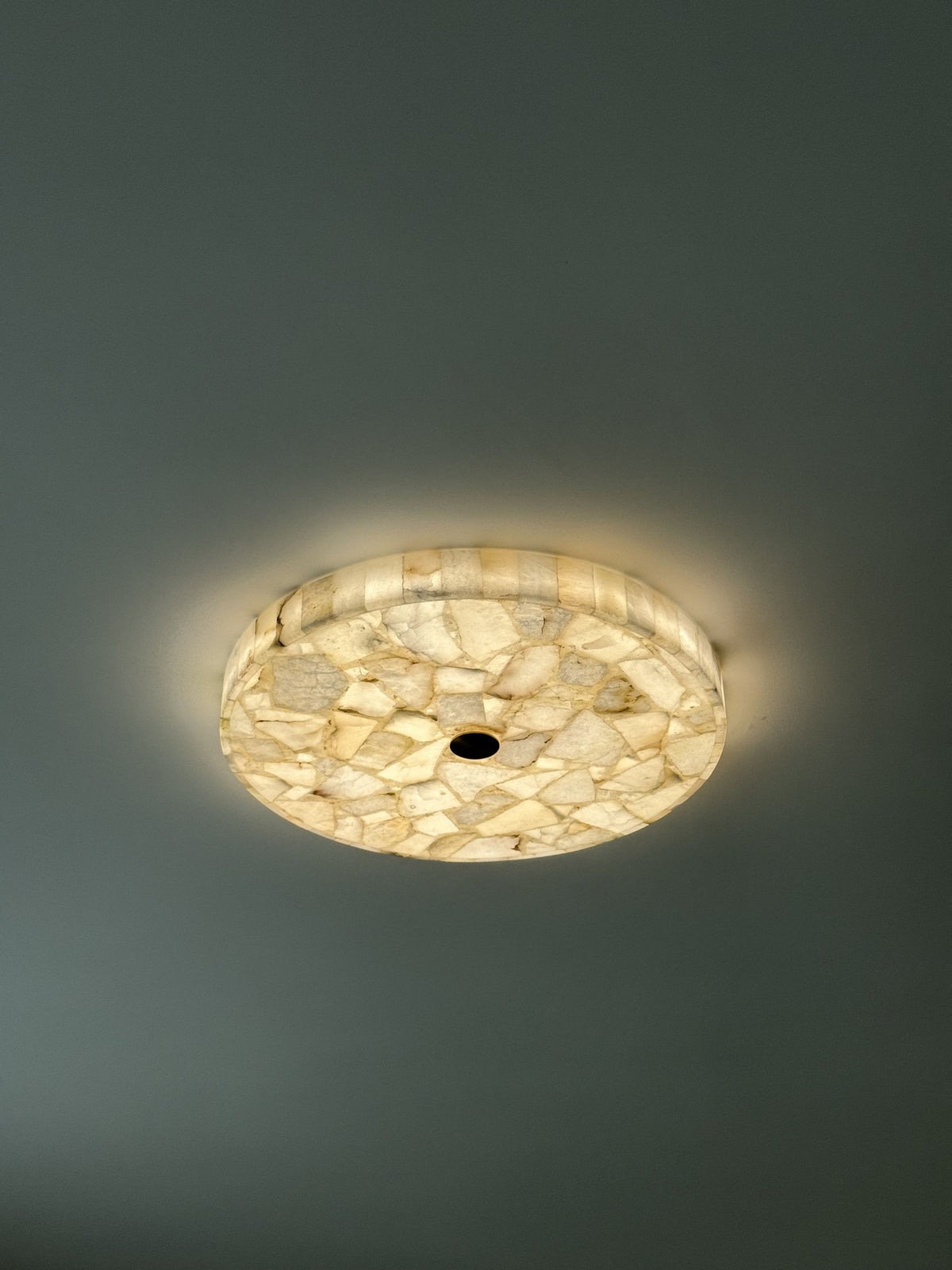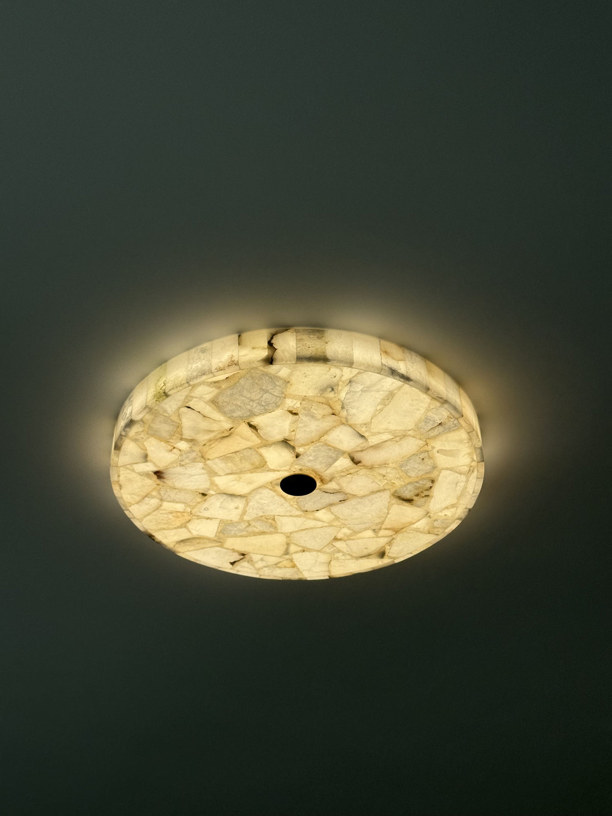 - Otis Alabaster Flush Mount Lighting is a lamp that perfectly combines natural beauty with modern design. The lamp body is carefully carved from natural alabaster, with an elegant cylindrical shape and a circle of small rectangular pieces of alabaster on the side, like an exquisite work of art.