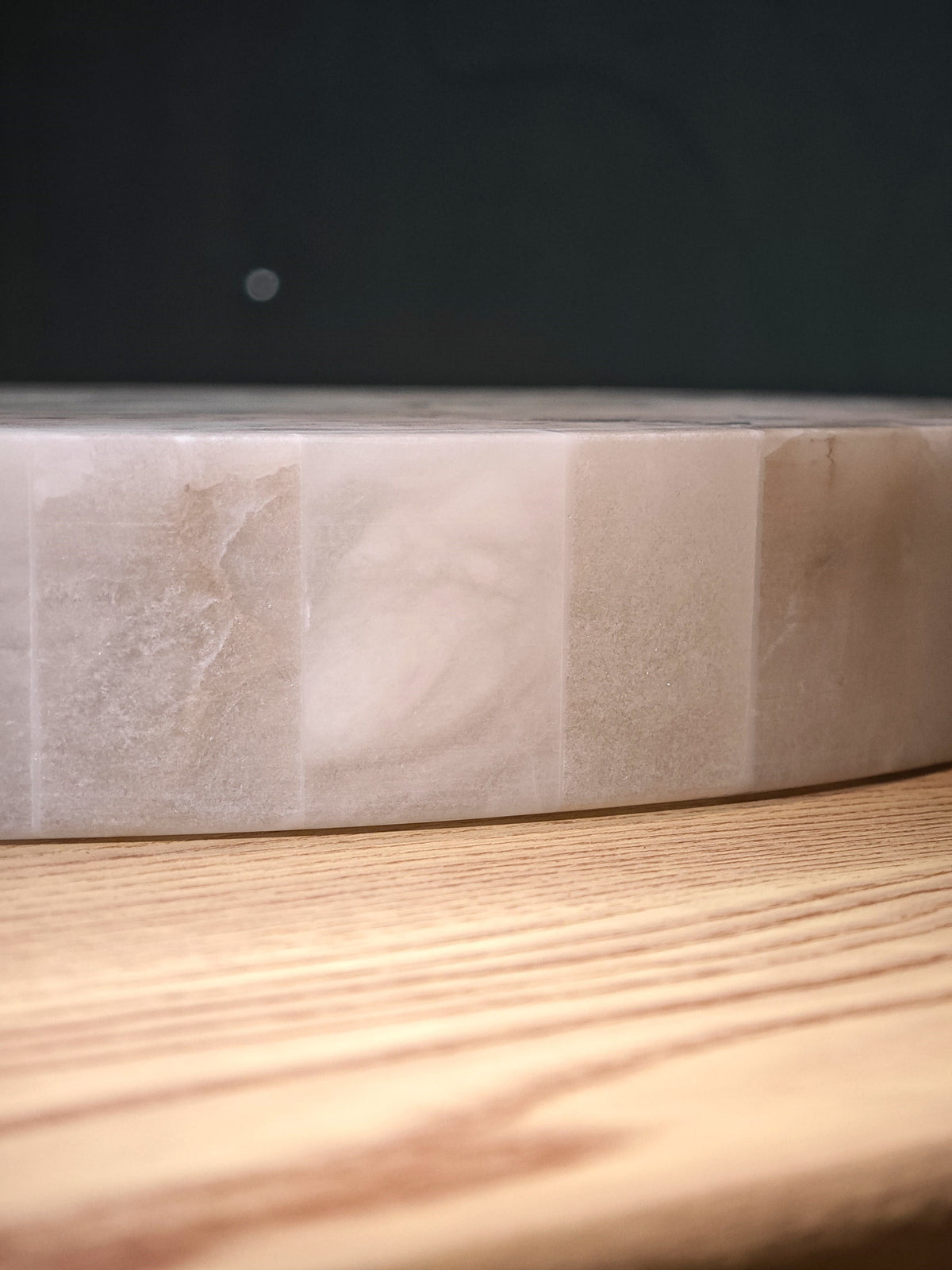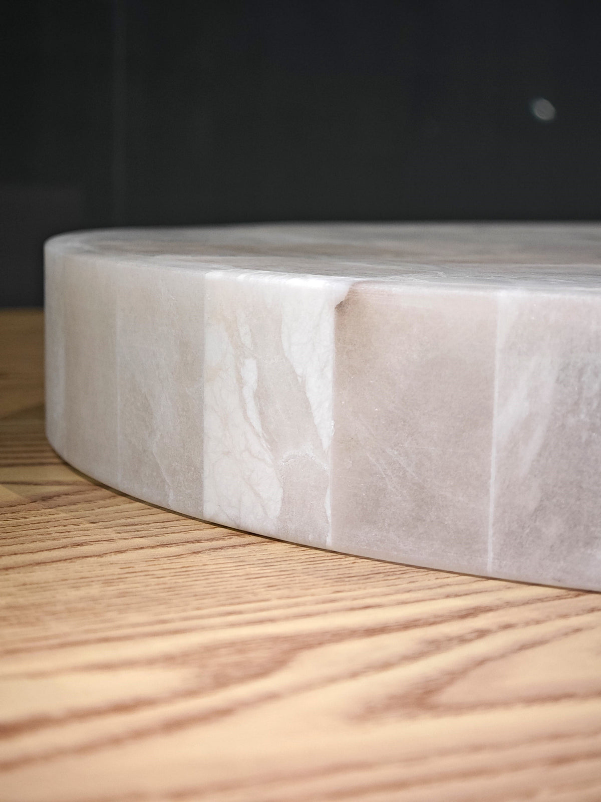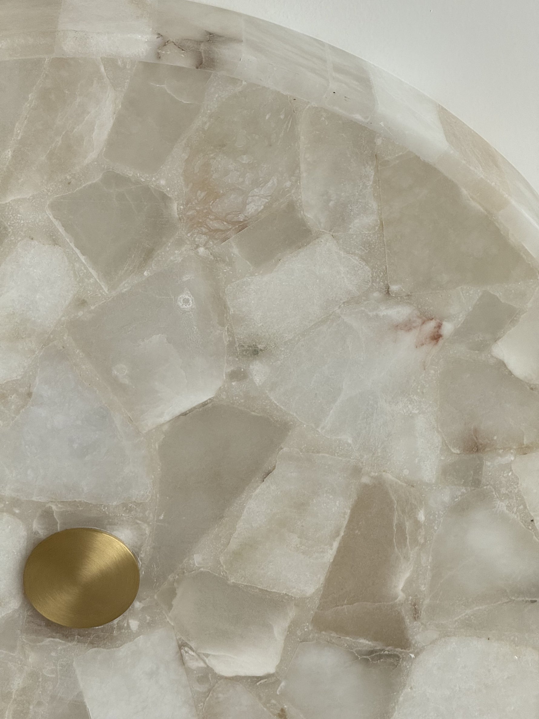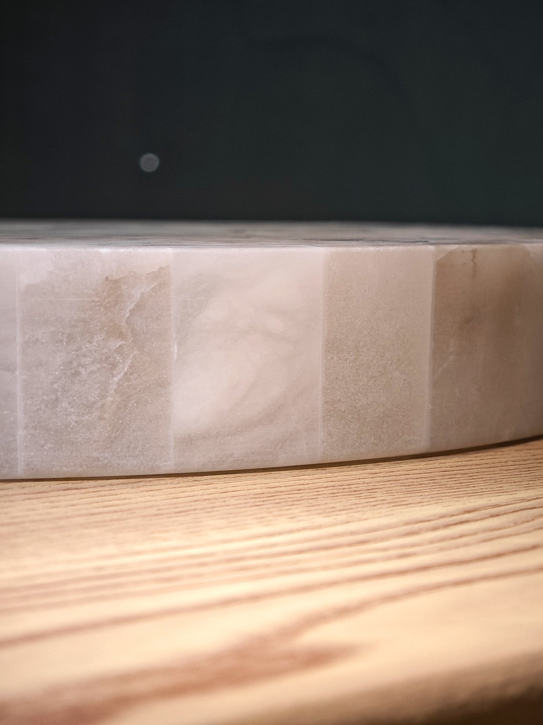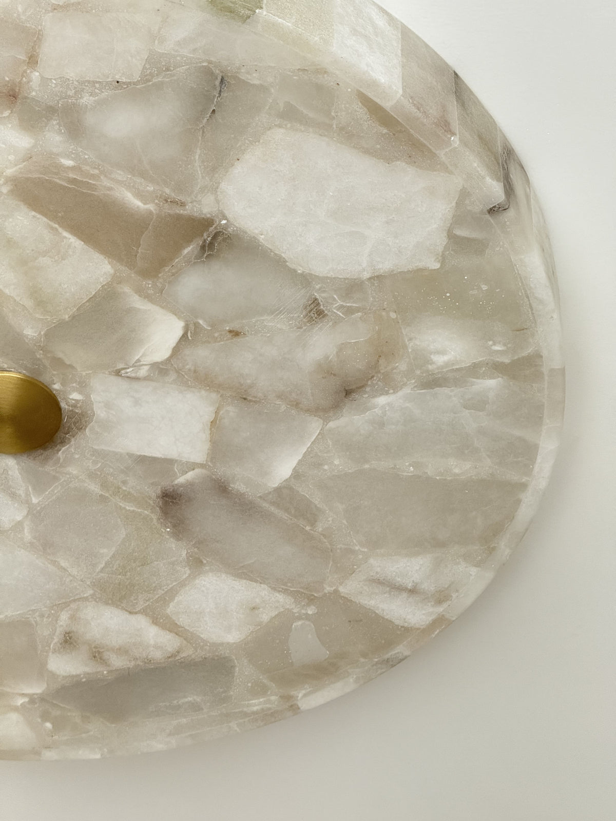 - Otis Alabaster Flush Mount Lighting is a lamp that perfectly combines natural beauty with modern design. The lamp body is carefully carved from natural alabaster, with an elegant cylindrical shape and a circle of small rectangular pieces of alabaster on the side, like an exquisite work of art.