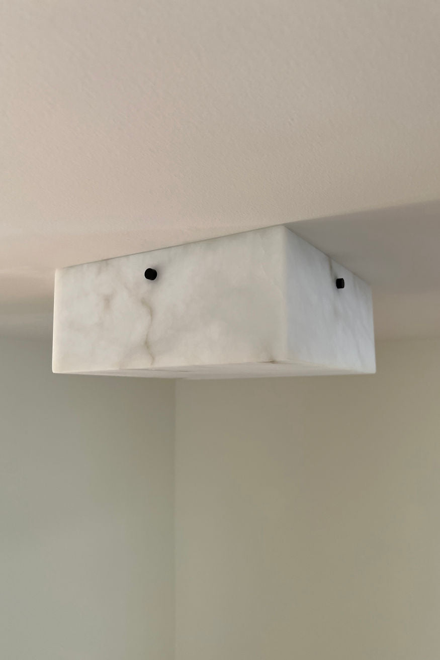 - Crafted from natural alabaster sourced from Northern Italy, the Paddy Alabaster Flush Mount blends timeless elegance with modern design. Each piece features a hand-carved alabaster square , Like marble, alabaster forms over millions of years, with its unique veining revealed through traditional carving techniques. When illuminated, the stone’s translucent quality emits a warm, ethereal glow—reminiscent of the material’s historic use in Italian artistry.
