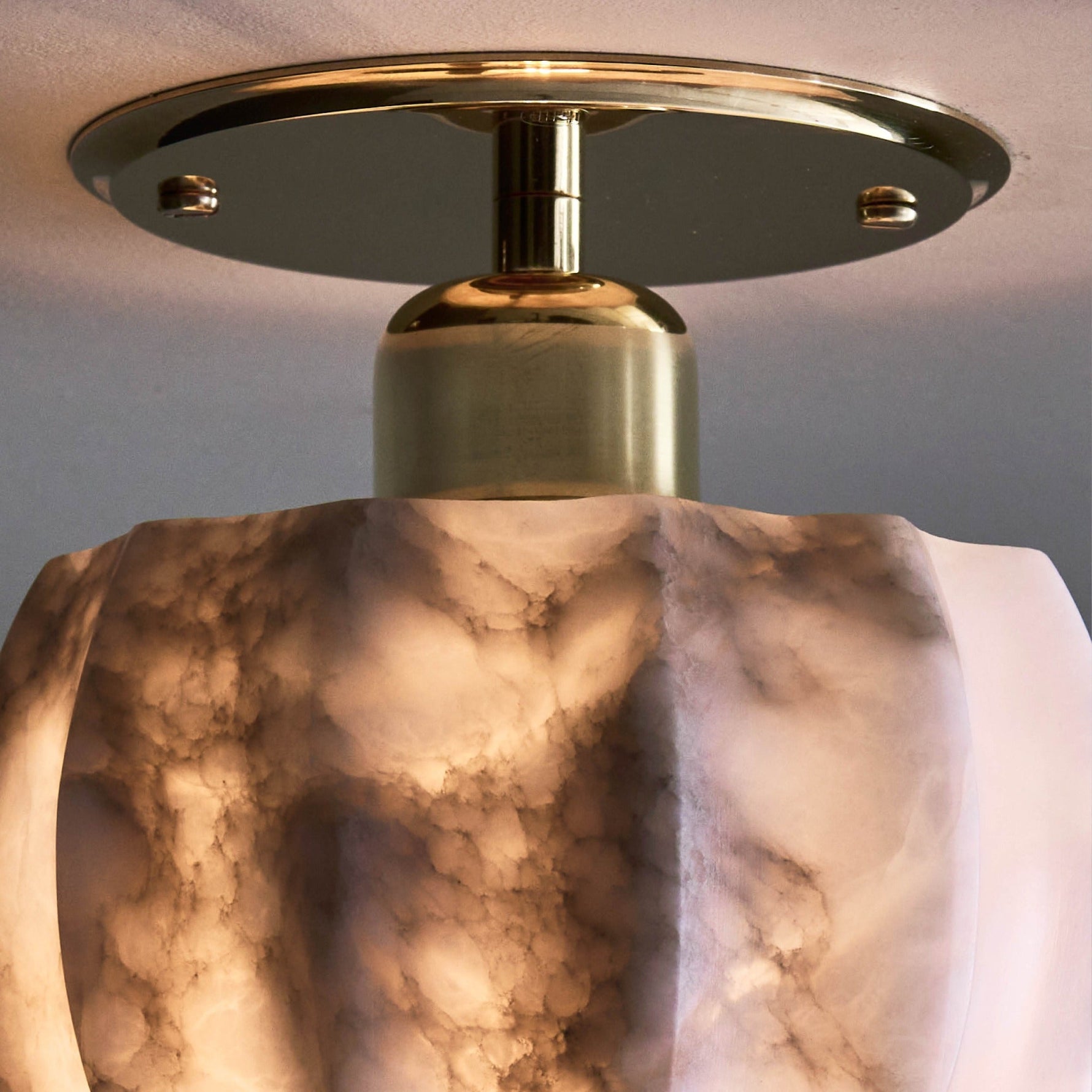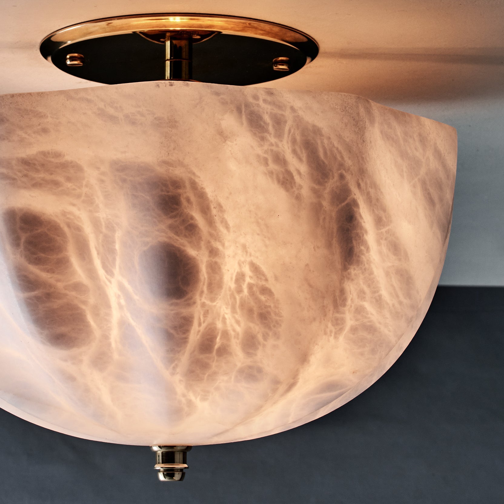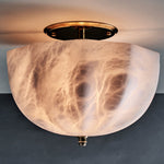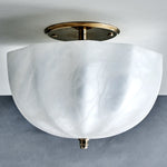 - In a workshop where tradition guides every tool, our expert artisan carefully carves the Rotonde Semi-Flush Mount Lamp's shade. This is not a process of assembly, but of revelation. Starting with a solid block of raw, veined alabaster, the artisan’s skilled hands gradually unveil the graceful, scalloped shape, a design inspired by the rotundas of classical architecture. Each curve is honed with precision, creating a play of light and shadow that is as intentional as it is beautiful. This is slow, deliberate creation, resulting in a piece imbued with a soul that mass-produced lighting can never possess.
