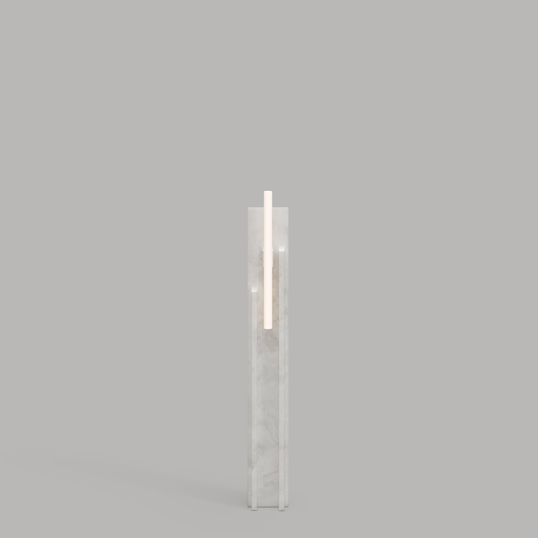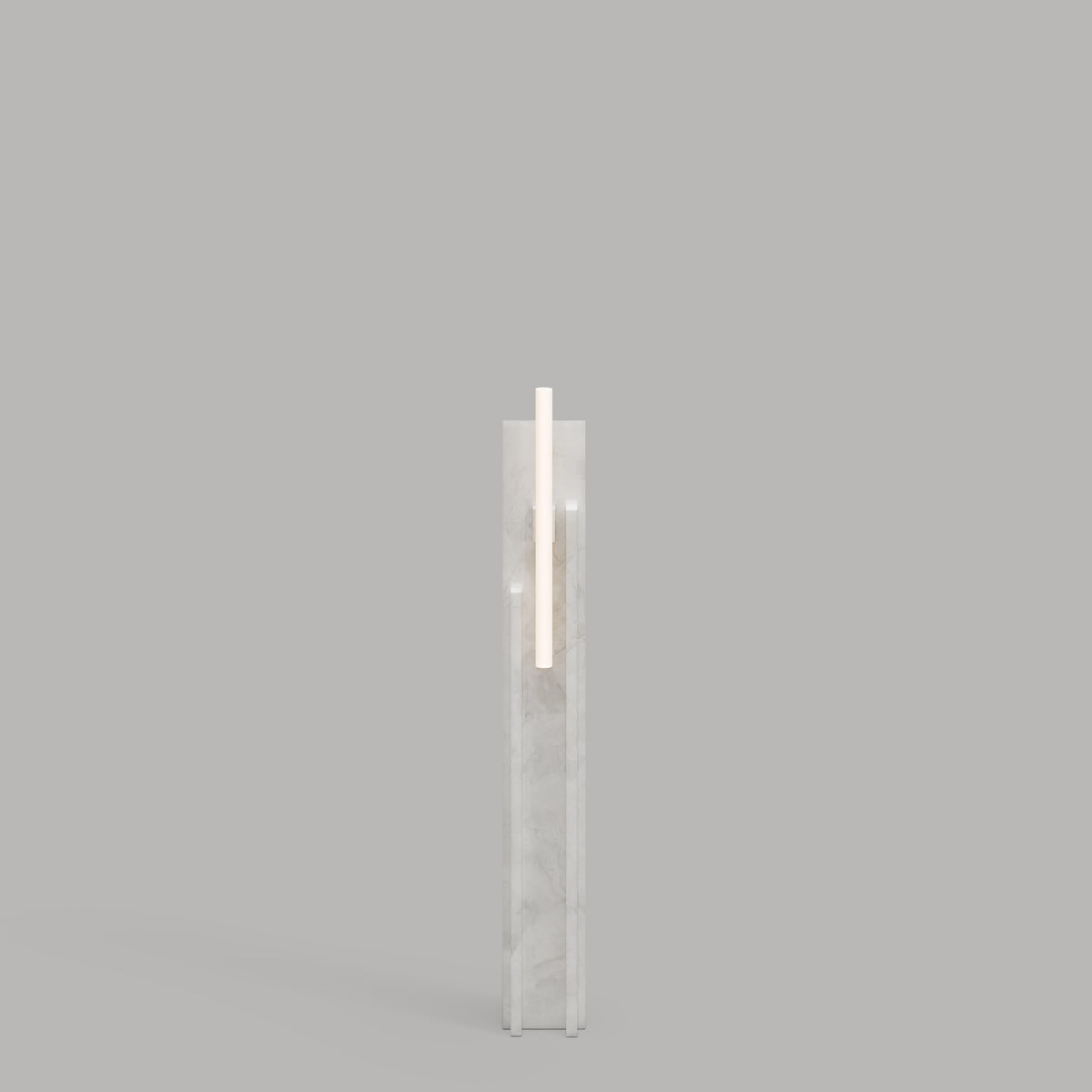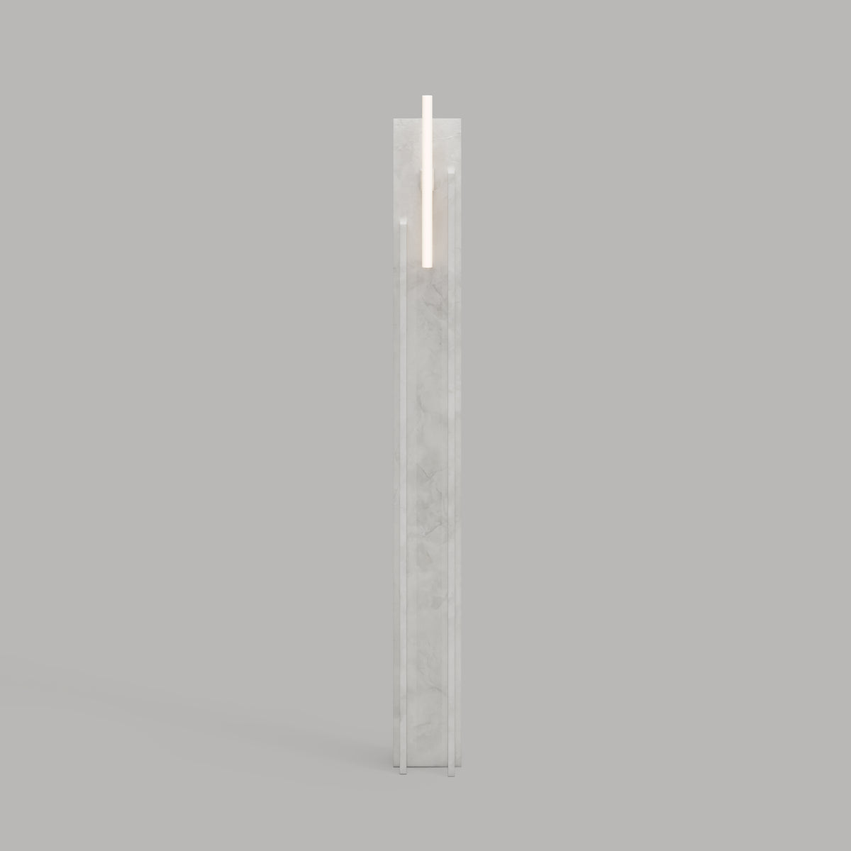 - Thread Alabaster Floor Lamp carved from a single block of genuine alabaster, this floor lamp is a study in reduction. We strip away ornamentation to reveal the material's raw essence—its subtle, milky veins and soft, translucent quality. The clean, vertical lines and geometric form are a contemporary tribute to alabaster’s rich history in art and architecture, creating a piece that feels both timeless and distinctly modern.