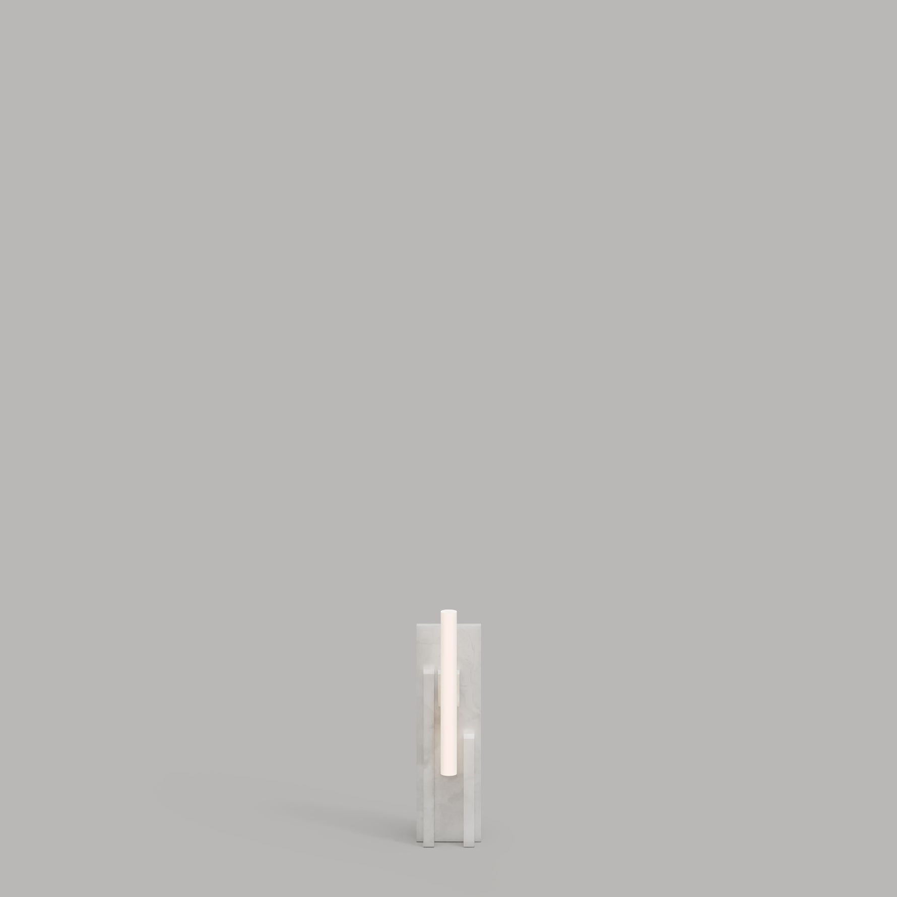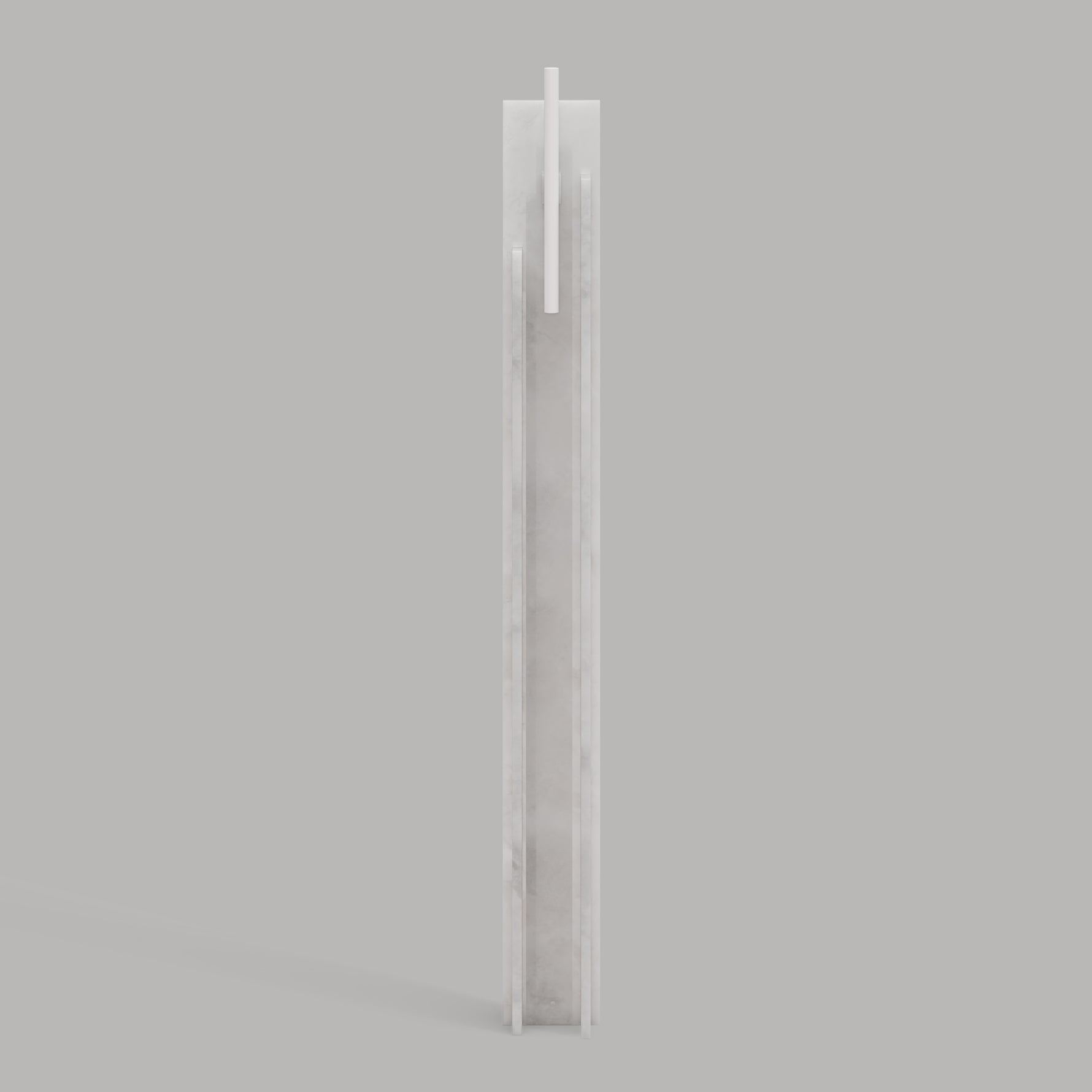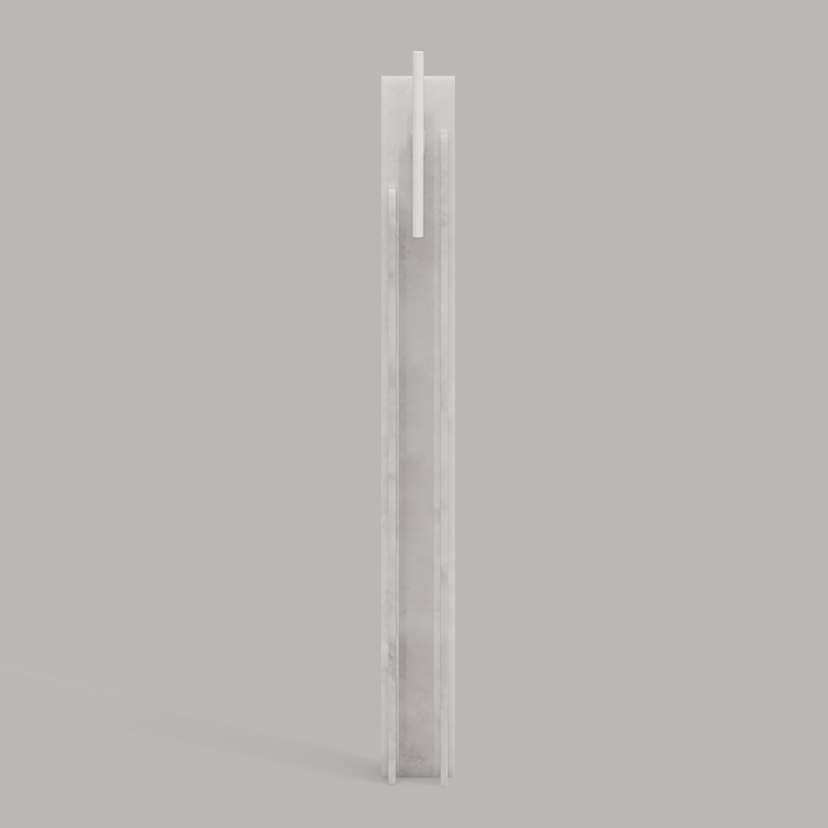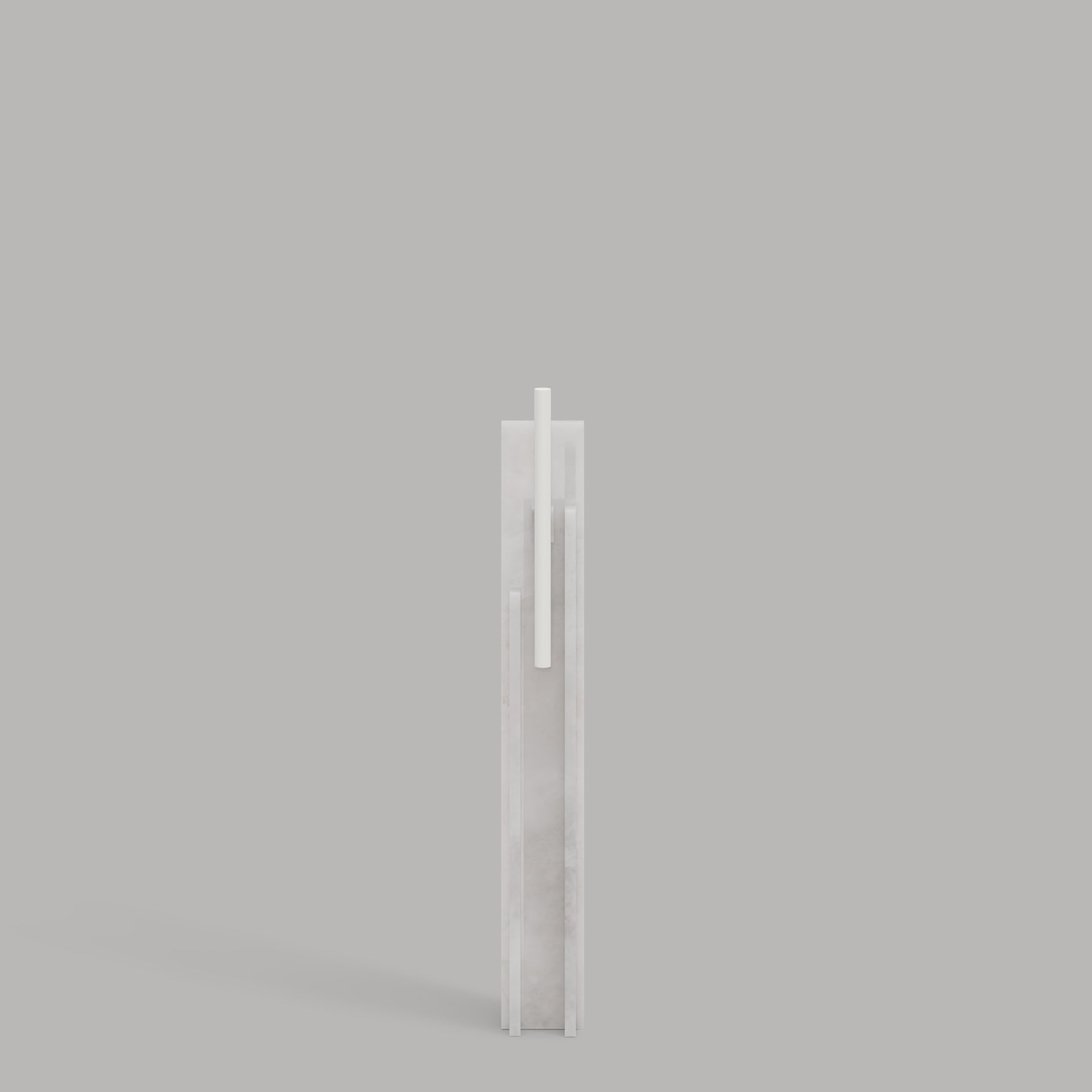 - Thread Alabaster Floor Lamp carved from a single block of genuine alabaster, this floor lamp is a study in reduction. We strip away ornamentation to reveal the material's raw essence—its subtle, milky veins and soft, translucent quality. The clean, vertical lines and geometric form are a contemporary tribute to alabaster’s rich history in art and architecture, creating a piece that feels both timeless and distinctly modern.