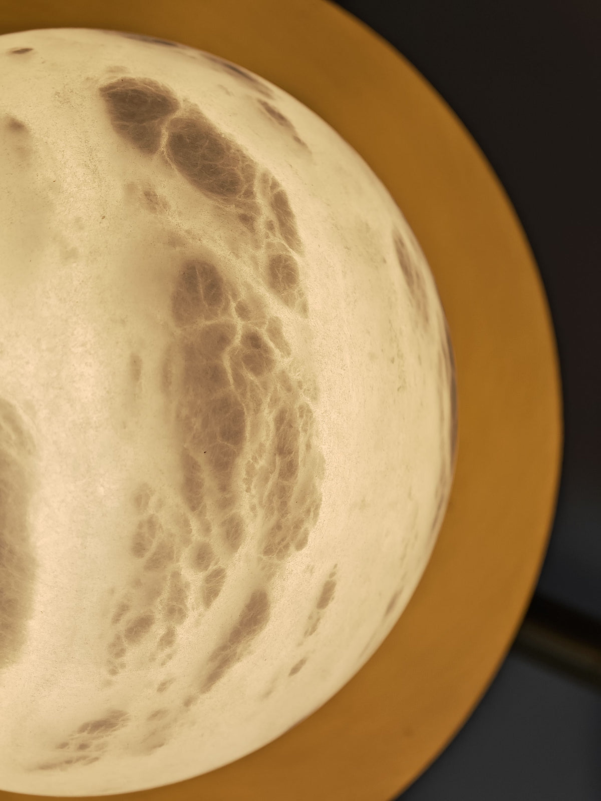 - Complementing the alabaster globes is a sleek brass frame, crafted from real brass hardware for enduring quality and a luxe finish. The slender, minimalist design supports two gracefully suspended circular accents, adding a touch of modern sophistication to any interior.