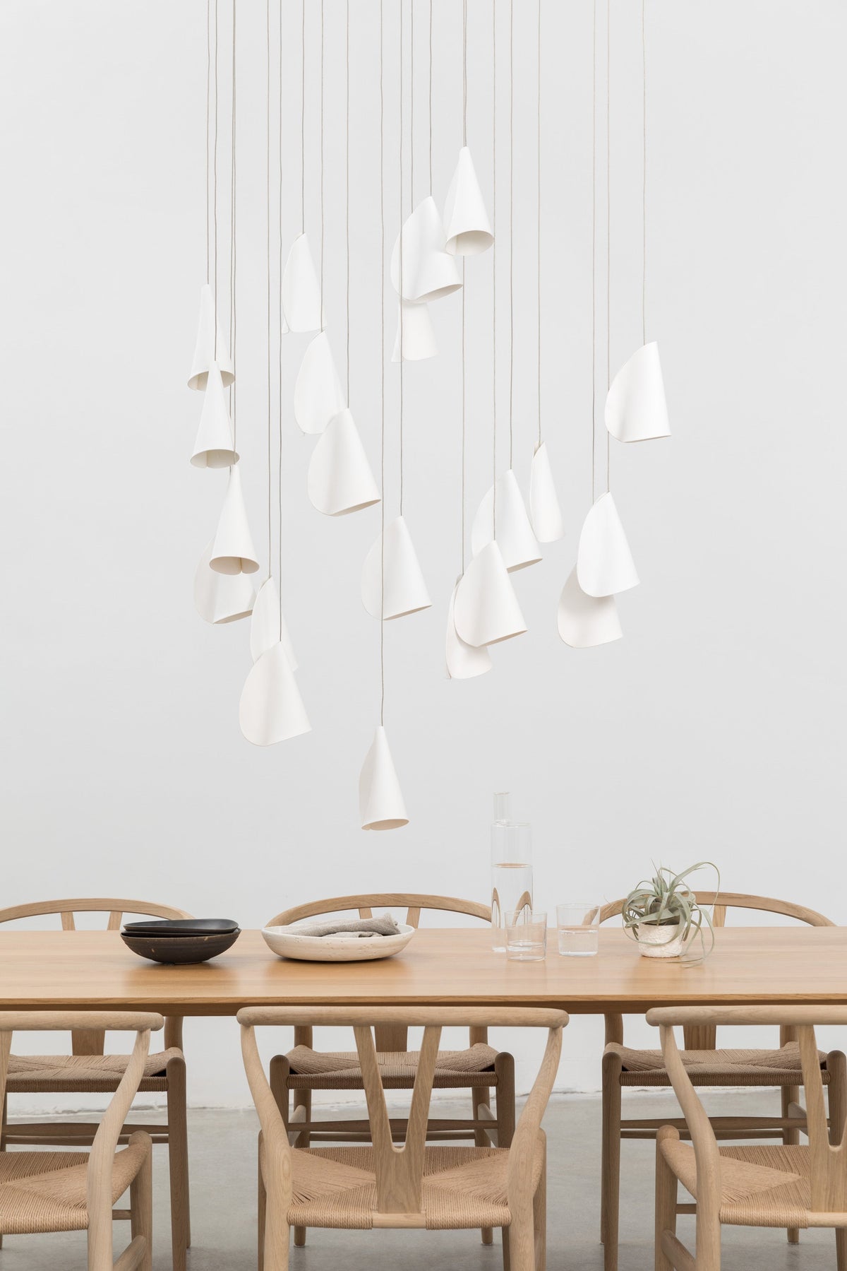 - Thin sheets of premium porcelain are meticulously hand-sculpted, allowing them to naturally fold and crease into intricate, fluid structures. This embrace of organic formation means your pendant will possess a distinctive shape and character all its own.