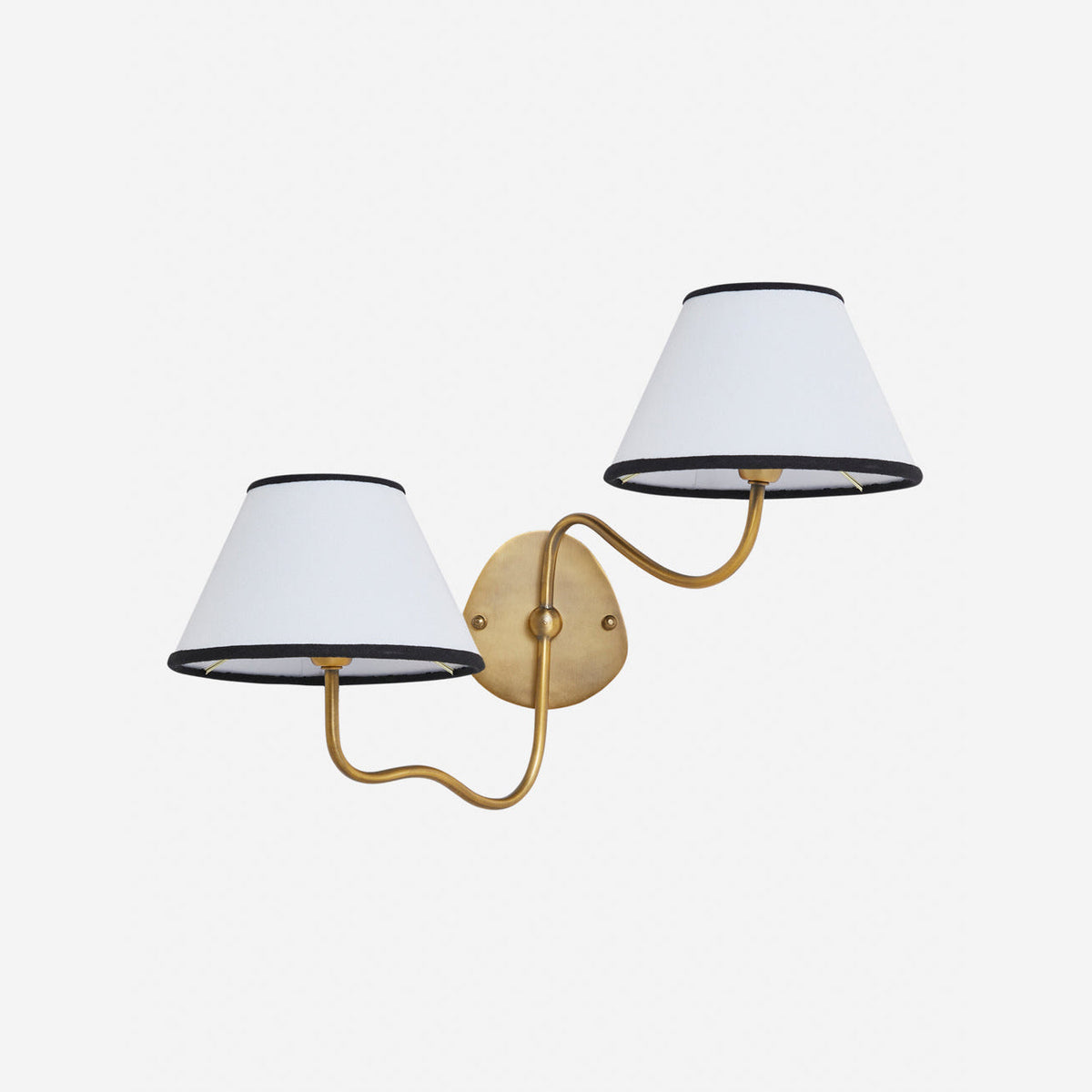 - Elevate your space with the Magdalene Double Sconce. Its clean, traditional lines are enhanced by graceful, wavy accents, creating a captivating blend of classic and contemporary design. The sleek, polished finish adds a touch of sophistication to any room. This versatile sconce provides ample accent lighting, making it ideal for entryways, bedrooms, or living areas.