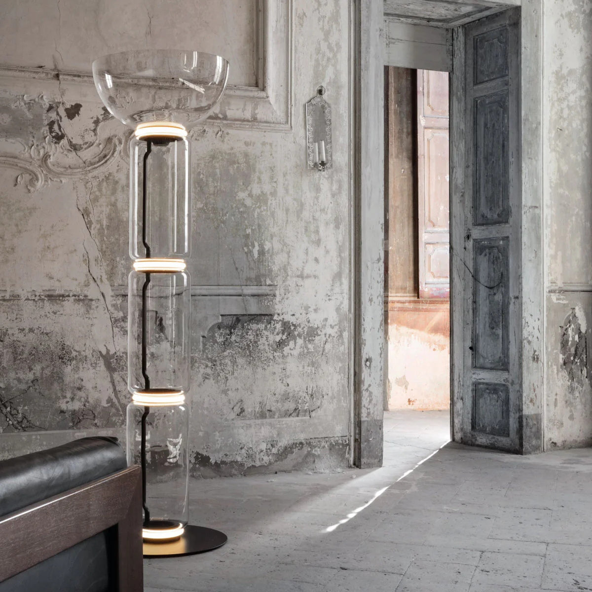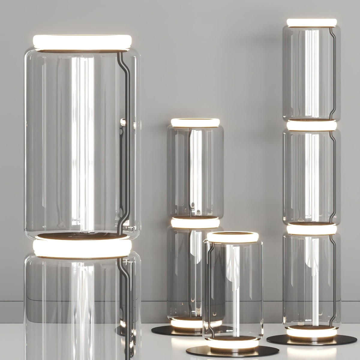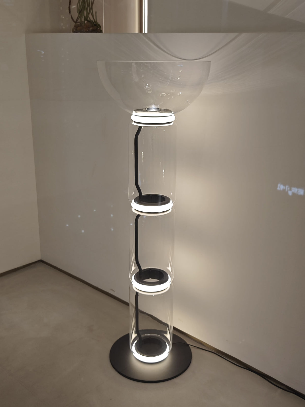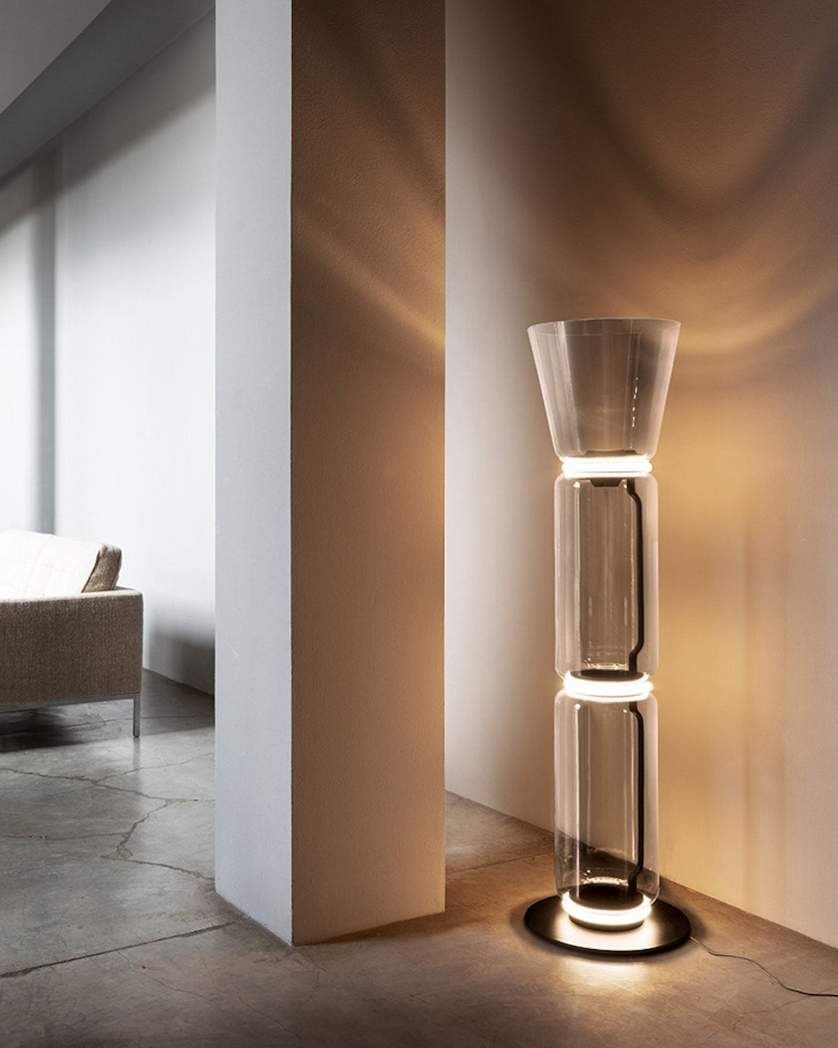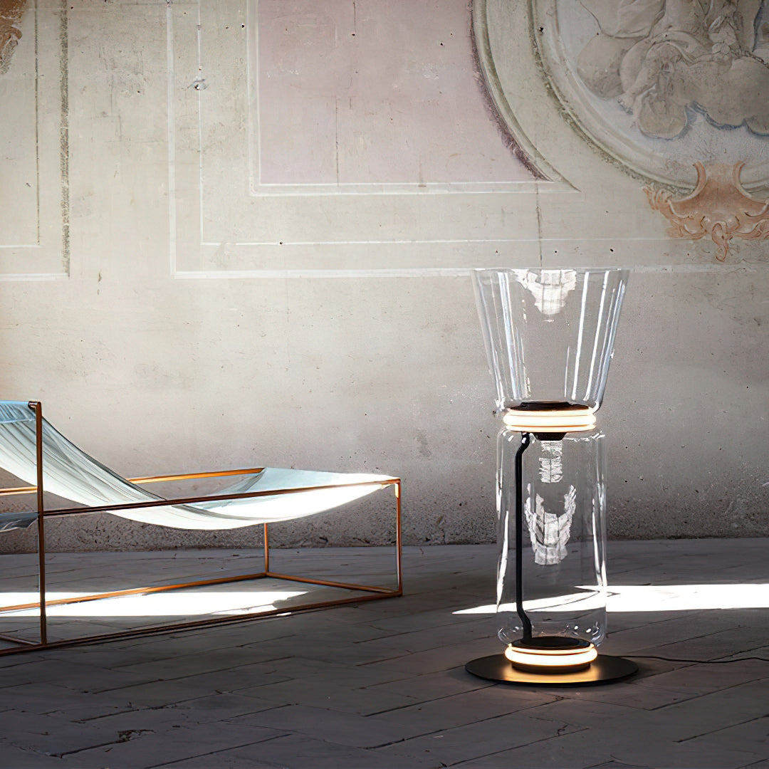 - The Noctambule Floor Lamp, designed by renowned Konstantin Grcic, is a visionary lighting system that blends cutting-edge technology with elegant aesthetics. Its transparent hand-blown glass cylinder, adorned with discrete LED technology at both ends, creates a captivating and visually striking foundation. The Noctambule's modular design empowers you to tailor the lighting to perfectly suit your interior space and personal style.