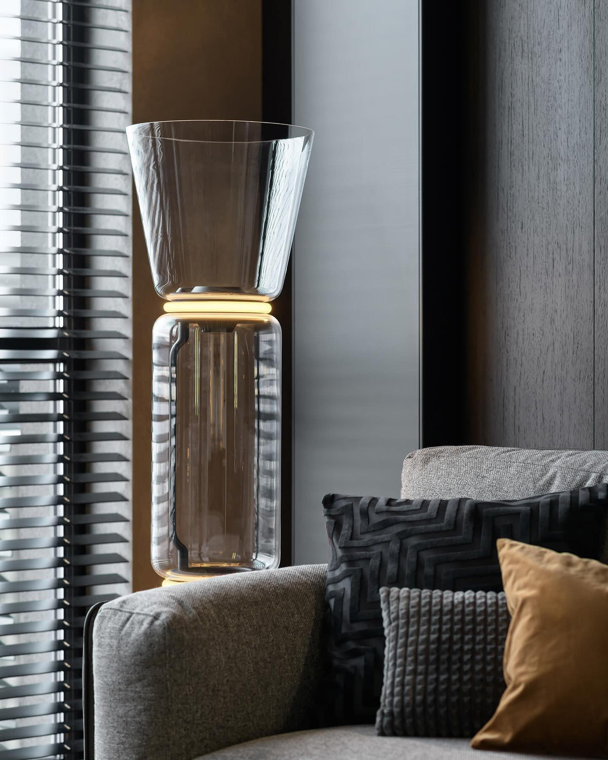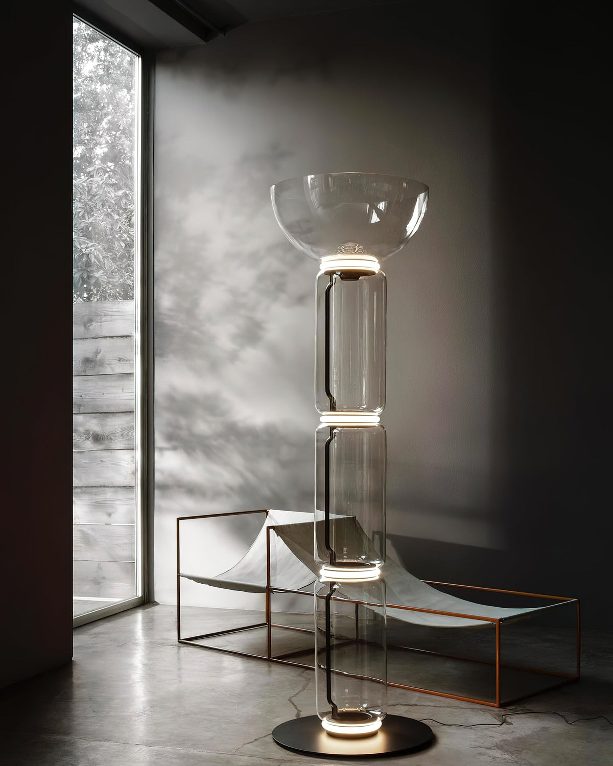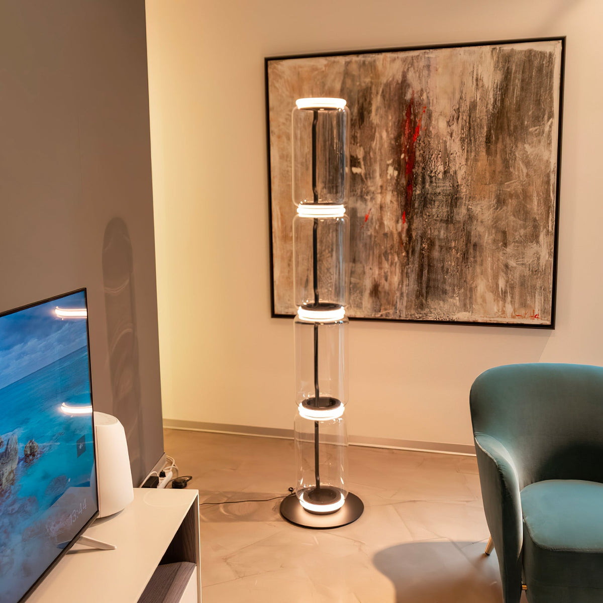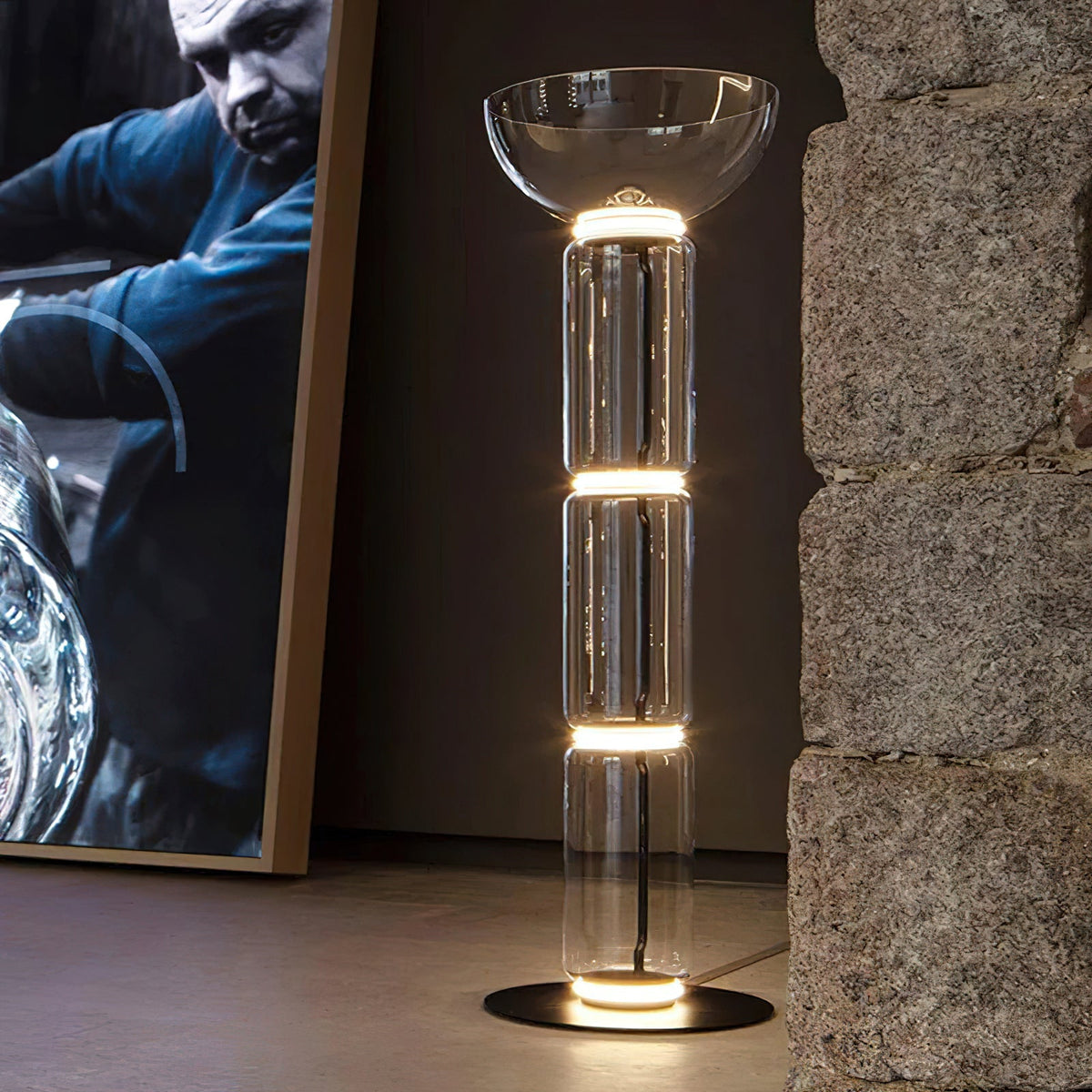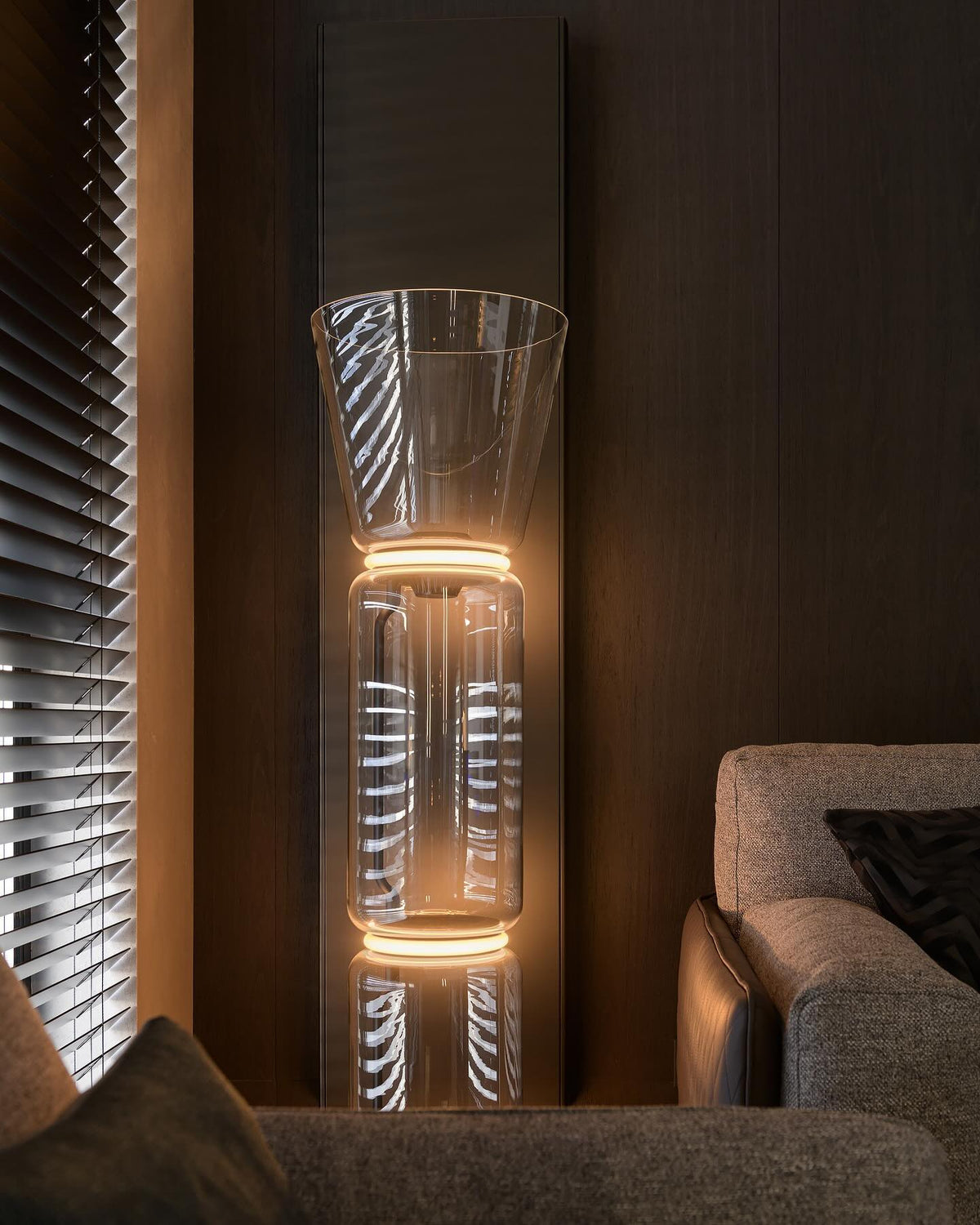 - The Noctambule Floor Lamp, designed by renowned Konstantin Grcic, is a visionary lighting system that blends cutting-edge technology with elegant aesthetics. Its transparent hand-blown glass cylinder, adorned with discrete LED technology at both ends, creates a captivating and visually striking foundation. The Noctambule's modular design empowers you to tailor the lighting to perfectly suit your interior space and personal style.