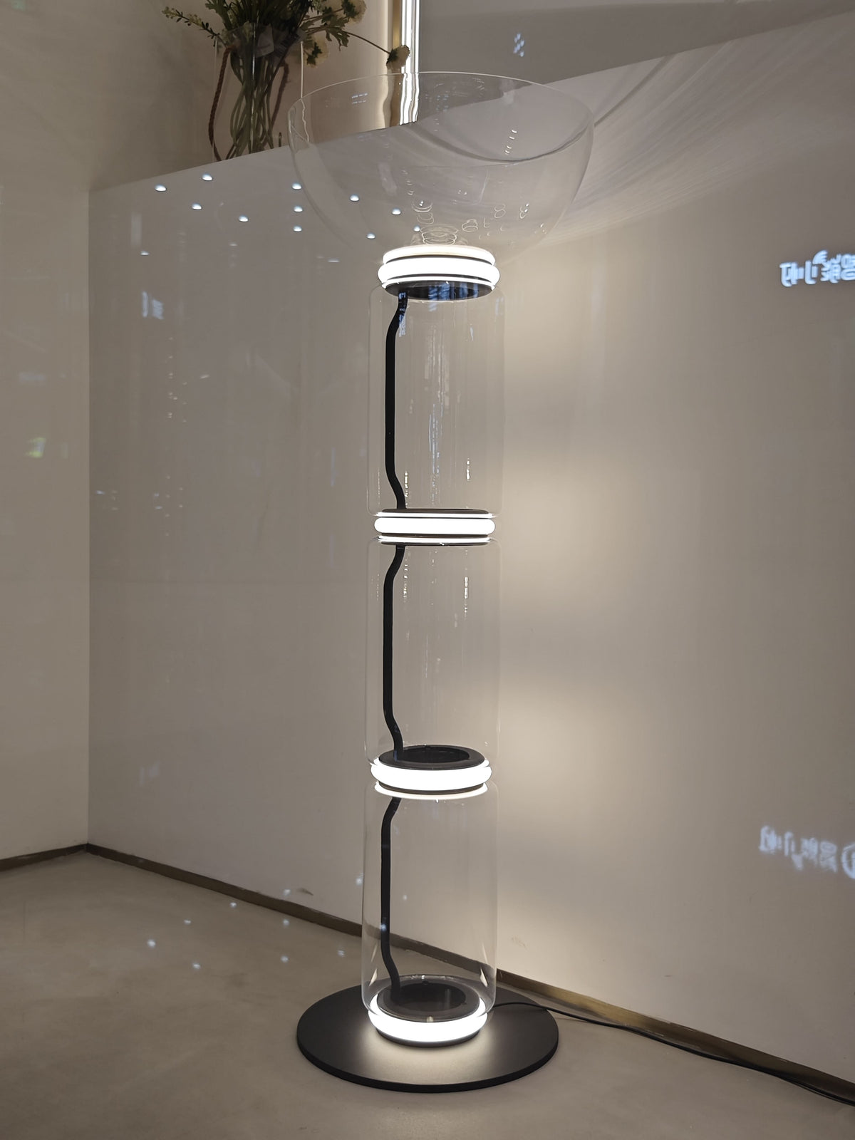 | Specifications1. Fixture Type: Floor Lamp2. Style: Modern 3. Body Finishes: Black 4. Shade Finishes: Clear 5. Main Material: Glass (Shade) | Aluminum (Body) | Resin (Connection) 6. Scenes to be Used: Indoor Only (IP20) 7. Light Source Base: SMD LED 8. Bulb Included: N/A 9. Number of Bulbs Required: N/A 10. Kelvin Range: 3000K 11. Dimmable: Customized 12. Remote Control: Customized 13. Voltage: 95V-265V AC 14. Warranty: Two Years 15. Assembly Required: Yes 16. Installation Required: No 17. Sloped Ceiling Compatible: N/A 18. Adjustable Length: No 19. Wiring: Plug-in 20. Length of Cord: 59 inches | 1.5 meters 21. Product Care: Wipe clean with damp cloth |
