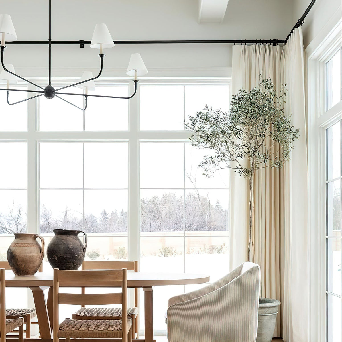 - Intricate metal arms, flared candle plates, and crisp linen shades create a sophisticated and refined look.