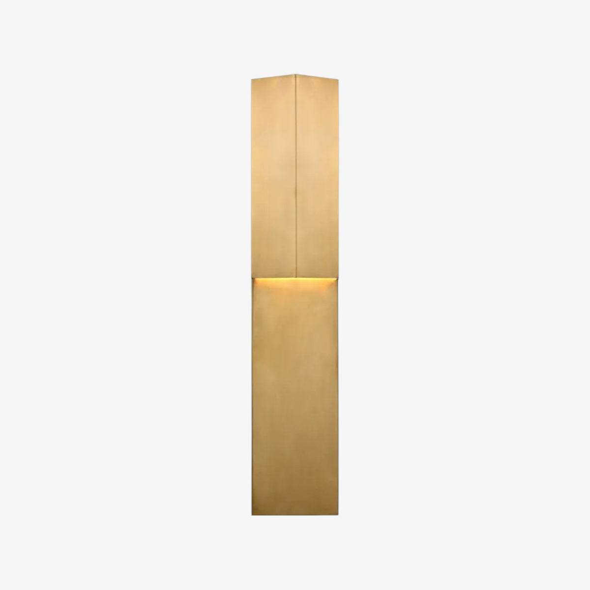 - Elevate your interior aesthetic with the Rega Folded Sconce, a masterful blend of minimalist design and warm, radiant luxury. Expertly crafted from solid brass, this 24-inch wall lamp transforms any room into a sanctuary of style and sophistication.