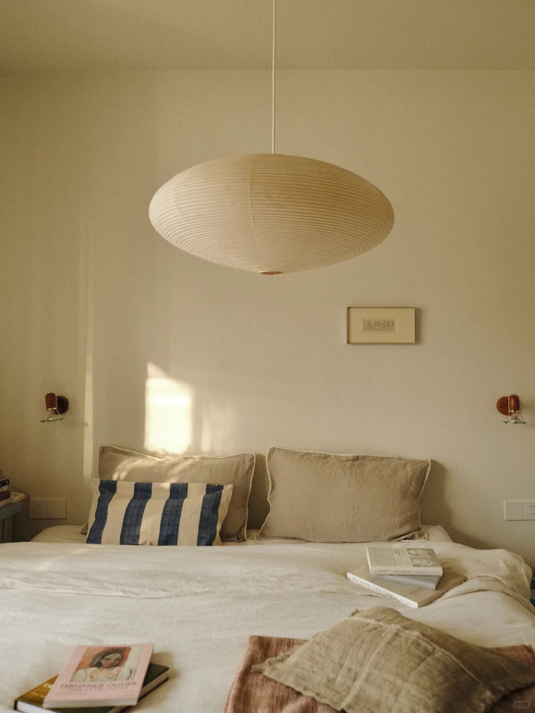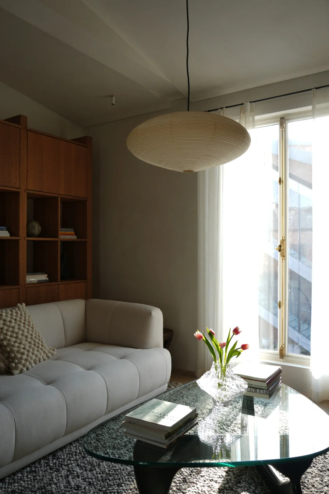 - Elevate your interior space with the iconic Akari 21A Pendant Lighting. Designed by renowned designer Isamu Noguchi, this stunning light fixture combines traditional Japanese craftsmanship with modern aesthetics. Its translucent washi paper shade diffuses light beautifully, creating a warm and inviting ambiance. The delicate texture and intricate design add a touch of elegance to any room.