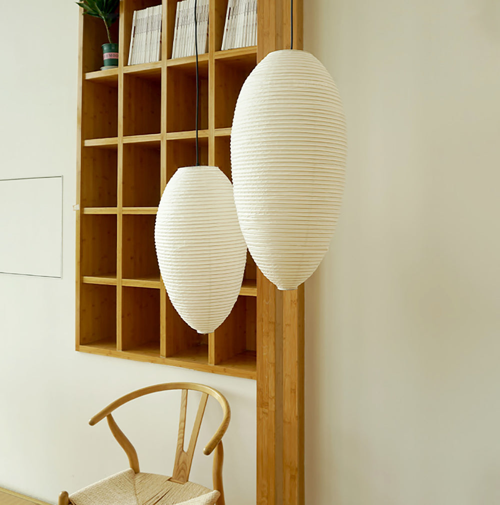- Experience the understated elegance of the Akari 23A&24A Ceiling Lamp, a captivating pendant light that brings a touch of Japanese artistry to any space. This exquisite lamp features graceful, vase-like curves that evoke a sense of tranquility and sophistication.