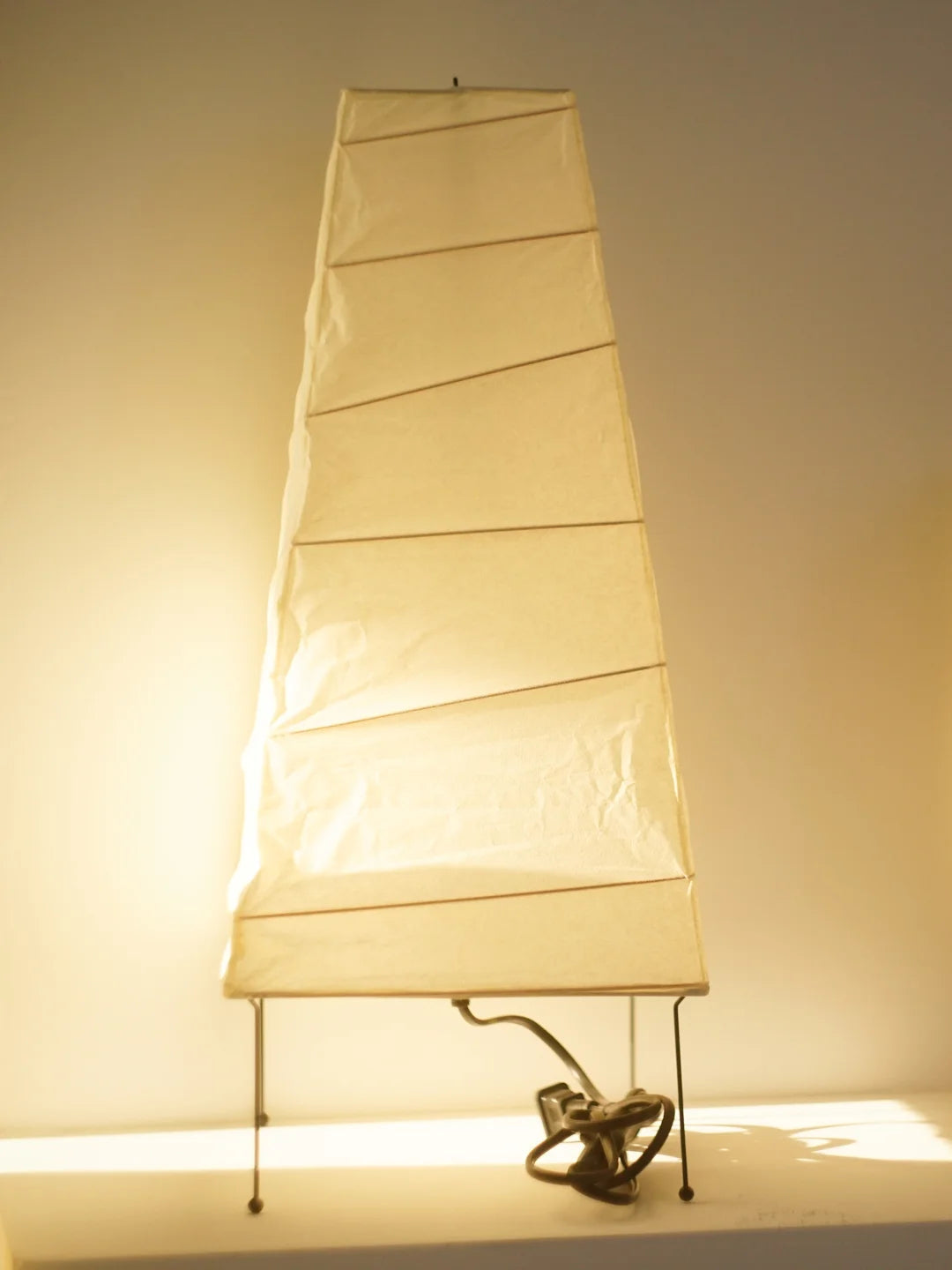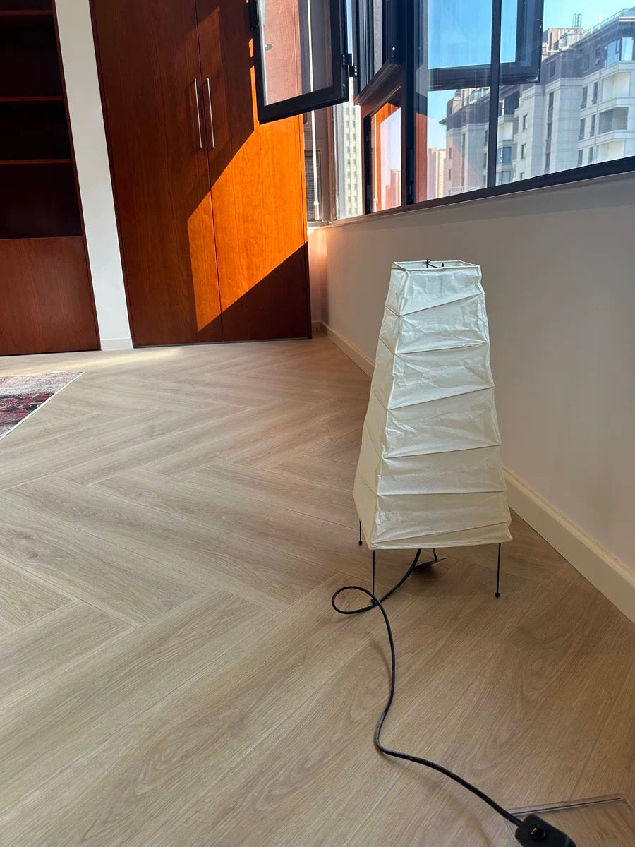 - Experience the timeless elegance of the Akari 4N Table Lamp, a masterpiece designed by the renowned Isamu Noguchi. Crafted with a handcraft washi paper lampshade, this lamp exudes a warm and inviting glow that creates a cozy ambiance on any bedside table or desk. The delicate folds in the paper add a touch of casual charm, making it a perfect complement to modern and traditional interiors alike.