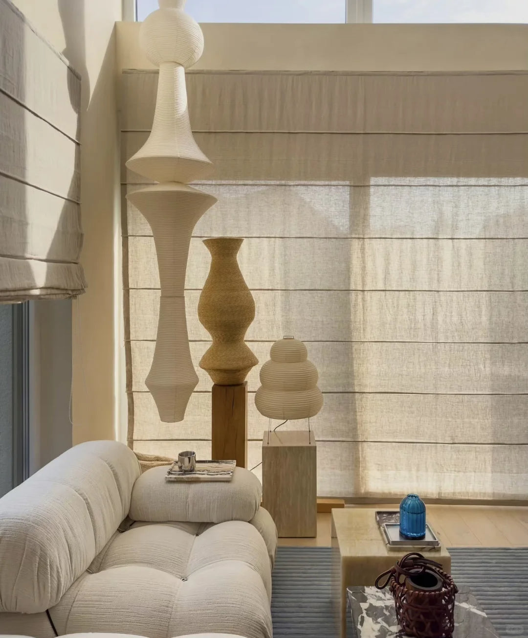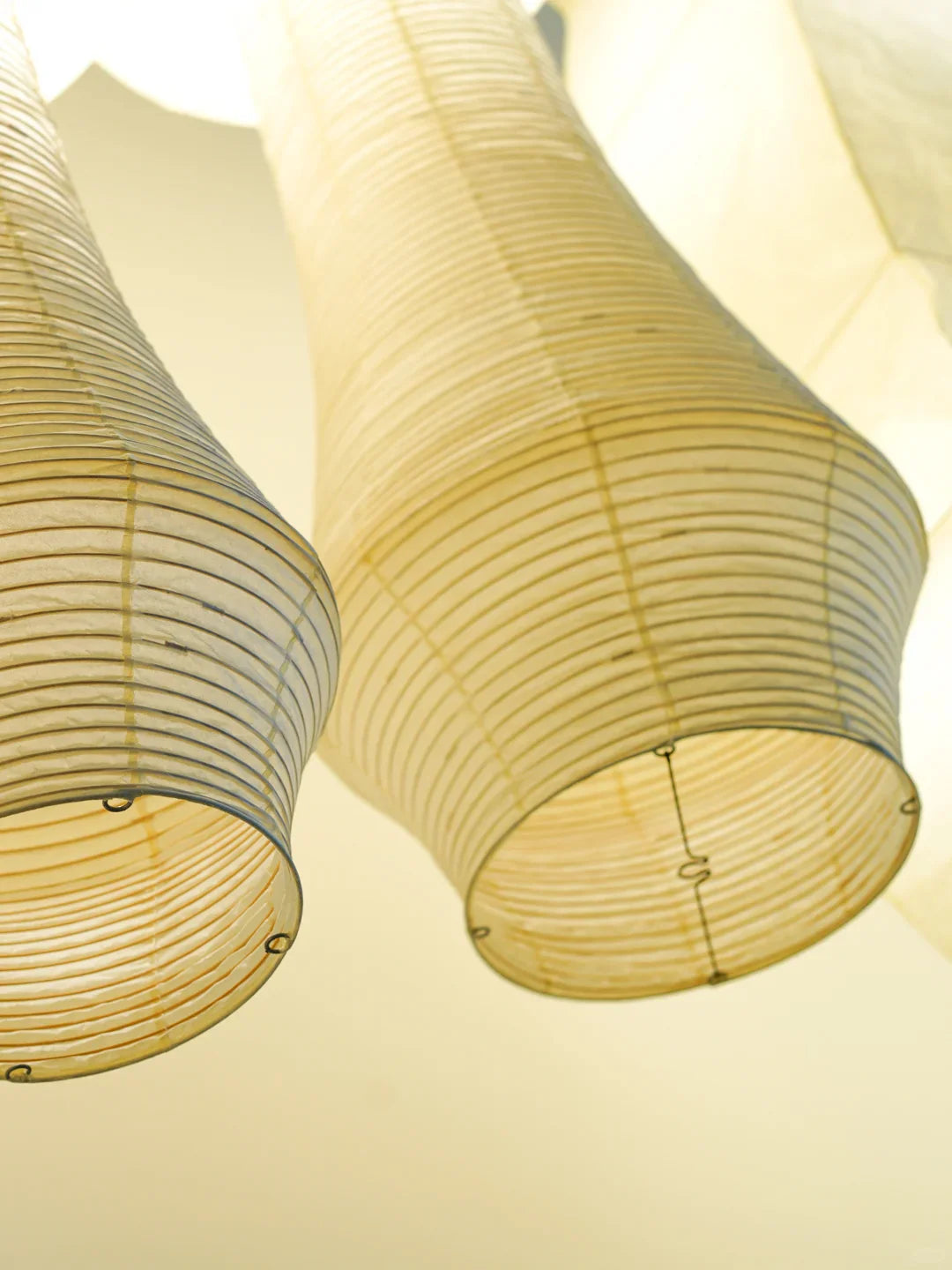 - Crafted with Noguchi’s signature blend of Japanese craftsmanship and modernist elegance, the Akari E features a delicate handmade washi paper shade supported by a lightweight bamboo frame, casting a soft, ambient glow that enhances any environment. Its elongated, sculptural form creates a striking visual presence while maintaining an airy, organic aesthetic.
