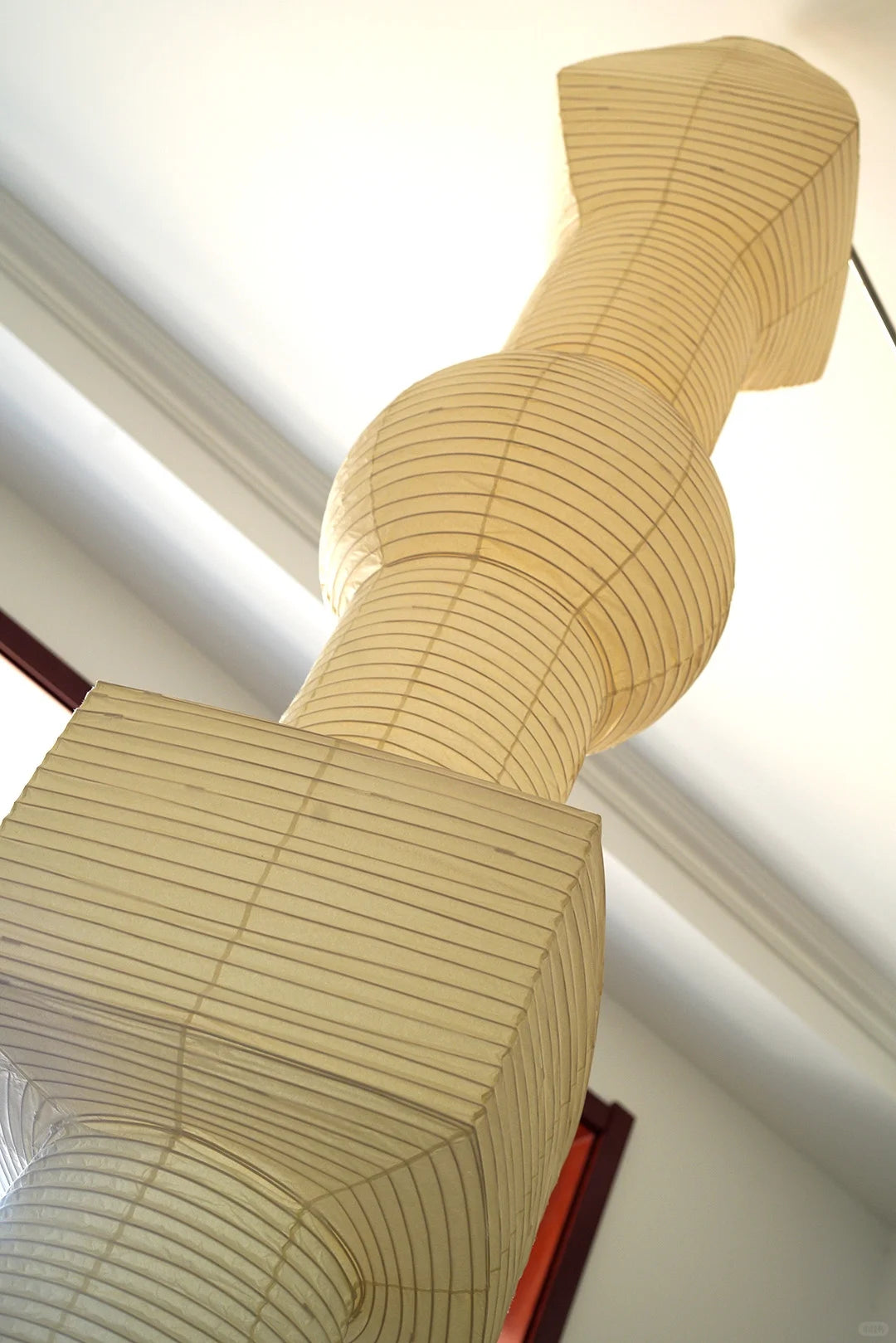 - Featuring a softly glowing off-white Japanese washi paper shade supported by an intricately woven bamboo frame. The organic texture of the handmade paper and the natural bamboo structure harmonize seamlessly, creating a sculptural yet minimalist silhouette. Suspended from a black metal bracket and nylon braided wire, this pendant light balances modern simplicity with artisanal warmth.