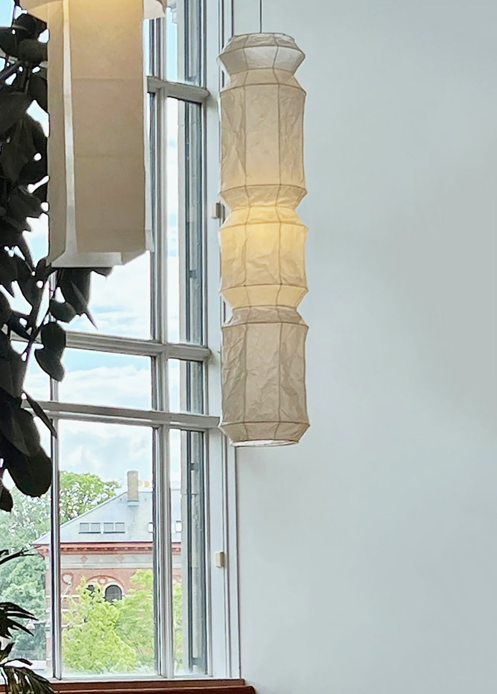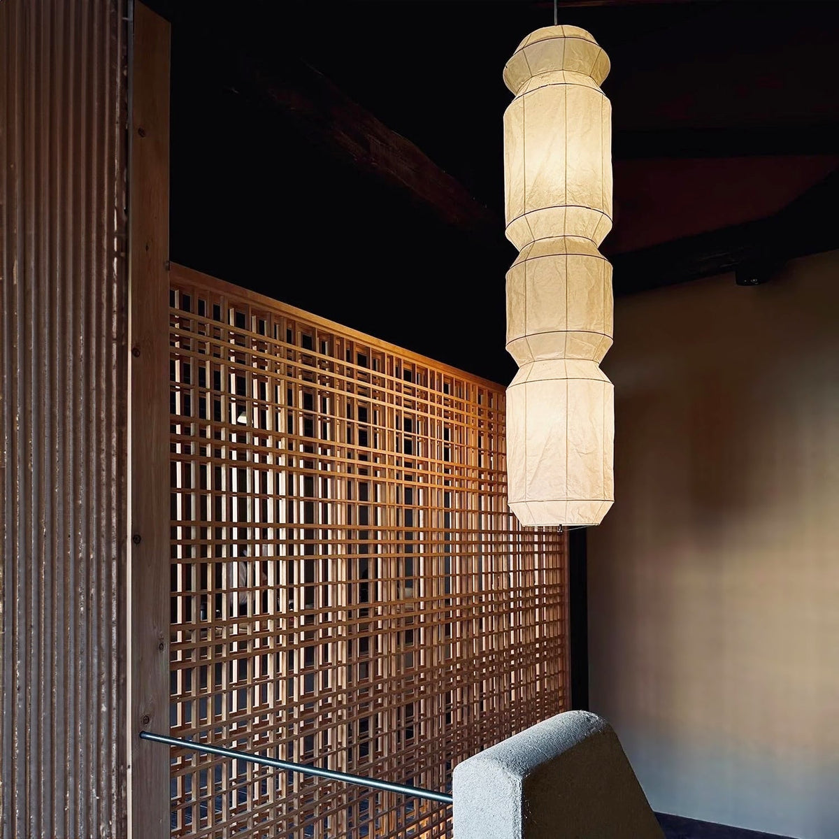 - Experience the ethereal beauty of the Akari L6 Ceiling Lamp, a stunning pendant light that seamlessly blends artistry and illumination. This captivating design features a staggered body of lights, evoking the graceful rhythm of bamboo knots. Handcrafted with meticulous attention to detail using traditional Japanese techniques, the Akari L6 casts a warm and inviting glow, creating a serene and sophisticated ambiance in any space.