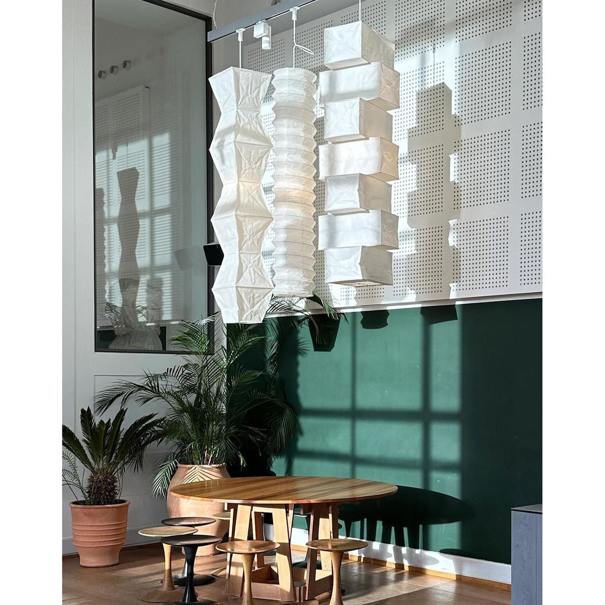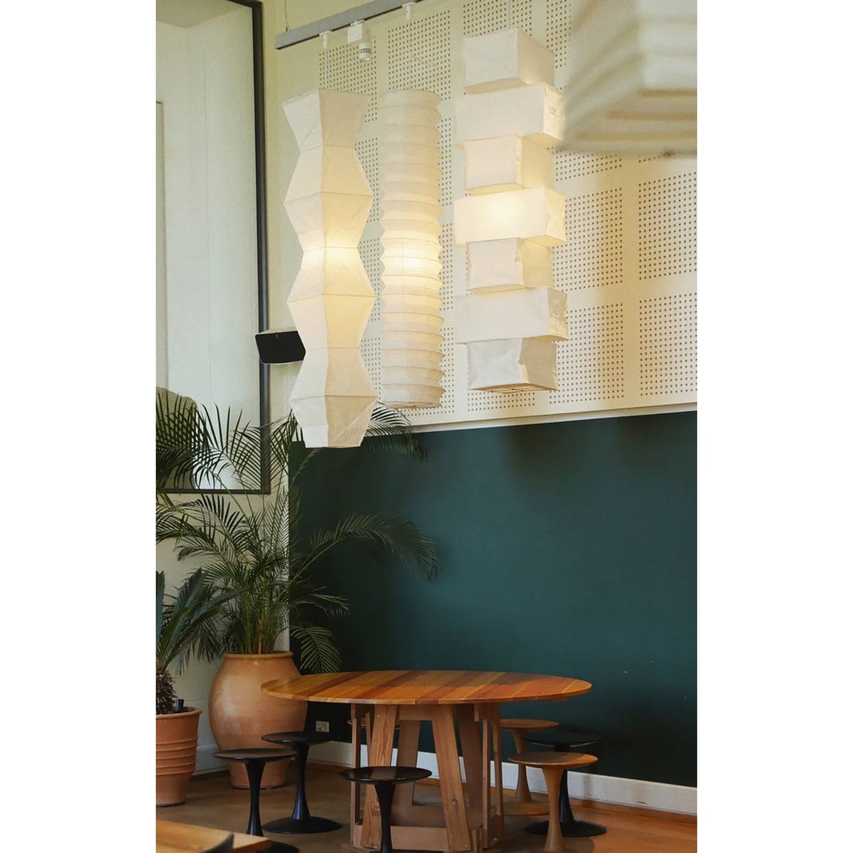 - Elevate your space with the iconic Akari L7 Ceiling Lamp. This stunning light sculpture, a creation of renowned artist Isamu Noguchi, seamlessly blends traditional Japanese craftsmanship with mid-century modern design. The Akari L7 features delicate paper shades that cast a warm, ambient glow.