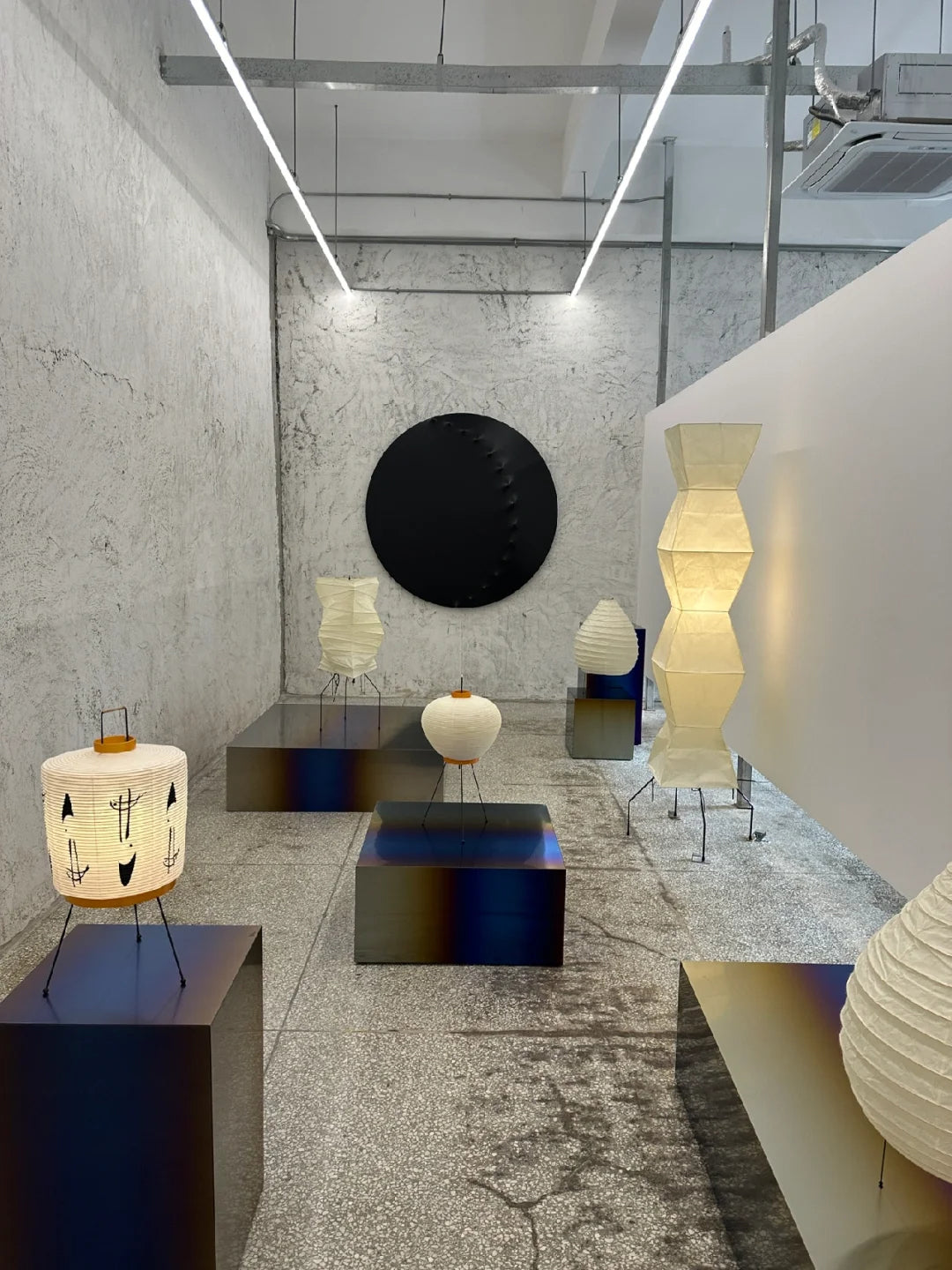 - Immerse yourself in the elegance of mid-century modern design with the Akari UF4-L9 Floor Lamp. Crafted by the legendary Isamu Noguchi, this iconic piece is a testament to the harmonious blend of Japanese tradition and contemporary aesthetics.