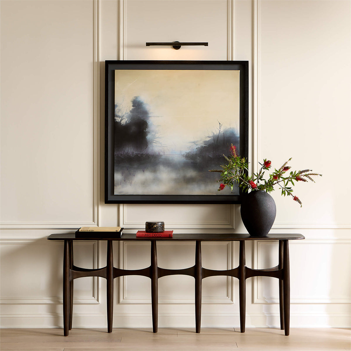 - Showcase your artwork in its best light. Ape Wall Mount Picture Sconce features a sleek, contemporary shade that projects a perfect beam of light, eliminating glare and ensuring your paintings, prints, or photographs are the star of the show. The fully adjustable arm allows you to direct the light exactly where it's needed, offering both flexibility and a flawless presentation.