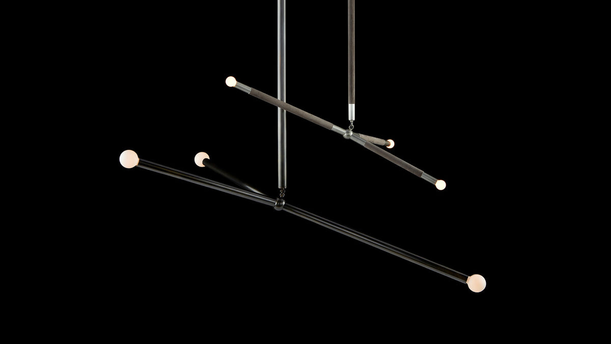 - Elevate your space with the Arrow Pendant Lamp, where modern art meets functional design. This stunning piece moves beyond traditional lighting, featuring an innovative structure of multiple intersecting and radiating brass rods. The result is a captivating geometric form with clean, sleek lines that creates a dynamic and ever-changing silhouette from every angle.