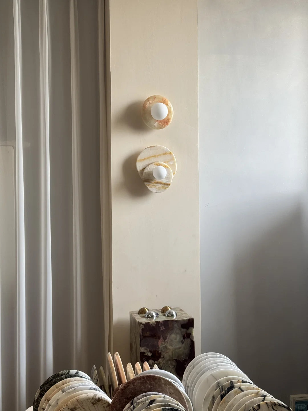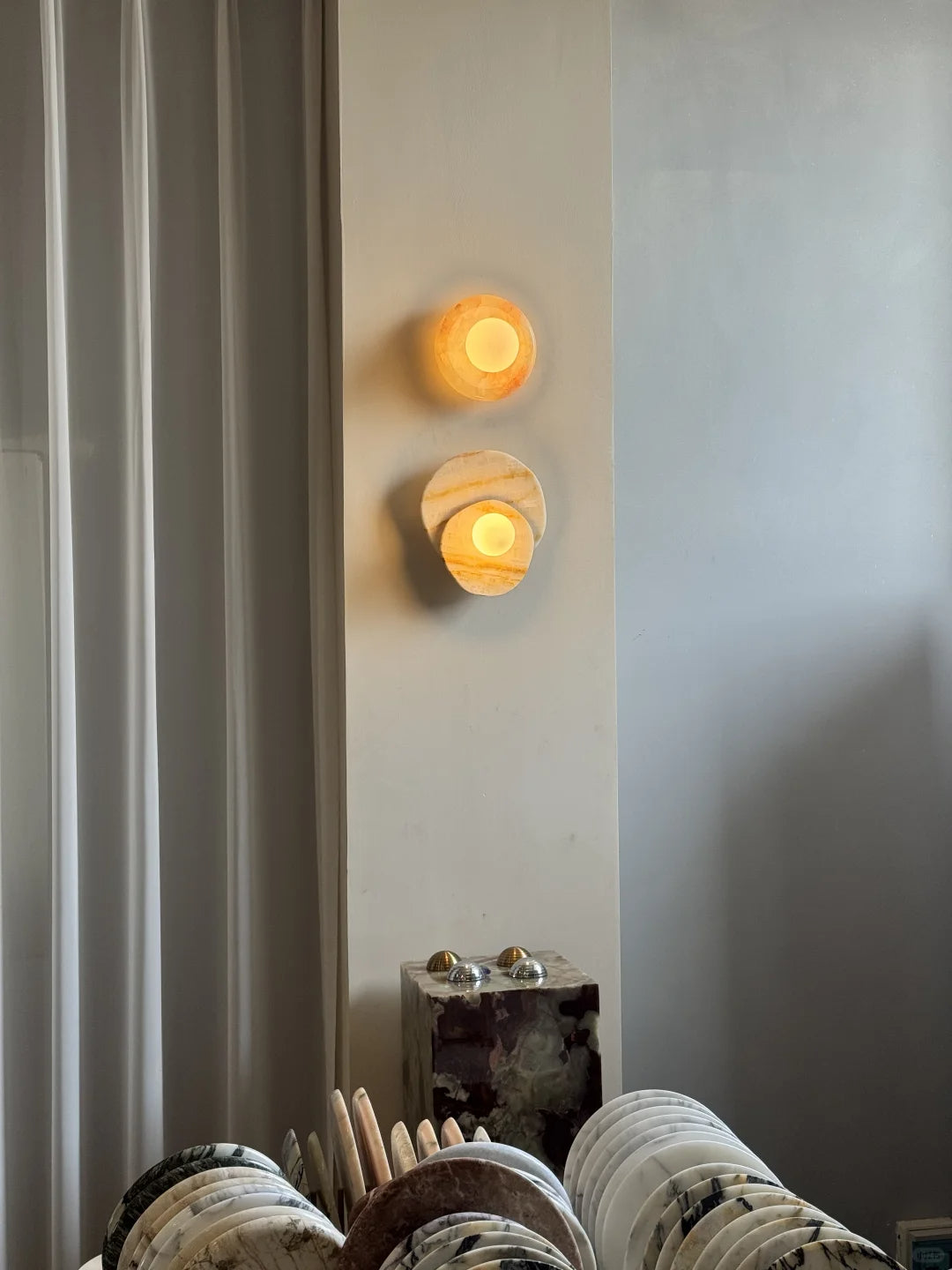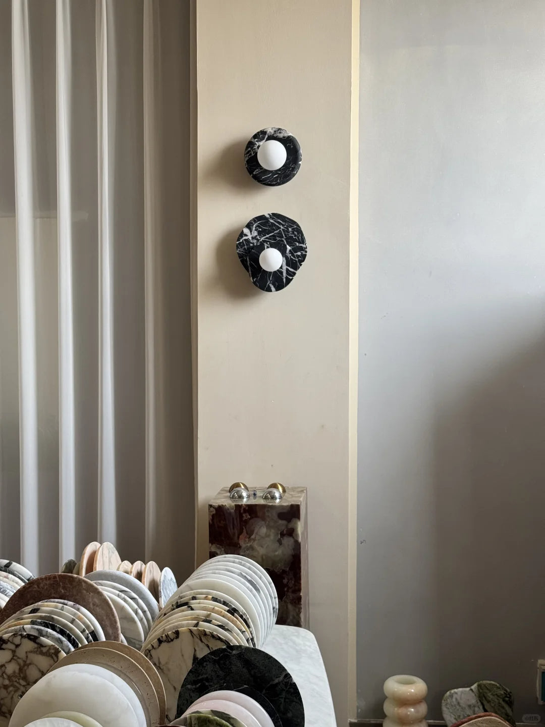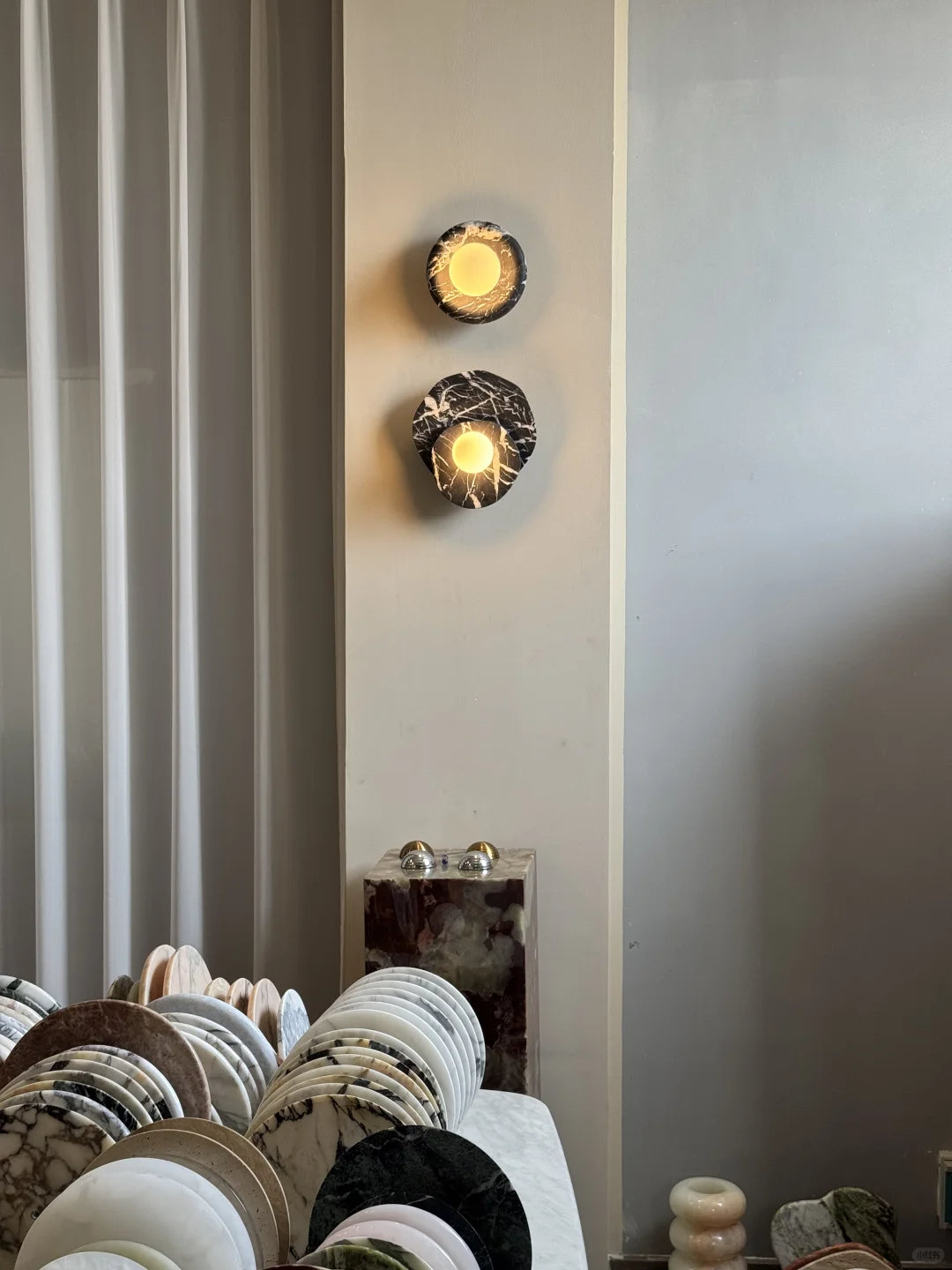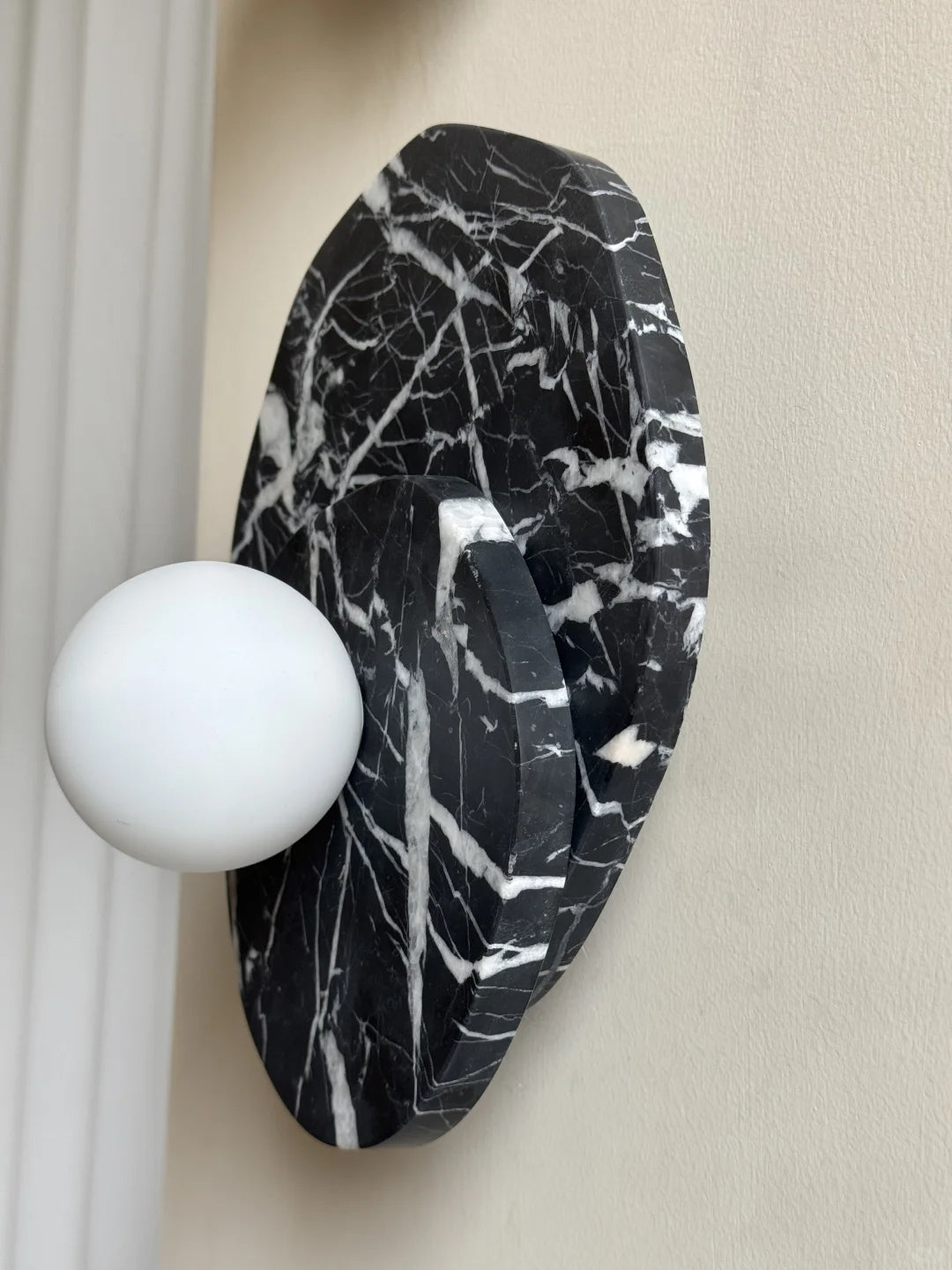 - The natural veining and unique character of the marble base add an element of organic elegance, making each piece truly one-of-a-kind. More than just a light fixture, the Astr Wall Sconce Collection hangs gracefully on your wall, adding a touch of sophisticated artistry to any room.