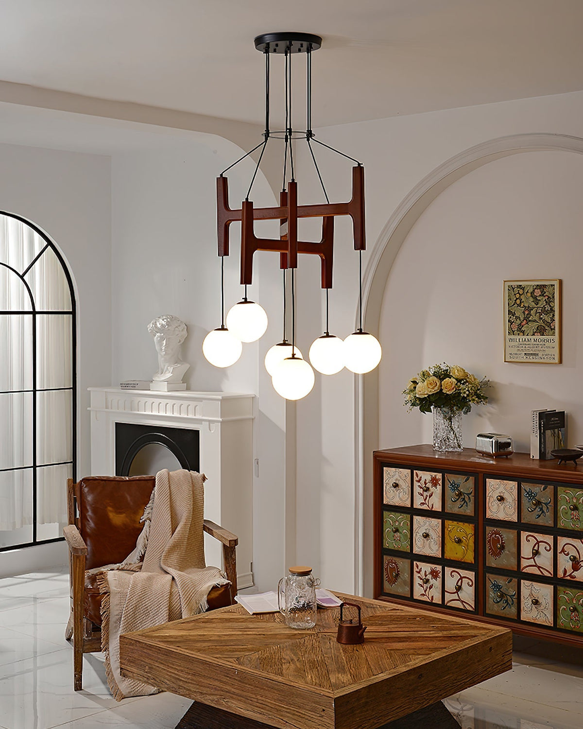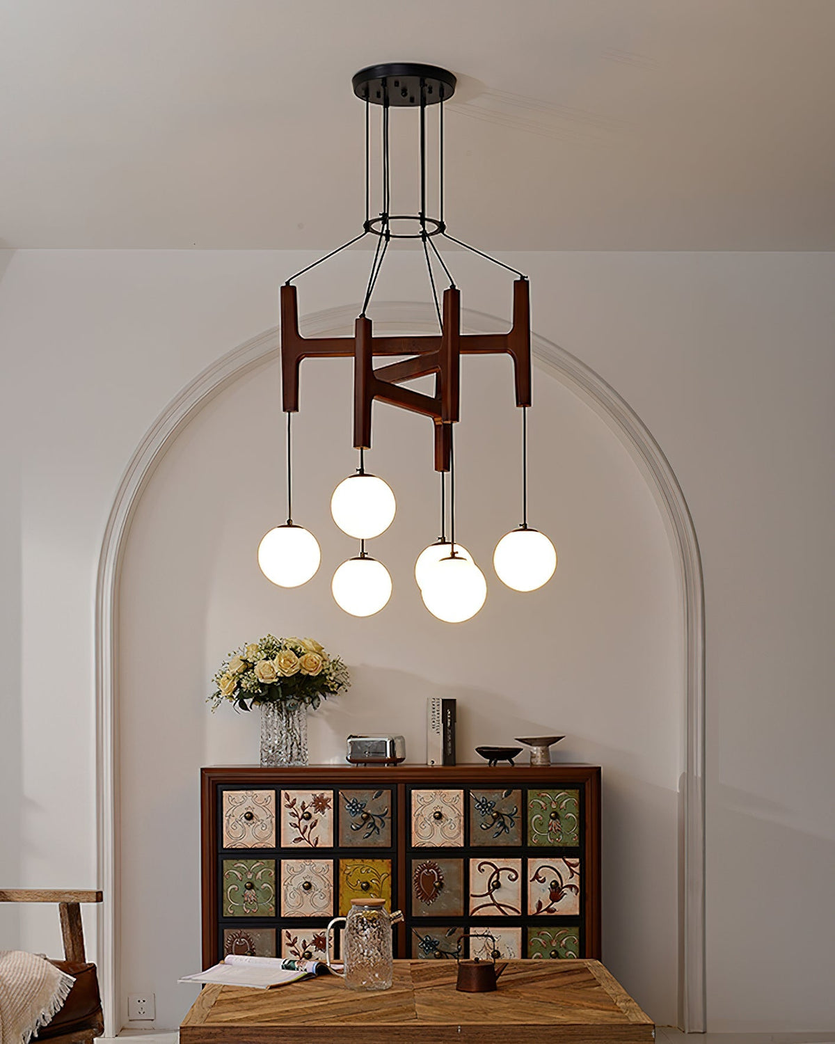 - What sets the Astra Suspension Lamp apart is its unique modular design. As the number of lamp heads increases to four or six, the I-beam wood lamp bodies are stacked vertically, allowing for a larger fixture without expanding the overall footprint. This ingenious design makes the Keitel Chandelier ideal for both small and large spaces.
