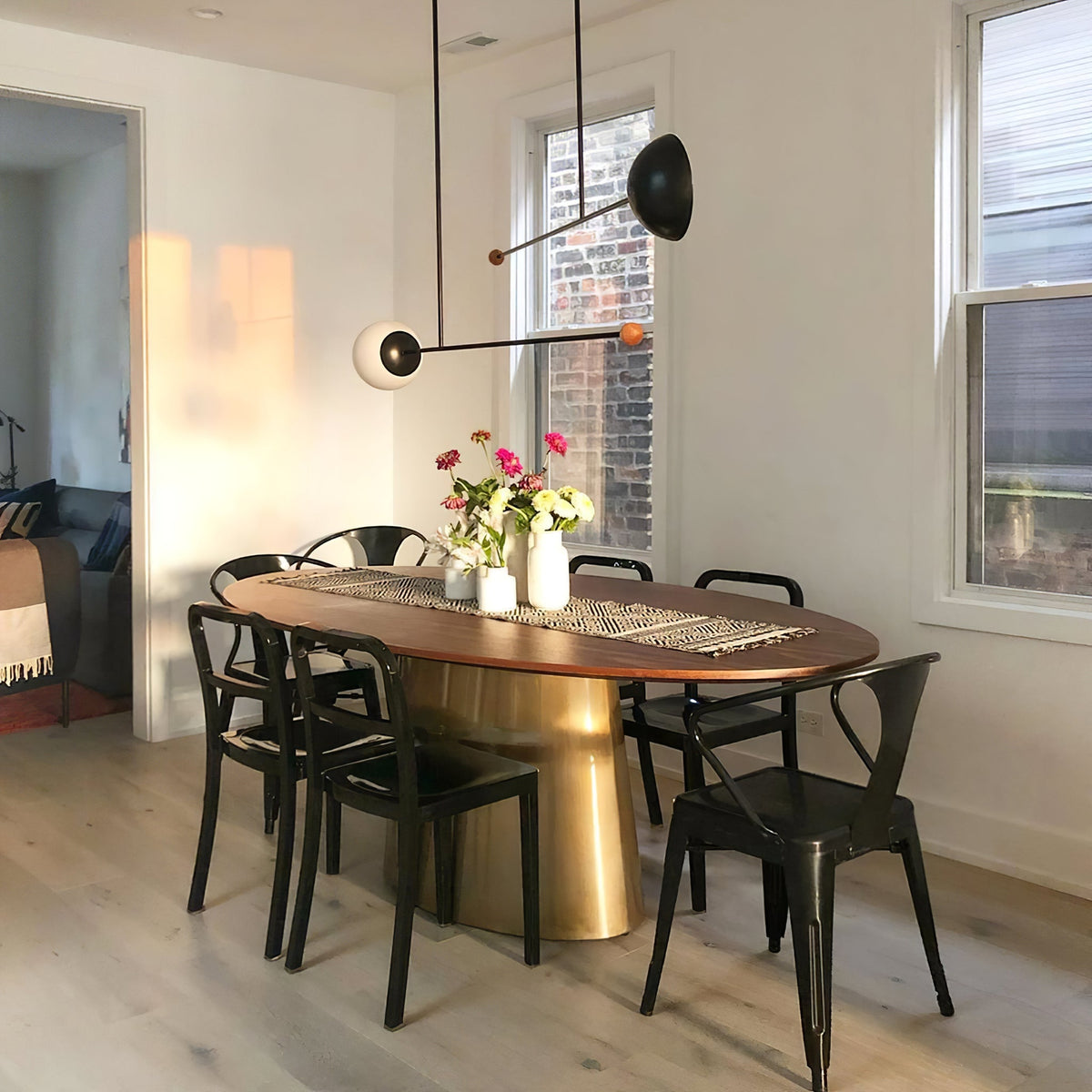 - Crafted from powder-coated iron with warm oak accents, this fixture offers unparalleled flexibility. Each arm pivots 360 degrees, and the domes rotate 180 degrees, allowing you to create unique and ever-changing light displays.