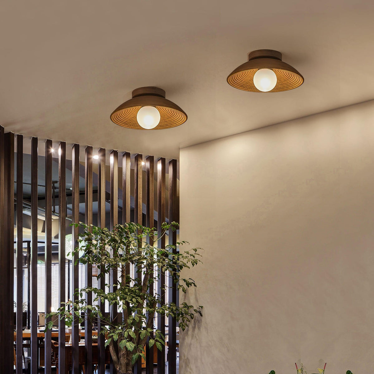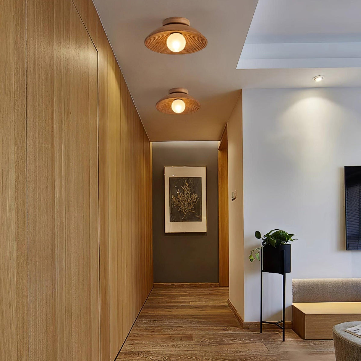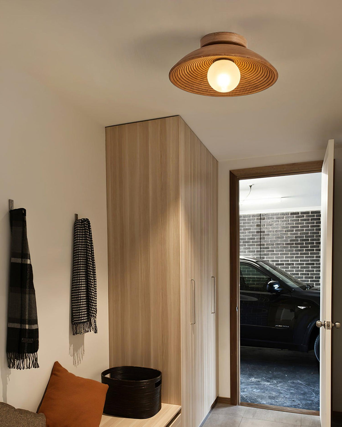 - The Attwood Flush Mount Lighting effortlessly enhances the ambiance of any space—be it your hallway, bedroom, or balcony. Its minimalist silhouette and warm wood tones bring a touch of nature indoors, creating a welcoming atmosphere in your home.