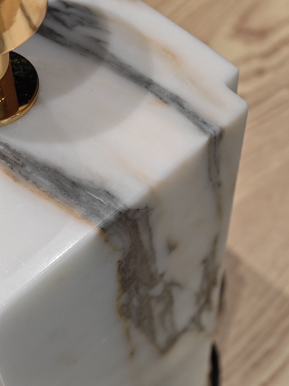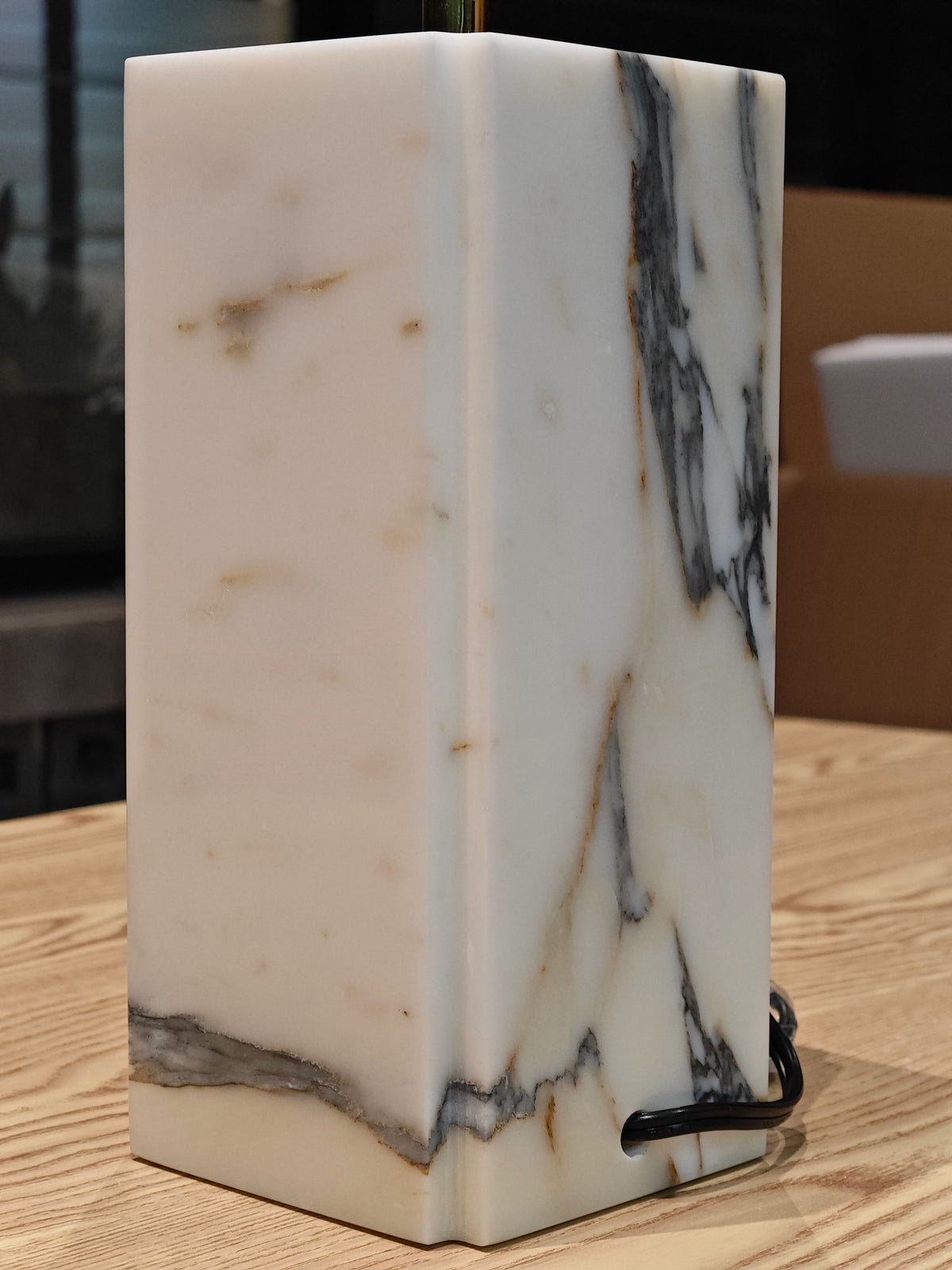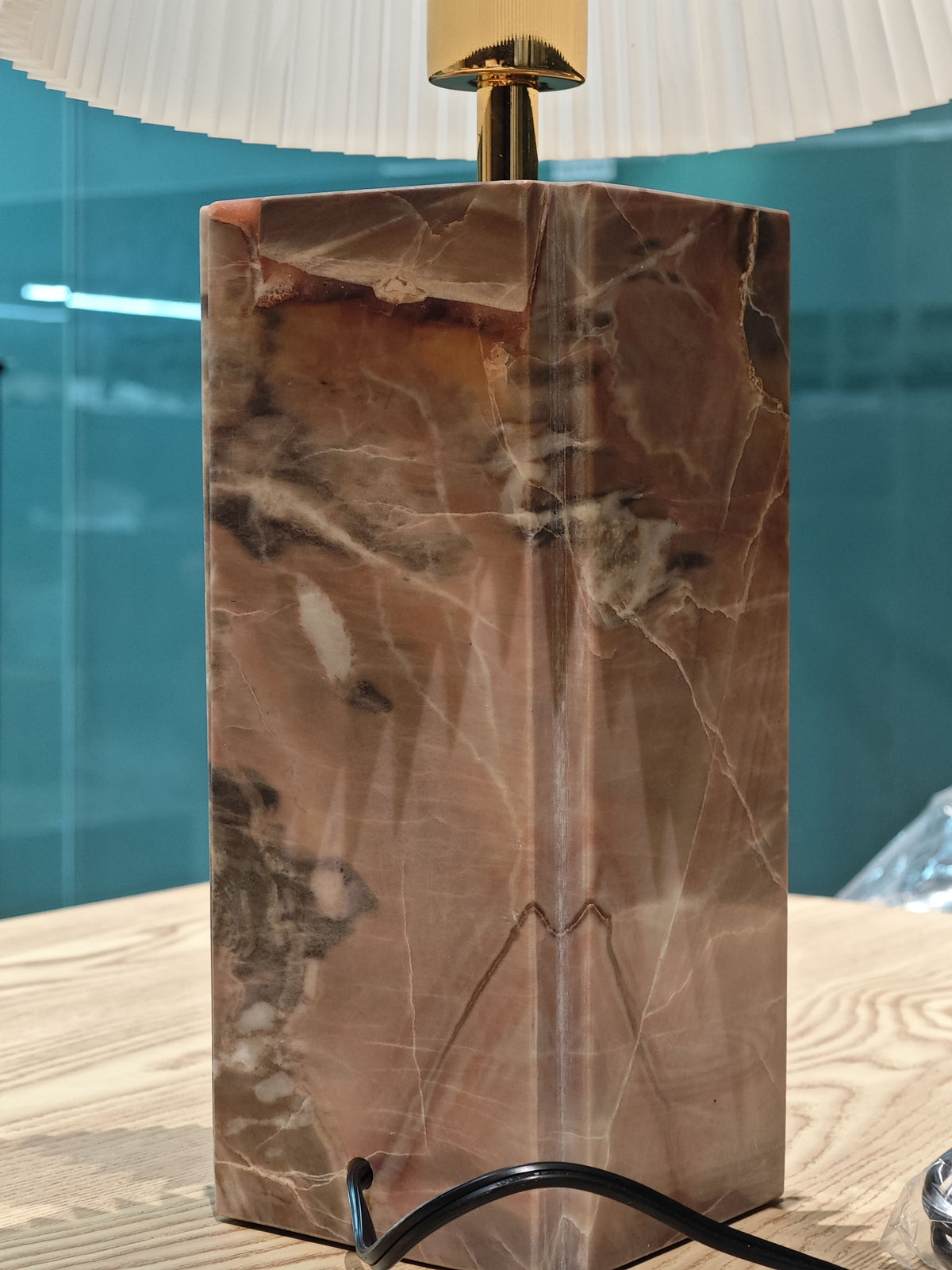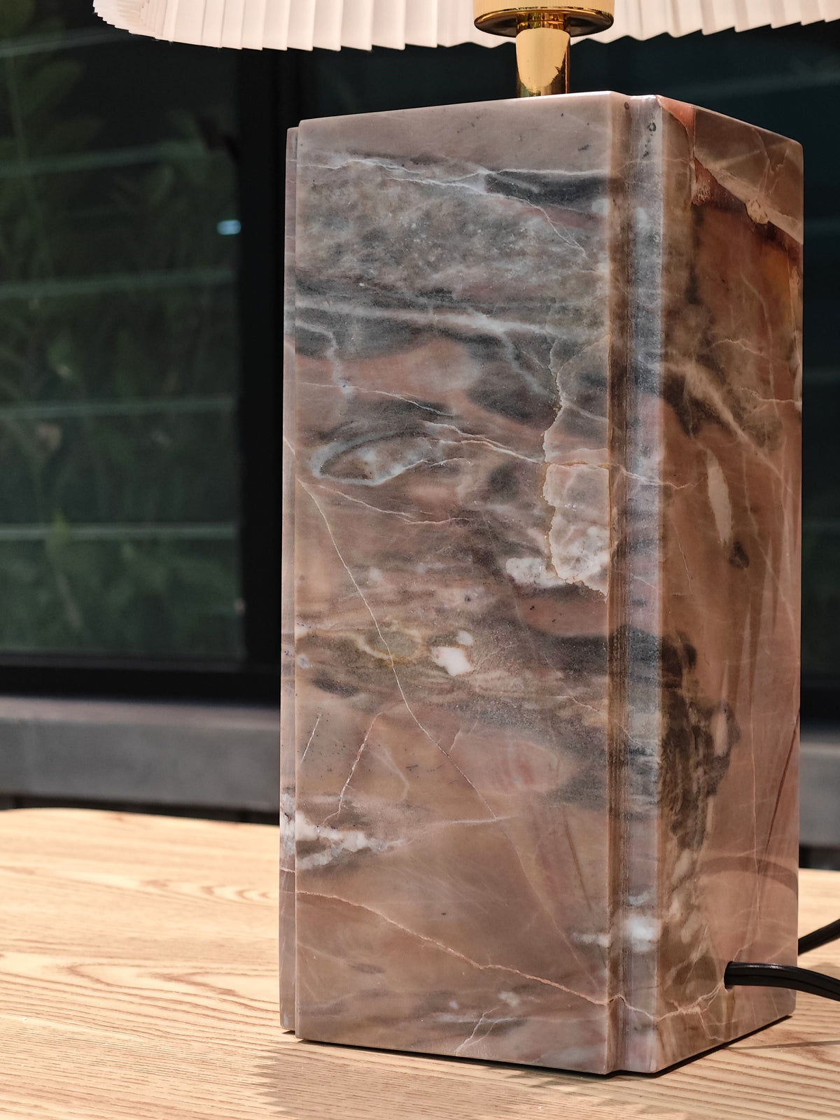 - Striking in its simplicity yet bold in its artistry, the Bianca Marble Table Lamp is a celebration of luxury, craftsmanship, and natural beauty. Handcrafted from premium Italian Arabescato Corchia marble with striking purple and white veining or Croatian red marble sourced from Turkey, each lamp showcases neatly carved edges and a unique, dynamic pattern—ensuring no two pieces are alike.
