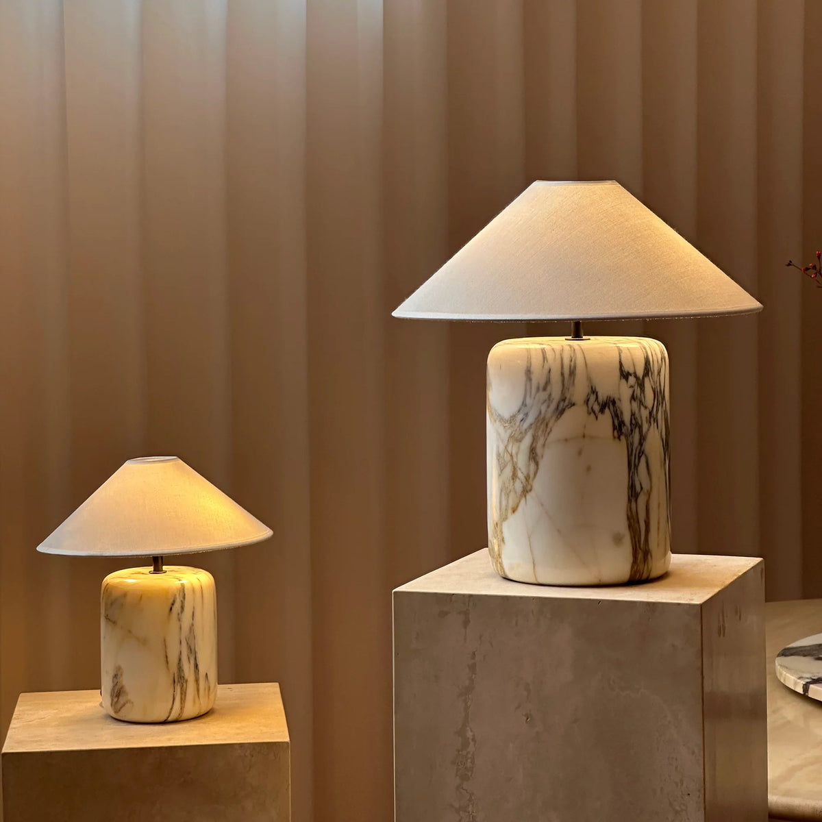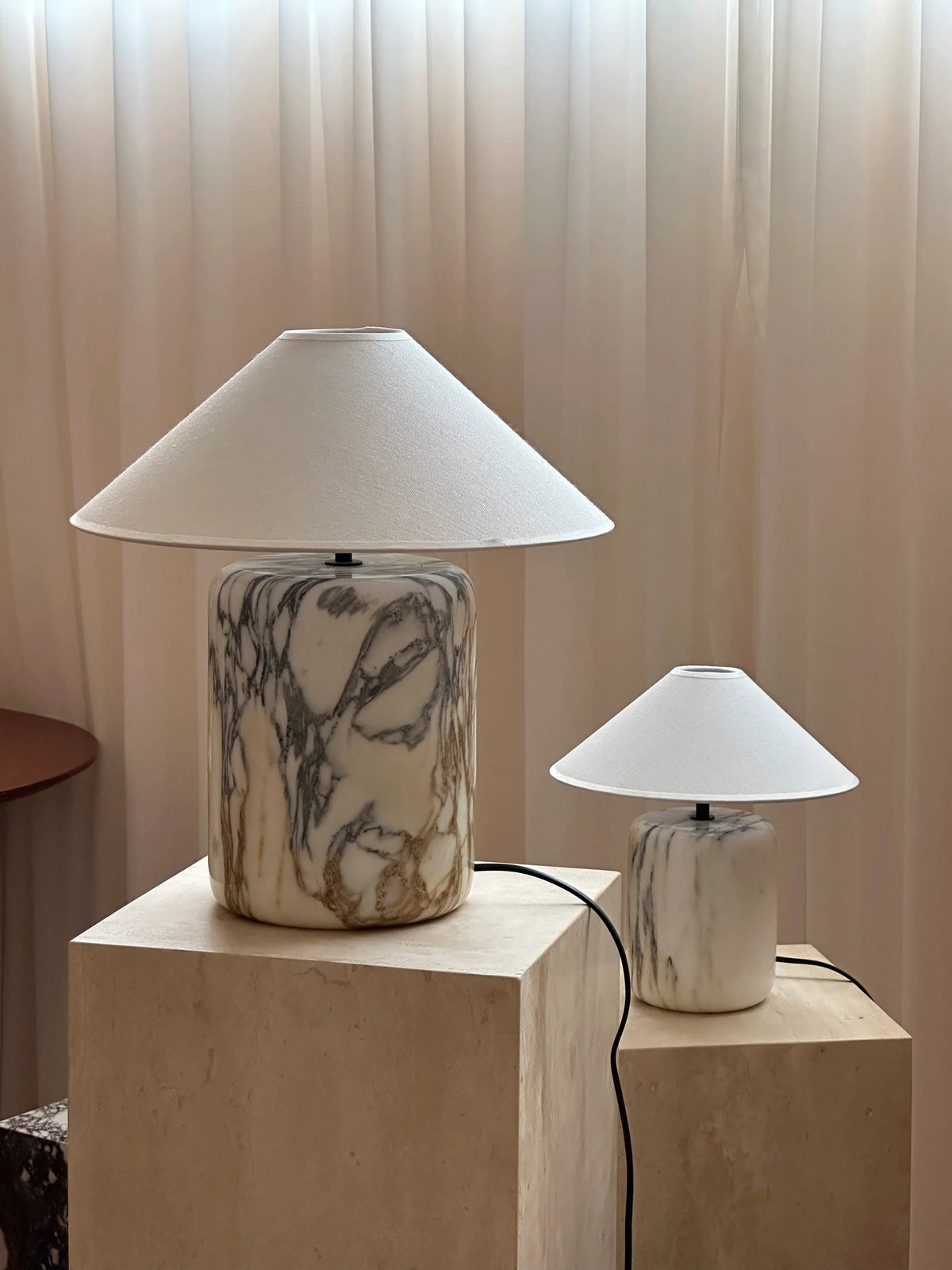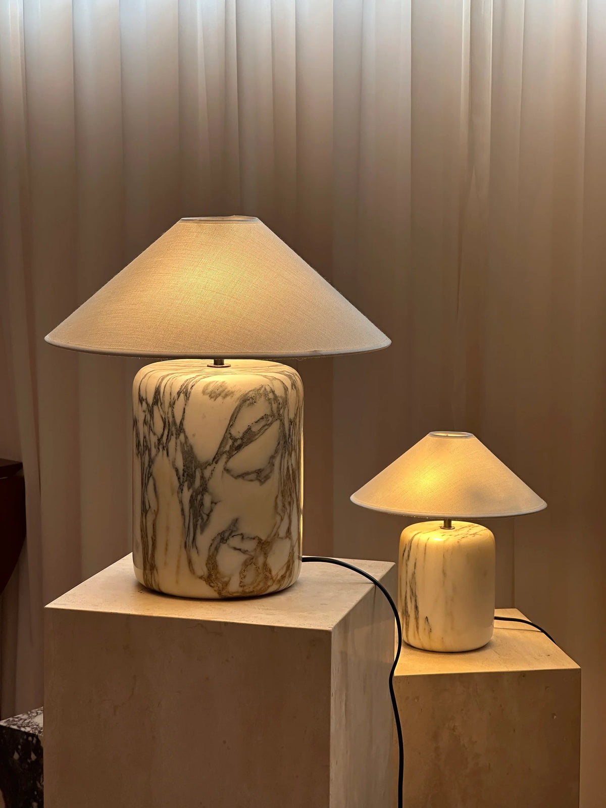 - Crafted from exquisite Italian Calacatta Oro marble, this table lamp showcases striking gray-black textures elegantly interlaced with luxurious golden veins. Each piece carries the timeless beauty of nature, encapsulating millions of years of Earth’s artistry within your space.