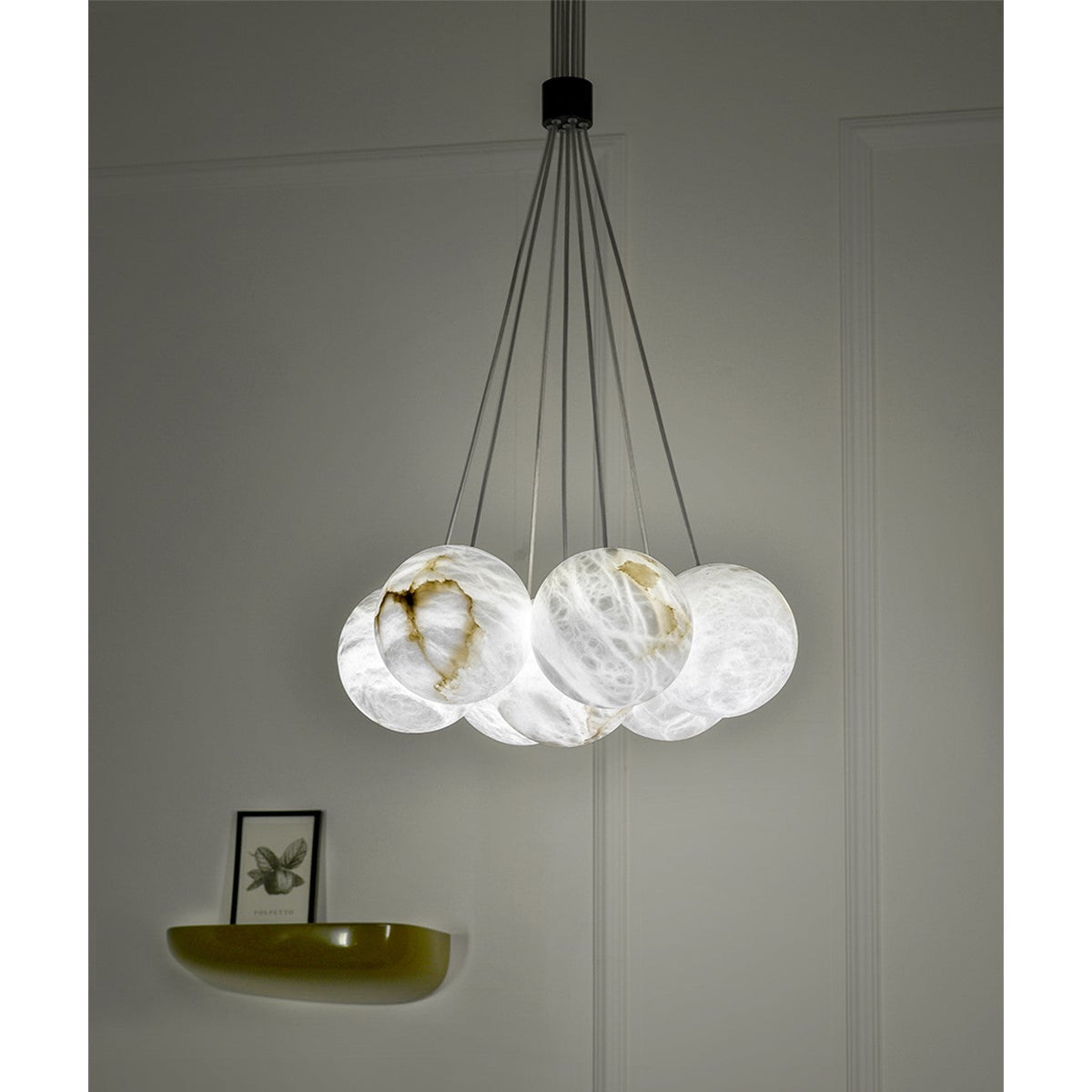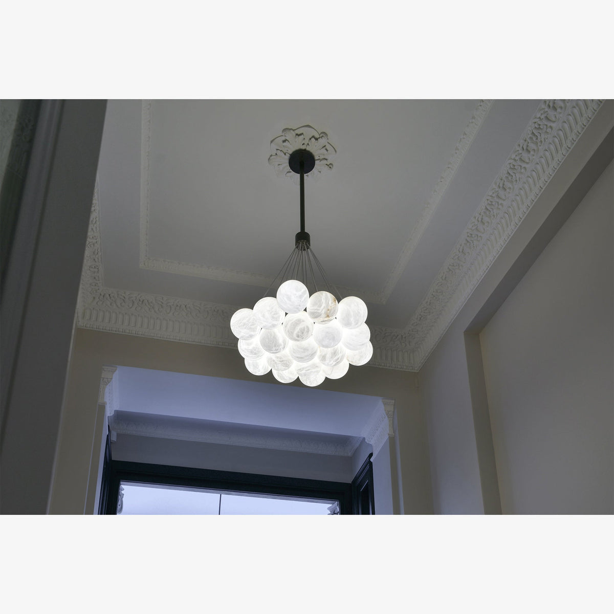 - The Bolky Up Chandelier is a striking display of sculptural form. Strong, satisfied bunches of spheres can be grouped into clusters of seven, thirteen or nineteen, creating a bold and dynamic presence in any space. Unlike its twin, the Bolky, the Bolky Up offers the flexibility of adjustable height, allowing you to customize the perfect fit for your ceiling and desired ambiance.