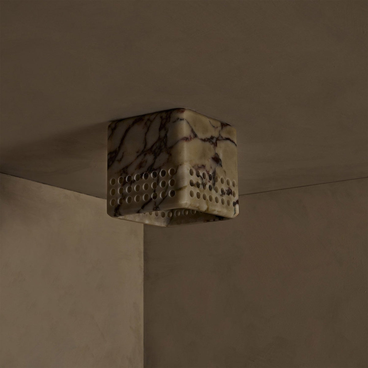 - Embrace the power of raw materiality with the Bond Flush Mount Light. Meticulously carved from a single, solid block of natural stone, its minimalist square form makes a profound statement. A precisely engineered grid of perforations across the shade creates a stunning play of light and shadow, allowing illumination to escape softly down and outward. The Bond is more than a light fixture; it's a piece of architectural sculpture that grounds any space with timeless presence.