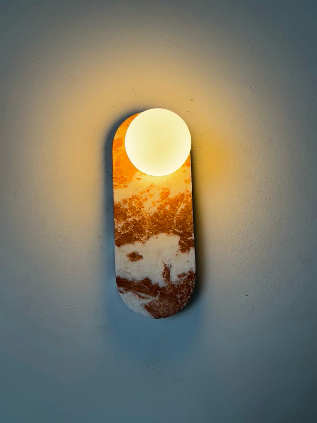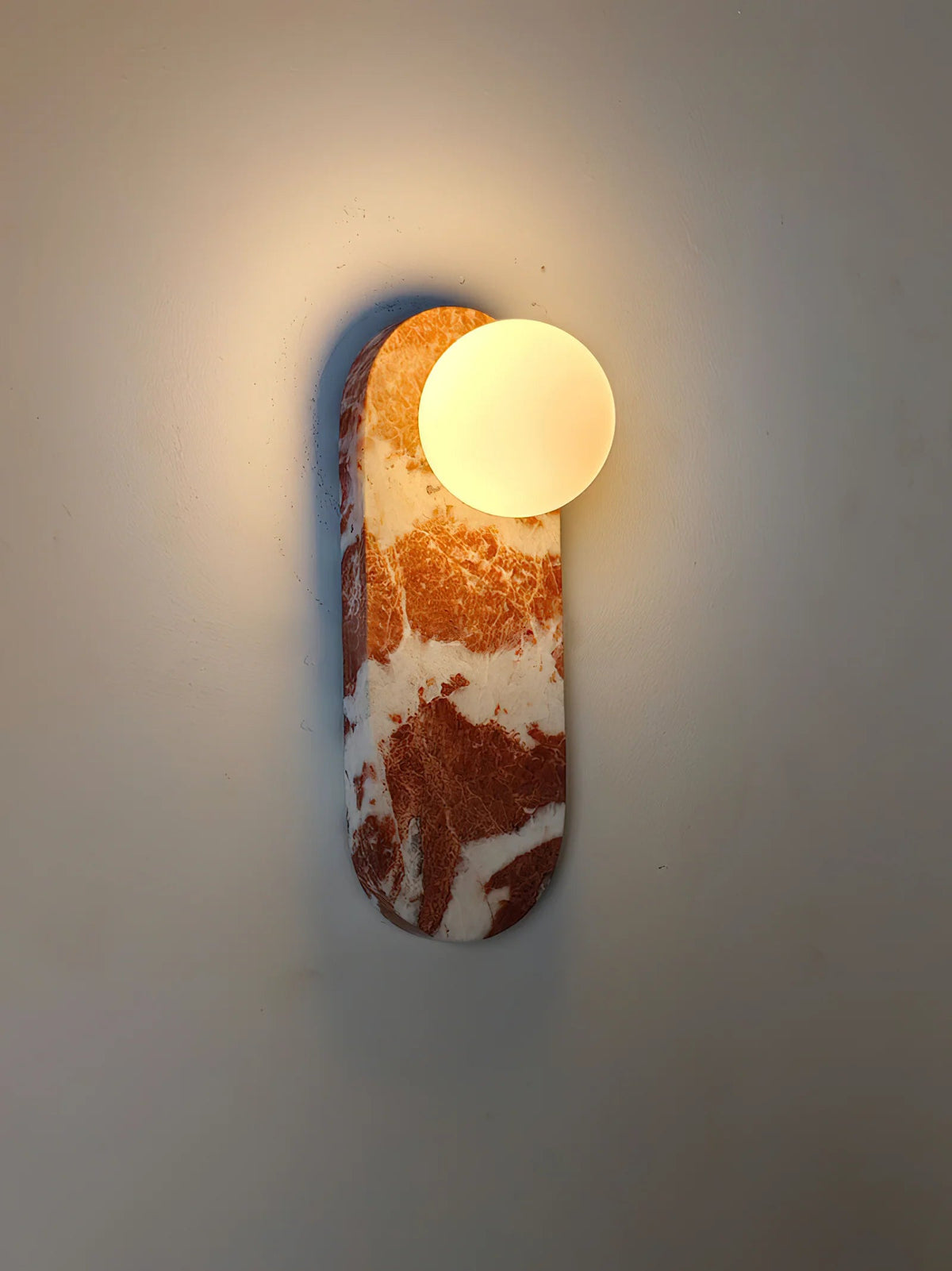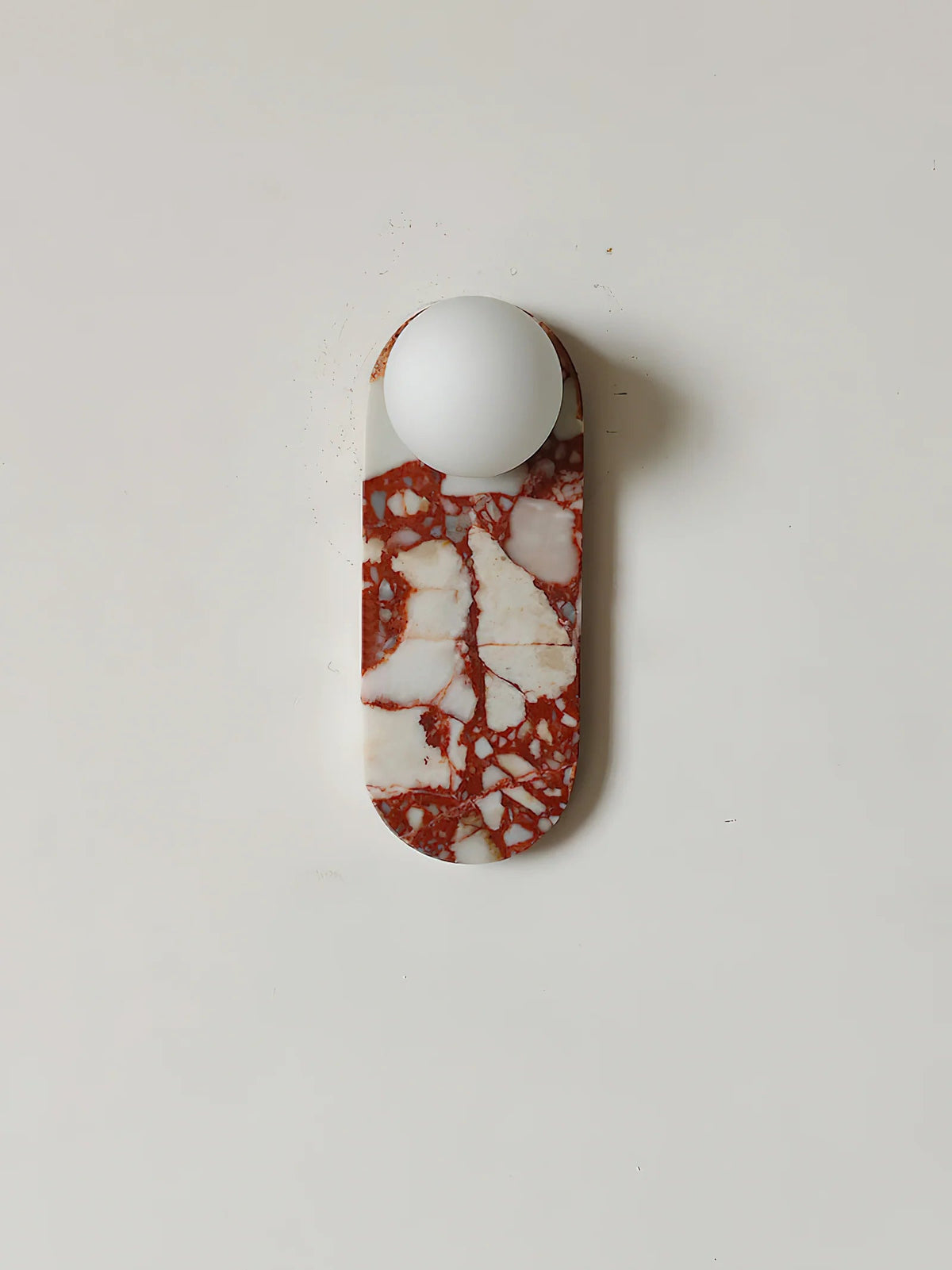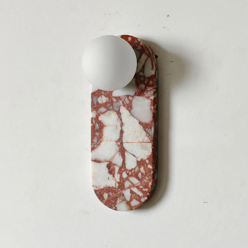 - Elevate your space with the timeless elegance of our Breccia Rose Marble Sconce Elongated. Crafted from exquisite Breccia Rosa marble, this piece showcases a stunning pink base adorned with delicate veins of beige, salmon, and soft grey tones. Sourced from the renowned quarries of Italy, Breccia Rosa is celebrated for its unique blend of pastel hues, creating a luxurious and sophisticated aesthetic.