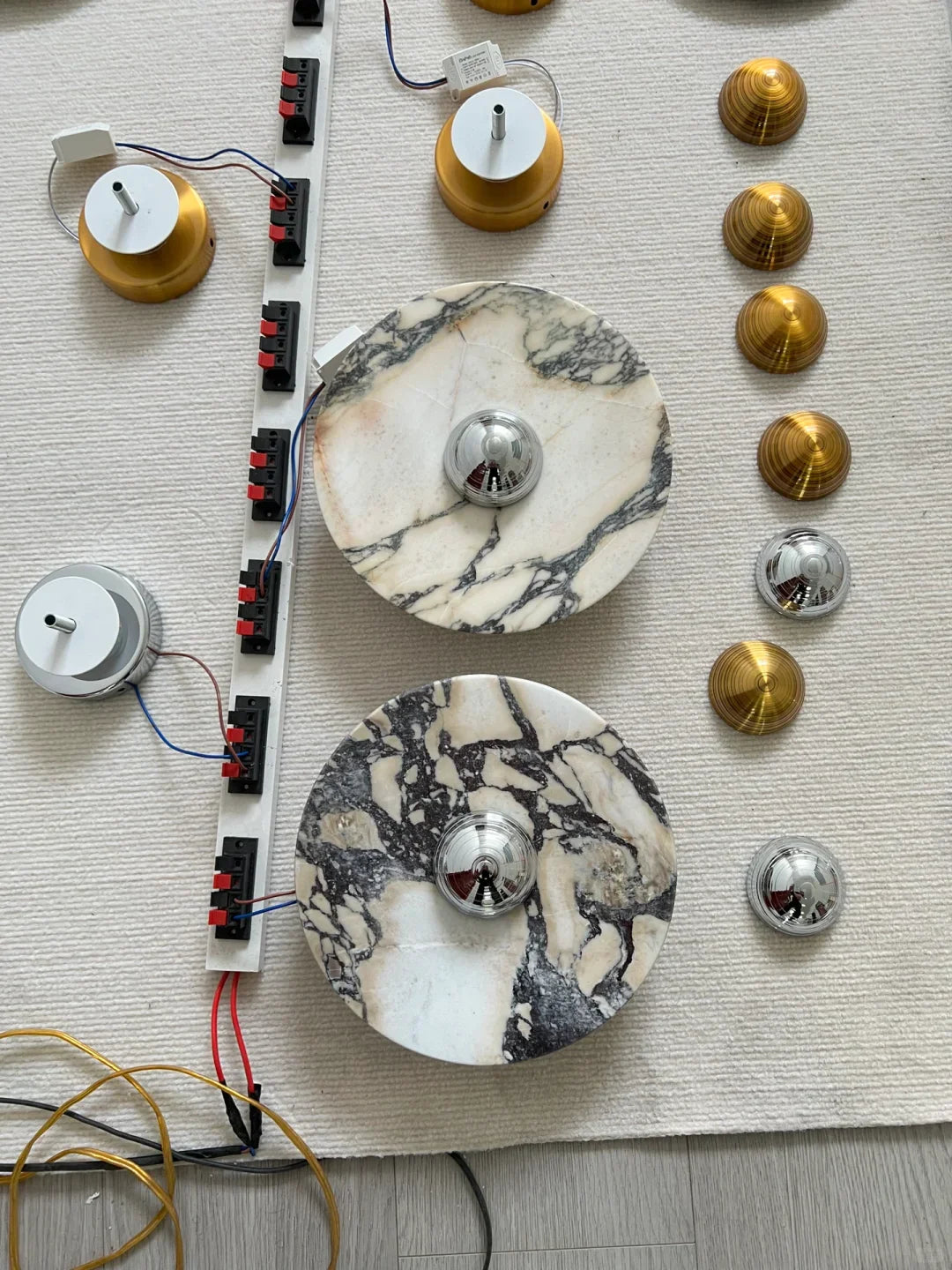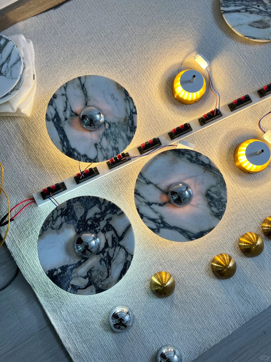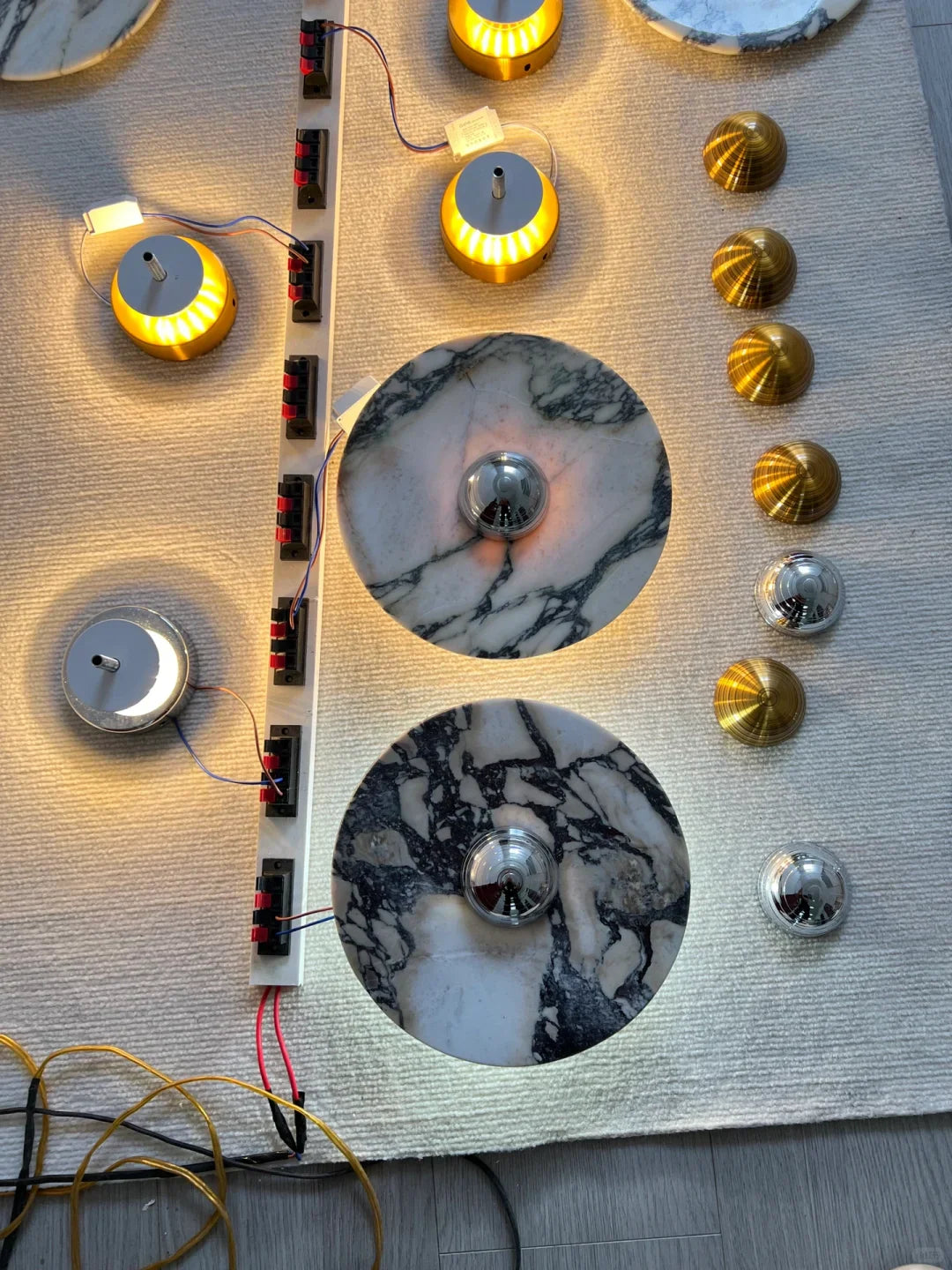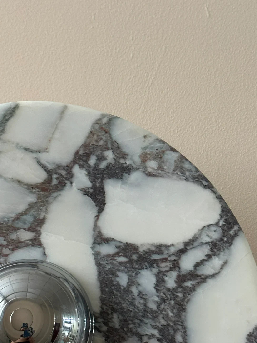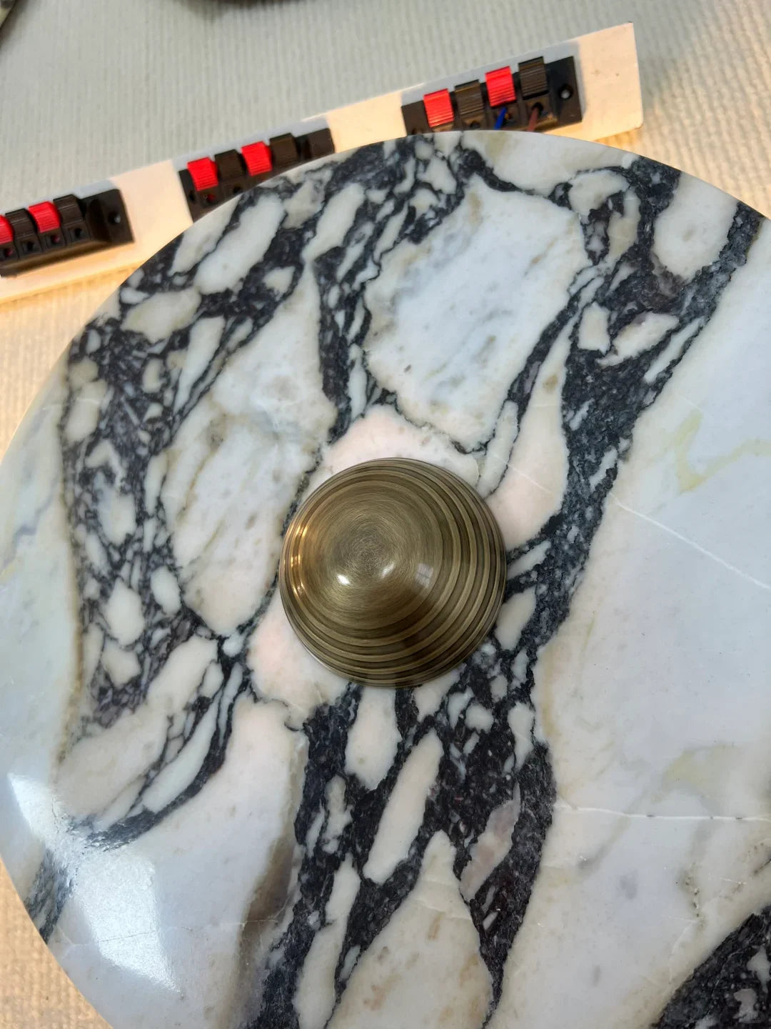 - Illuminate your space with the exquisite Calacatta Oro Round Sconce, a stunning fusion of luxury and craftsmanship. Each sconce features a diffuser crafted from premium Calacatta Oro marble, sourced from one of Italy’s oldest and most revered quarries. The marble showcases a pristine white background adorned with rich golden-beige veining, creating a striking natural pattern that adds sophistication to any room.