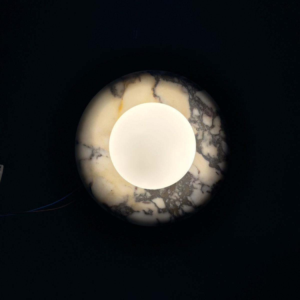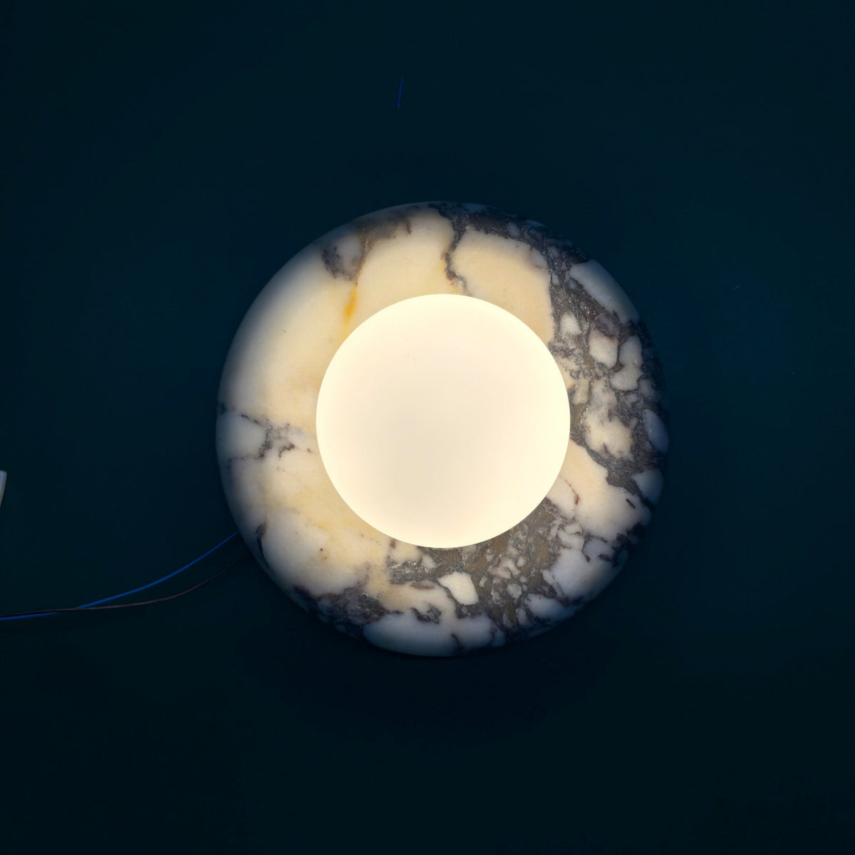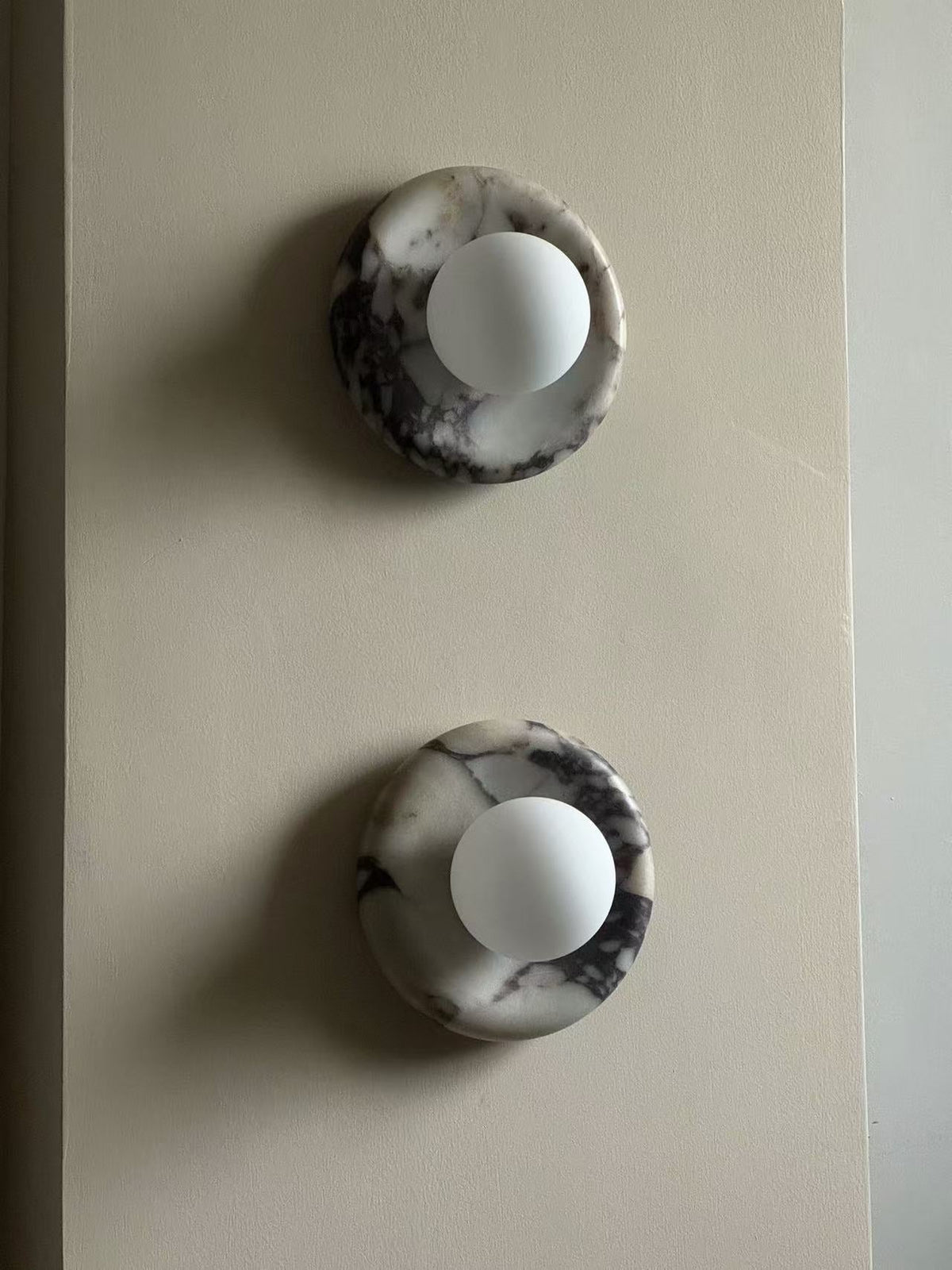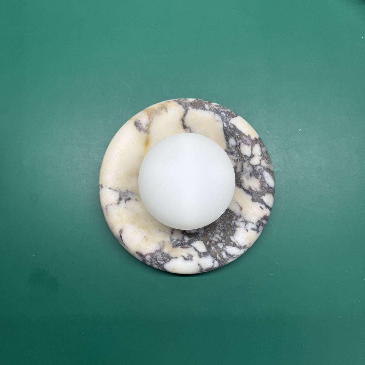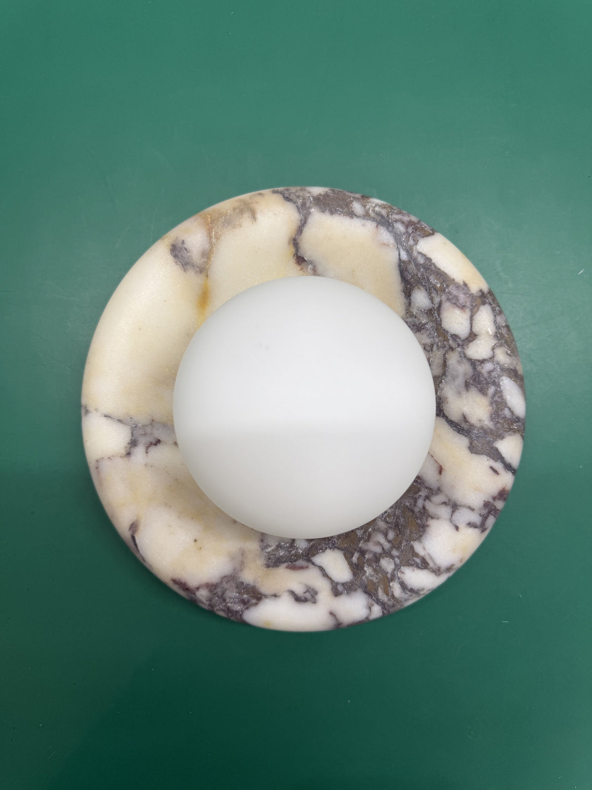 - Elevate your space with the timeless elegance of the Calacatta Viola Marble Bowl Sconce. Crafted from one of Italy’s most coveted marbles, this exquisite piece showcases the stunning beauty of Calacatta Viola, a rare and luxurious variety quarried in the historic Carrara region.