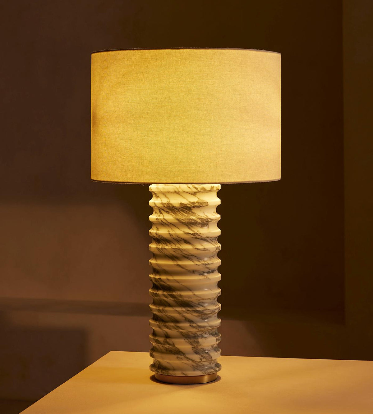 - Carve out a space for timeless elegance with the Casper Table Lamp. Meticulously sculpted from a single block of premium Arabescato marble, this lamp is more than a light source—it is a functional work of art, echoing the grandeur and history of Roman interiors.