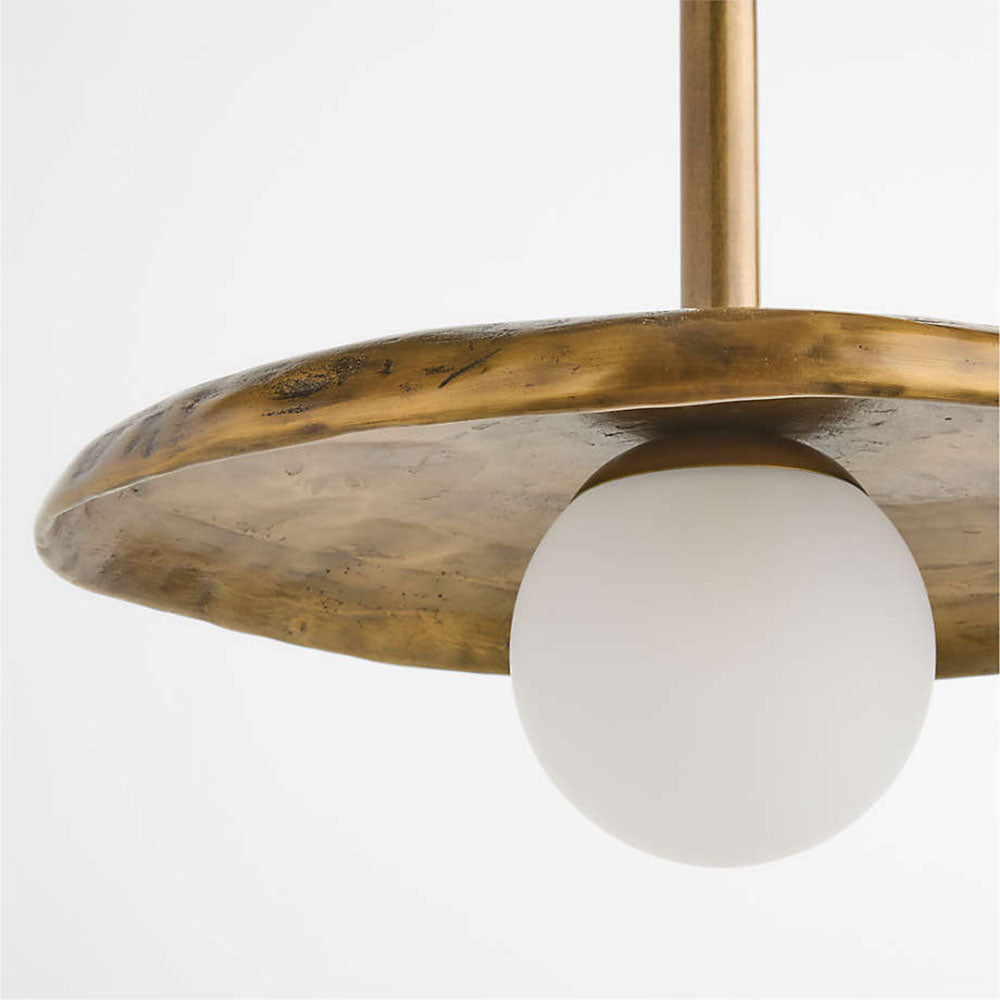 - Inspired by the serene beauty of a water garden, the Chin Pendant Lamp captures a moment of tranquil grace. This stunning fixture features a hand-sculpted solid brass shade that cradles a milky white glass globe, perfectly evoking the image of a floating lily pad supporting a glowing, luminous flower. It’s a piece of functional art that brings a soft, organic sophistication to any space.