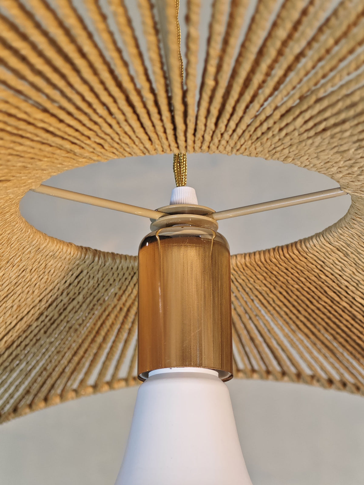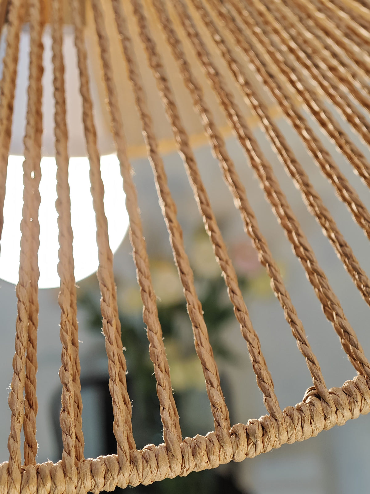 - The circular straw lampshade provides a natural and airy aesthetic, allowing light to filter through gently and create a warm, inviting glow in any room. Paired with a beautifully vintage cord, the Cleme Pendant adds a touch of nostalgic charm that enhances its overall boho vibe, making it a perfect fit for coastal, farmhouse, or eclectic decor.