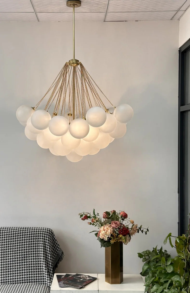 - At the heart of this design is a thoughtfully composed cluster of spherical lamps. Each "cloud" is not a single, static shape, but a dynamic arrangement of orbs, suspended at varying heights by nearly invisible fine chains. This creates a multi-dimensional, organic form that invites the eye to wander. From every angle—whether viewed from across the room or directly beneath its soft glow—the composition shifts, offering a unique and living sculpture. The design is intentionally simple in its components yet complex in its overall effect, ensuring it becomes the undeniable visual focal point of your dining area, living room, bedroom, or reading nook.
