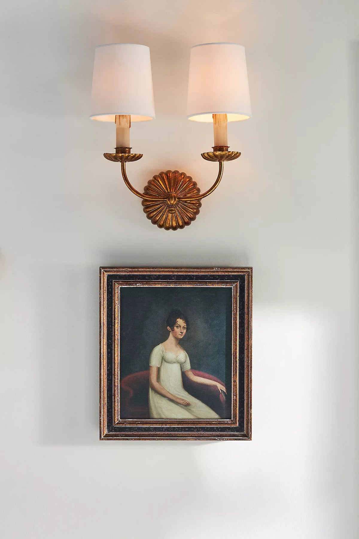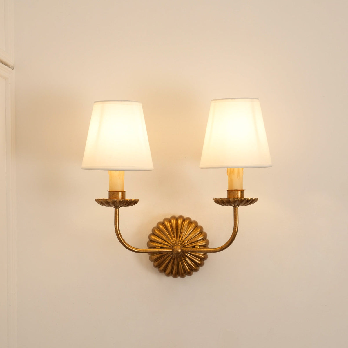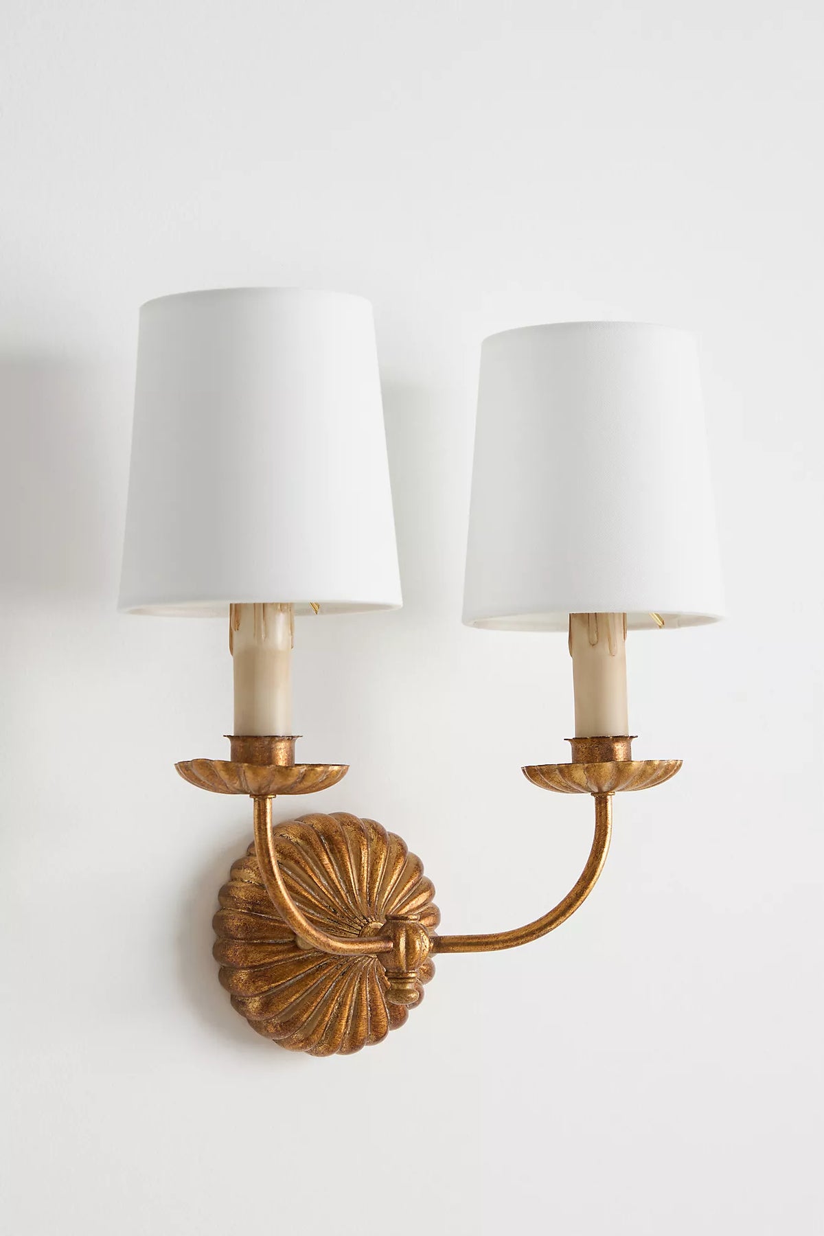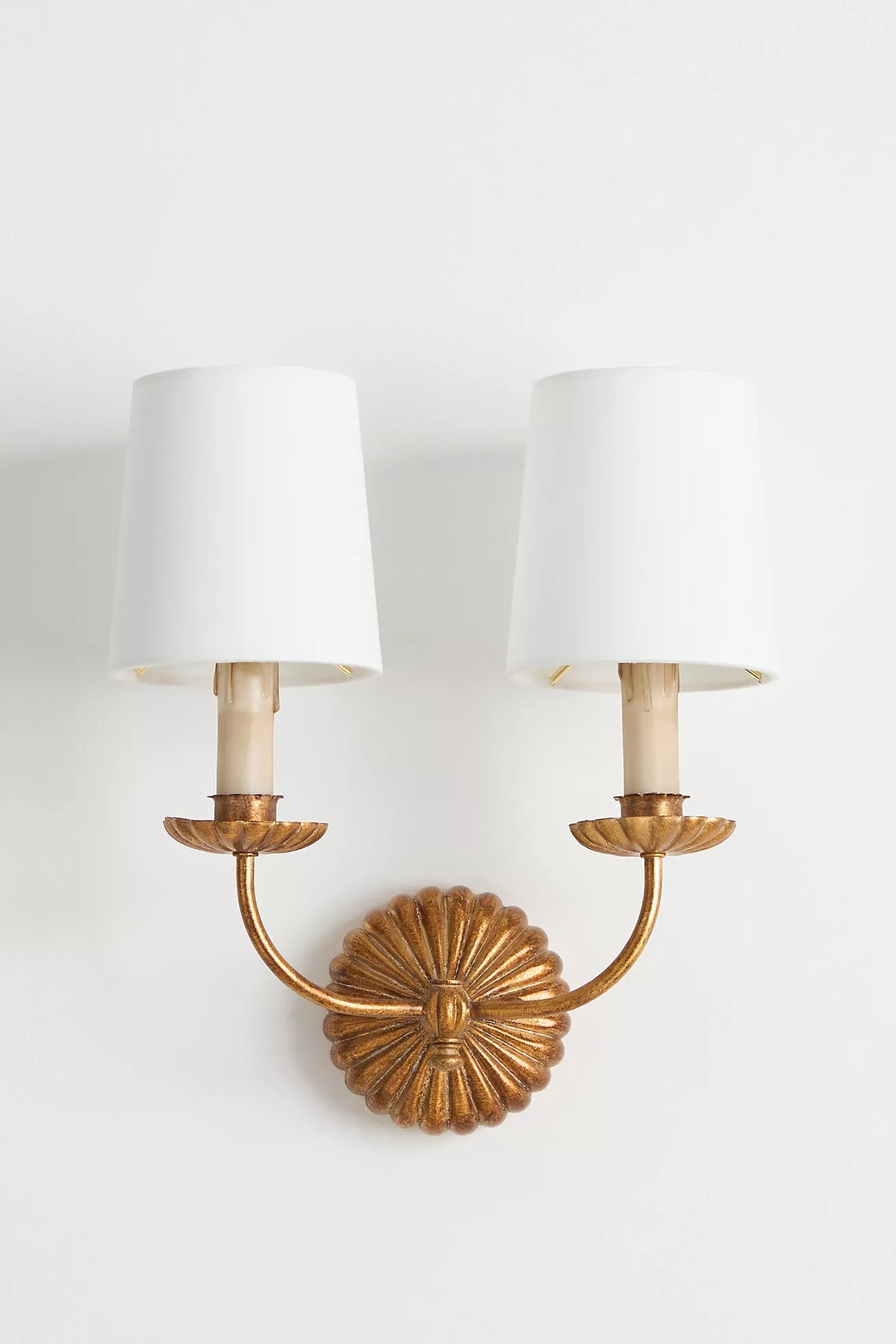 - Add a touch of antique elegance to your home with the Clove Wall Sconce Double. This pair of sconces features a sun-like backplate that mounts directly to the wall, showcasing bobeches and a long stem. A candle on top holds the shade and the single bulb within, casting a warm, ambient glow that diffuses through the material.