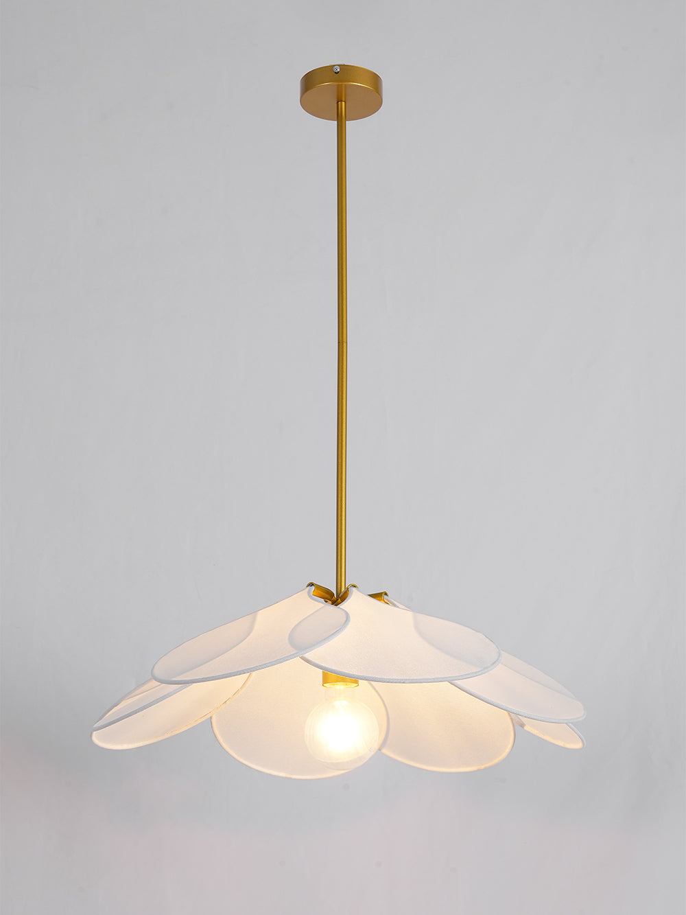 - Elevate your space with the Dahlia Pendant Lighting, an exquisite lighting fixture that combines contemporary Nordic aesthetics with a touch of fanciful charm. This stunning pendant light features multiple fabric fan shades, each meticulously crafted to create a delightful visual impact. Available in a variety of vibrant colors, the Dahlia Pendant invites you to express your personal style.