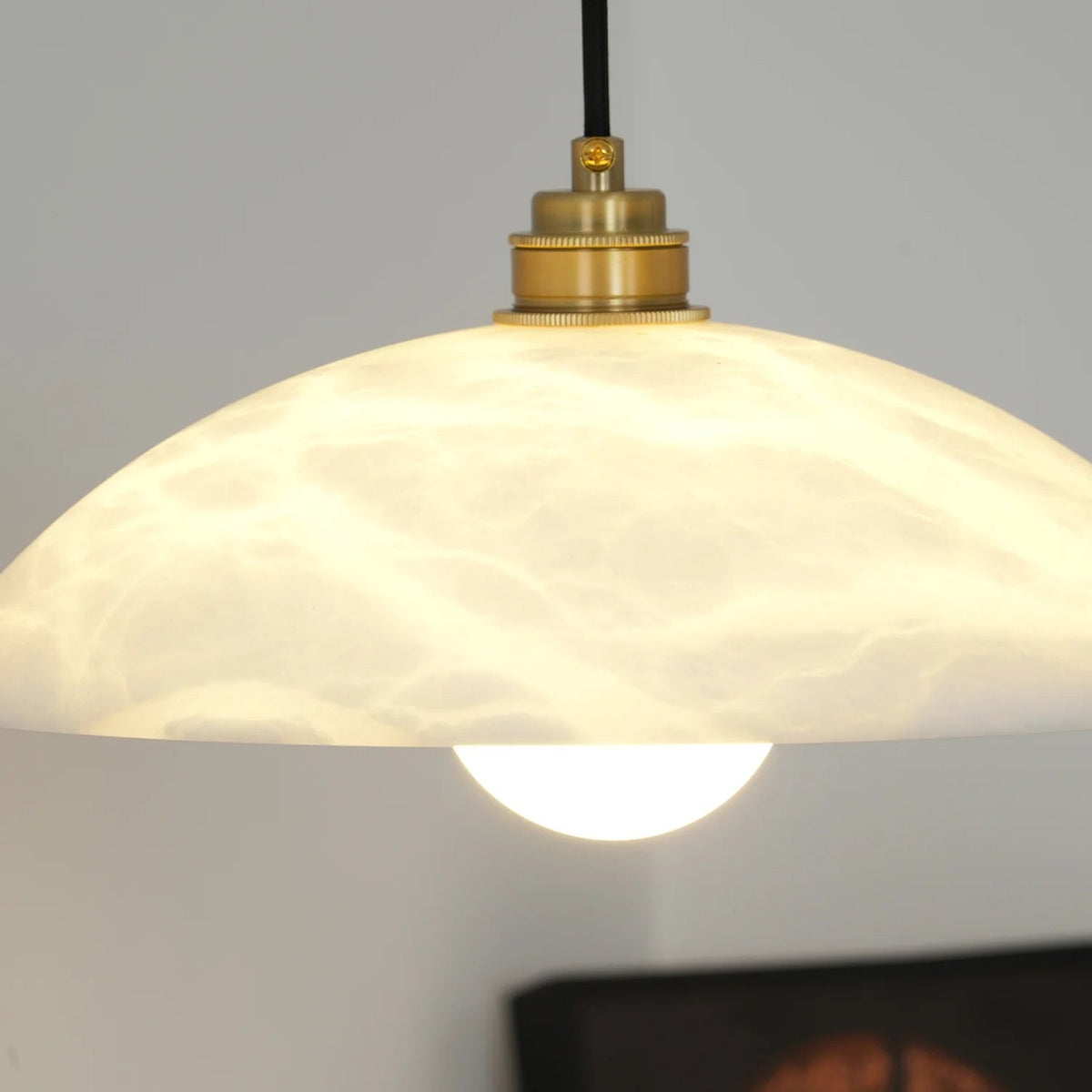- Crafted with a gracefully transitioning dome-shaped alabaster lampshade and exquisite brass hardware, Dome Pendant Light blends timeless sophistication with modern warmth. The natural alabaster diffuses light softly, creating a gentle, inviting glow perfect for dining rooms, entryways, or living spaces.