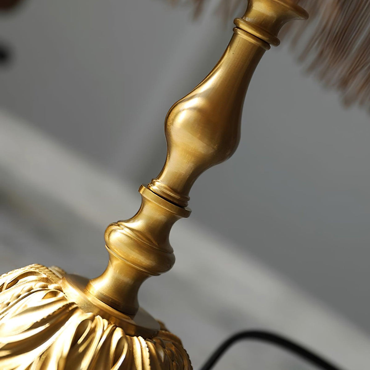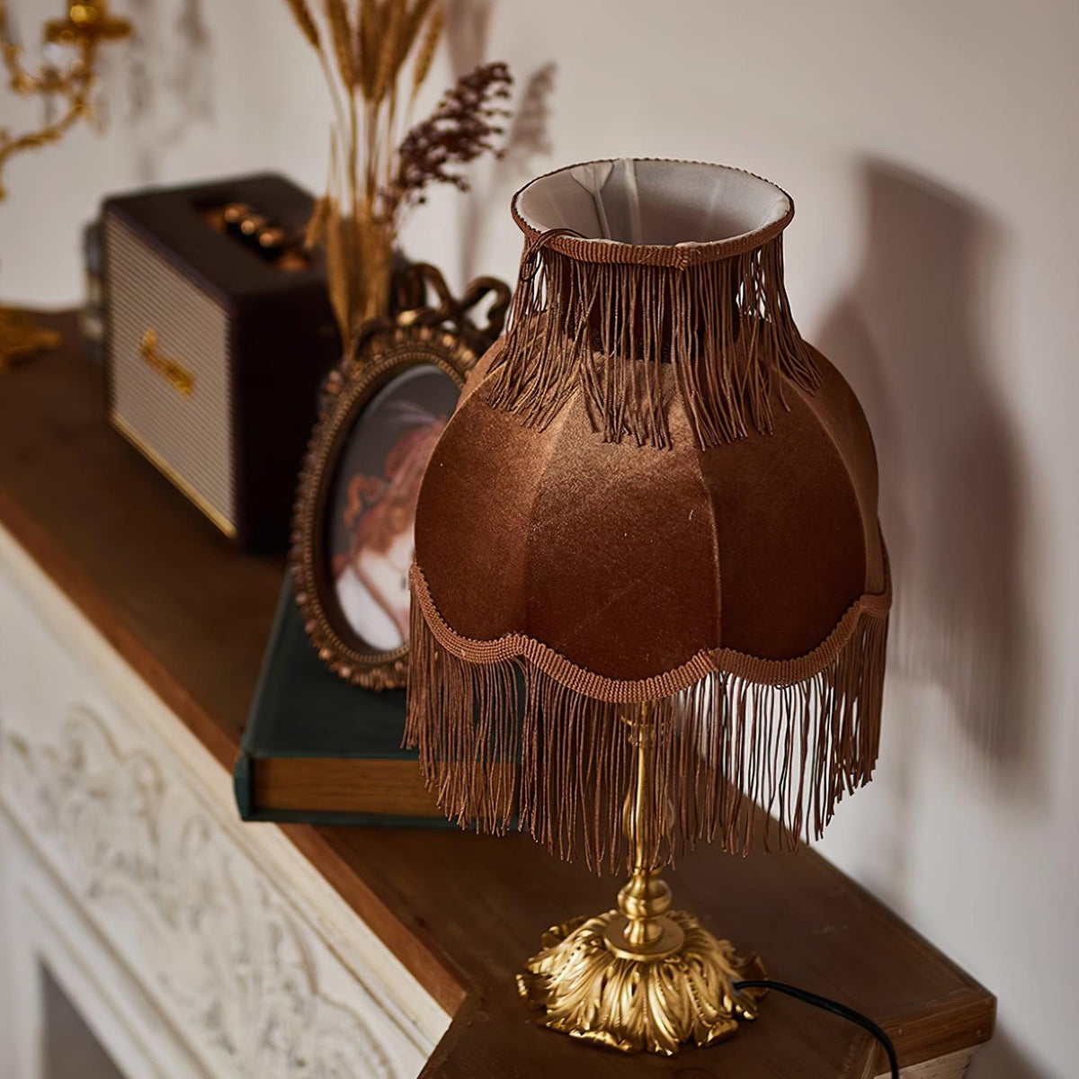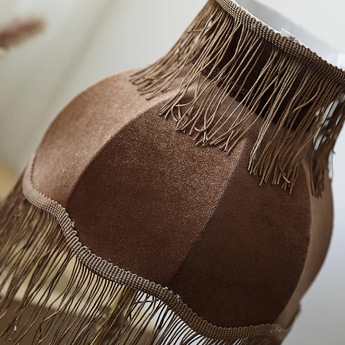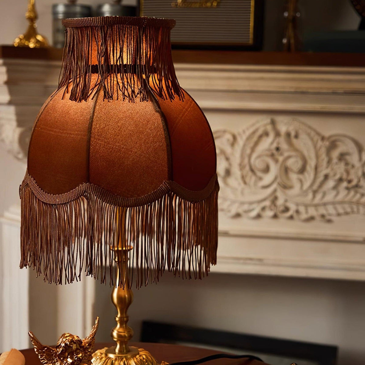 - Elevate your home decor with the stunning Donaway Table Lamp, a grand decoration that embodies luxury and sophistication. This lamp features a beautifully designed tassel lampshade, they cascade gracefully. And crafted with a premium brass base, the Donaway Table Lamp not only ensures durability but also radiates a warm, golden hue that complements its lavish design. The contrast between the rich texture of the tassel shade and the polished brass finish creates a striking visual that is sure to captivate and inspire admiration from your guests.