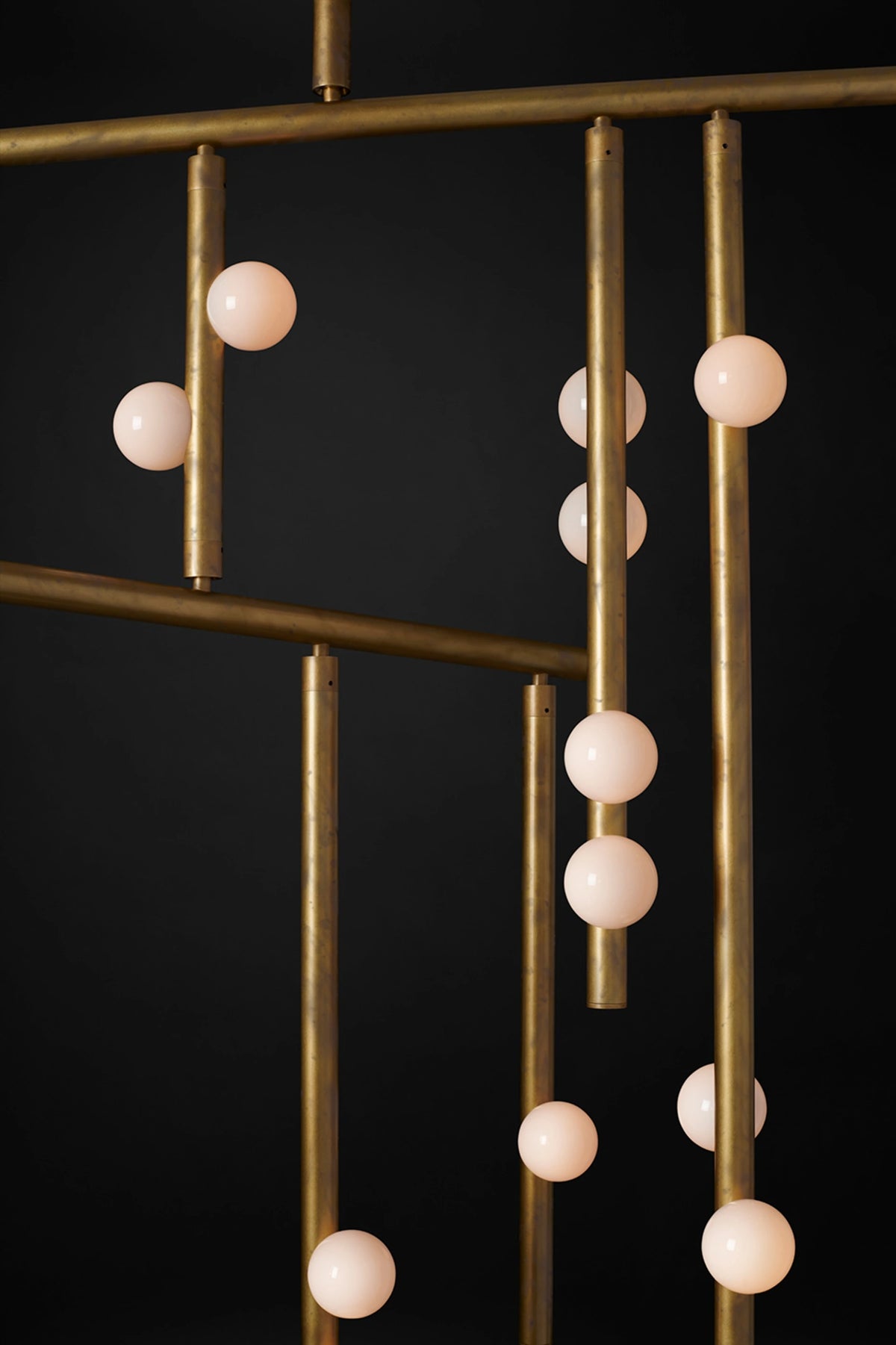 - Imagine a constellation of light, captured not in the sky, but within a framework of exquisite brass tubing. Each rod is a deliberate stroke in an abstract drawing, yet none are static. Our signature engineered joint invites the gentle, persistent force of gravity to become part of the design. With a subtle nudge of air or a soft touch, the entire composition responds, each tube dipping and dangling into a new, gracefully asymmetric arrangement. It is a living sculpture, its form forever fluid and evolving.