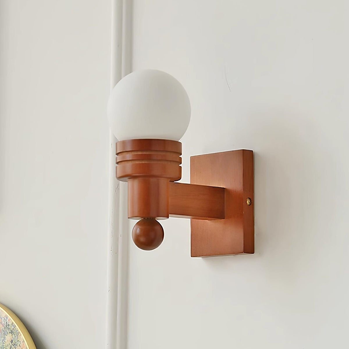 - Duve Wall Sconce crafted entirely from textured wood, exuding a subtle vintage elegance,. The natural wood grain creates a unique visual appeal, ensuring that each sconce is one-of-a-kind. Topped with a white glass lampshade, diffusing a soft, inviting glow that enhances your home décor. Perfect for living rooms, hallways, or bedrooms, this versatile lighting solution complements both contemporary and traditional styles.