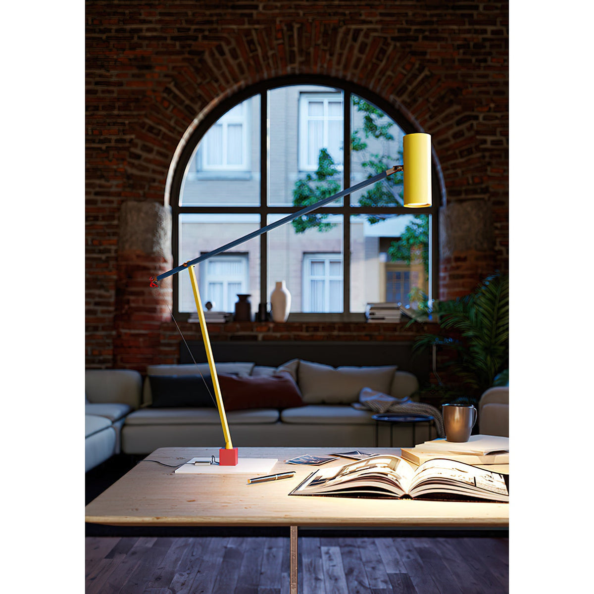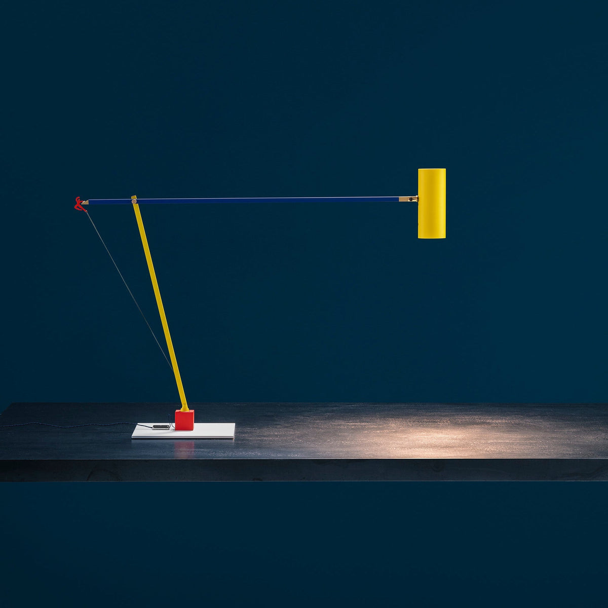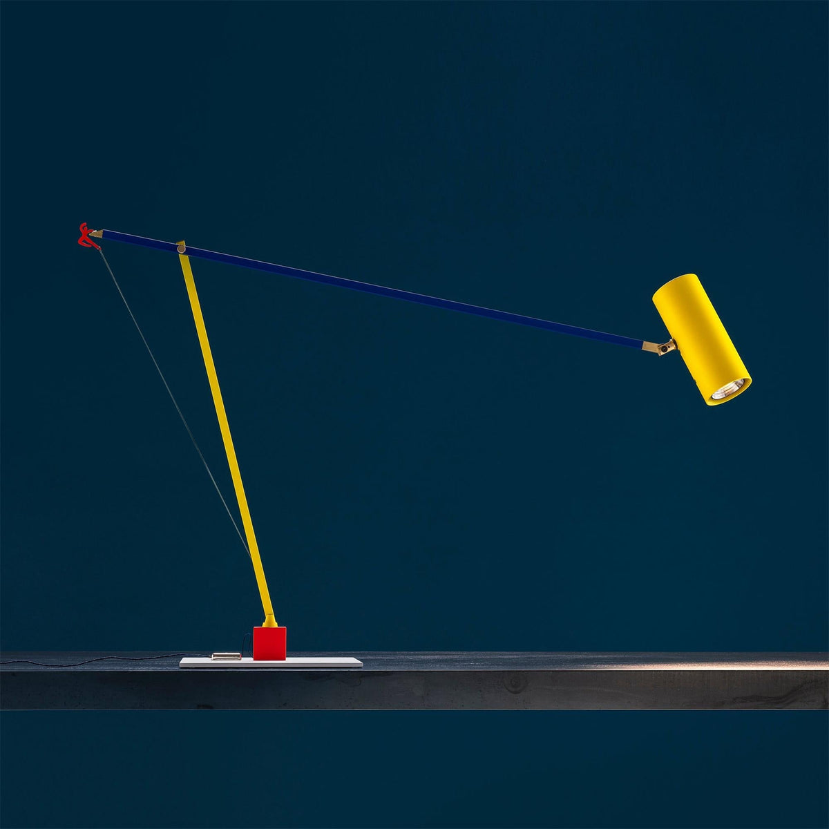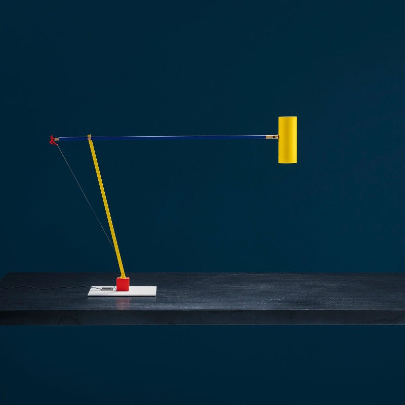 - The Ettorino T Table Lamp is a sleek and modern addition to any workspace. Its minimalist form belies a playful personality, with a vibrant red figure that dances playfully across the lamp's arm. This unexpected detail adds a touch of whimsy to a functional piece.