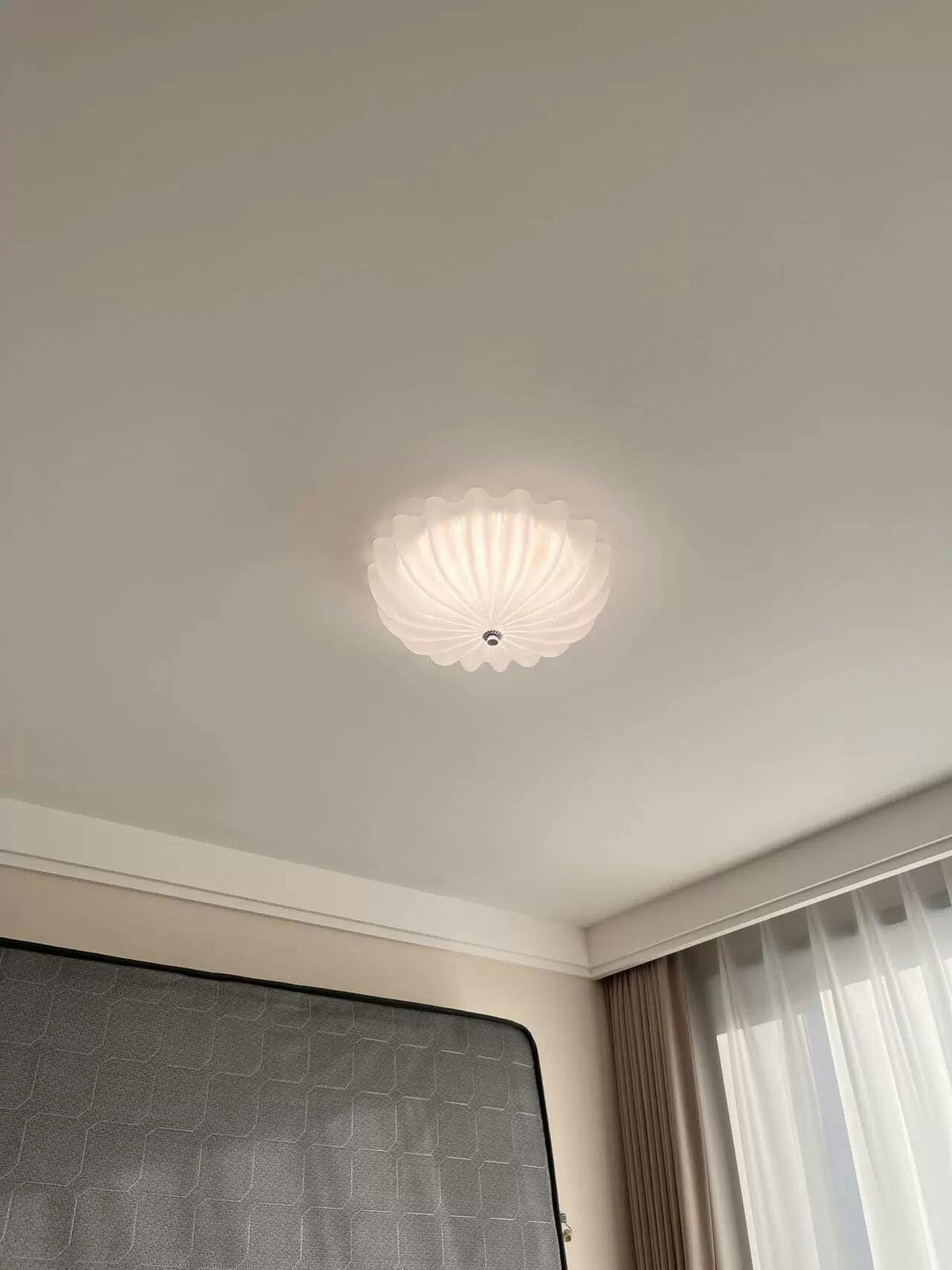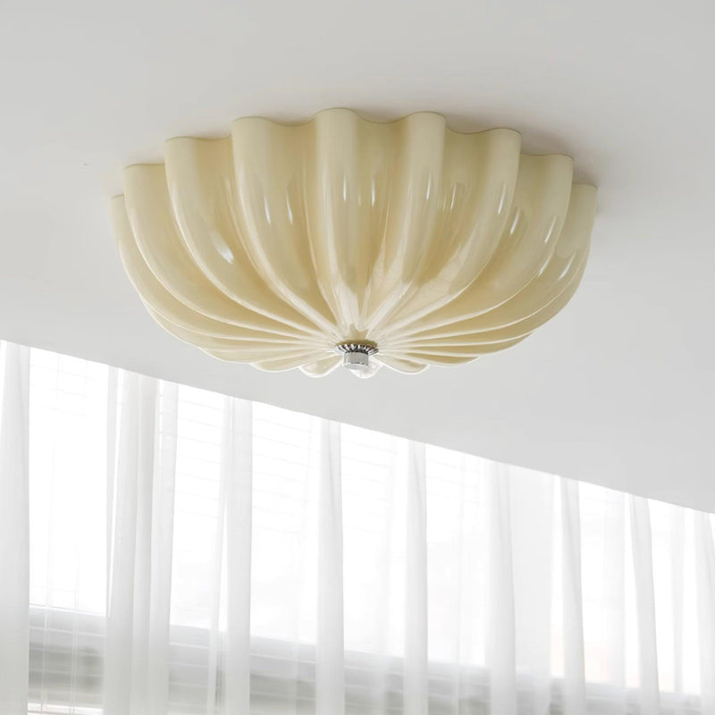 - With a glass shell that mimics the stripes of a seashell, Everley Flush Mount Lighting is a great choice for adding dimension to a room. The light from the high-quality LED light source translucent glass is bright without being harsh.