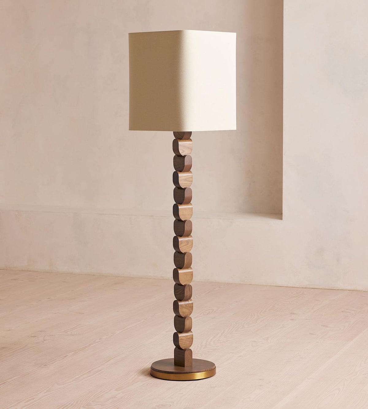 - Introducing the Felix Floor Lamp, where art meets illumination. This contemporary design features a stunning stem of handcrafted solid ash wood beads, paired with a soft natural linen shade. A timeless piece that adds warm, ambient light and a touch of sophisticated craftsmanship to any room.