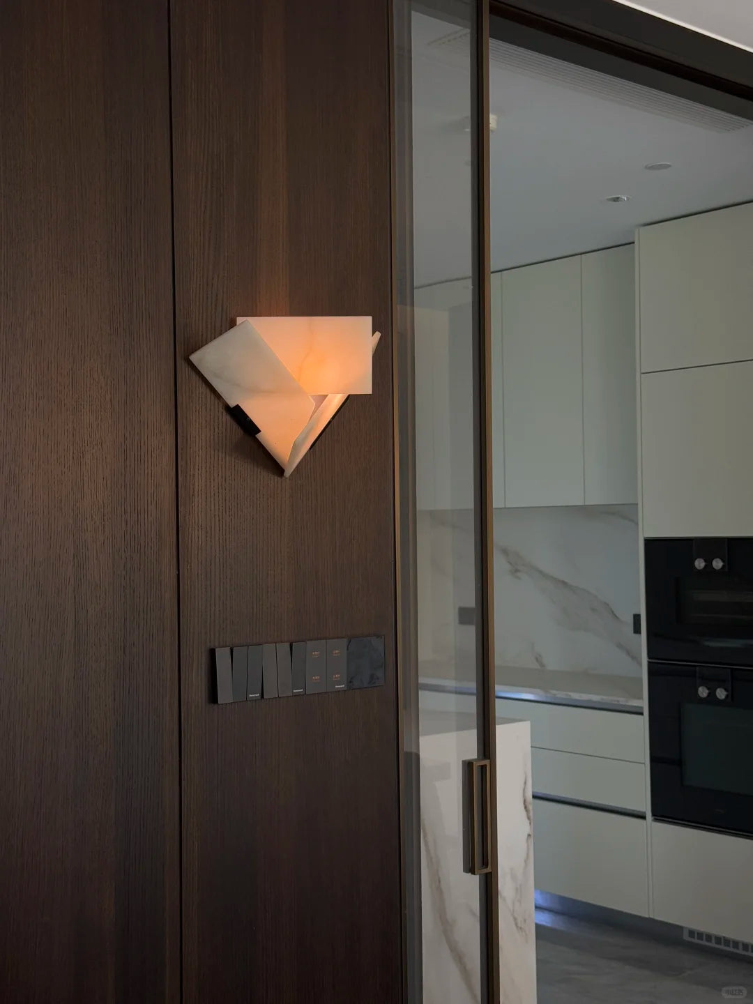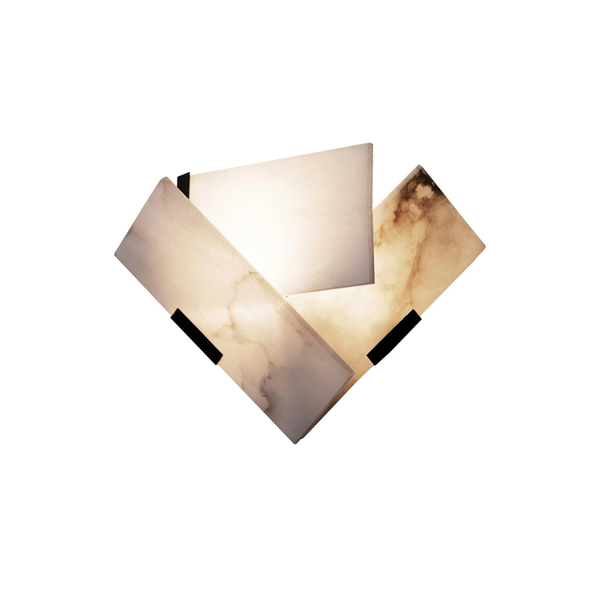 - Crafted from the finest solid European alabaster blocks, the sconce emits a soft, diffused glow, creating an ambiance of understated luxury. The alabaster is elegantly paired with a minimalist satin-finished black oxidized steel bracket, blending organic warmth with modern sophistication.
